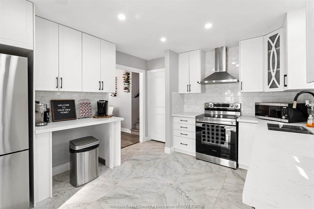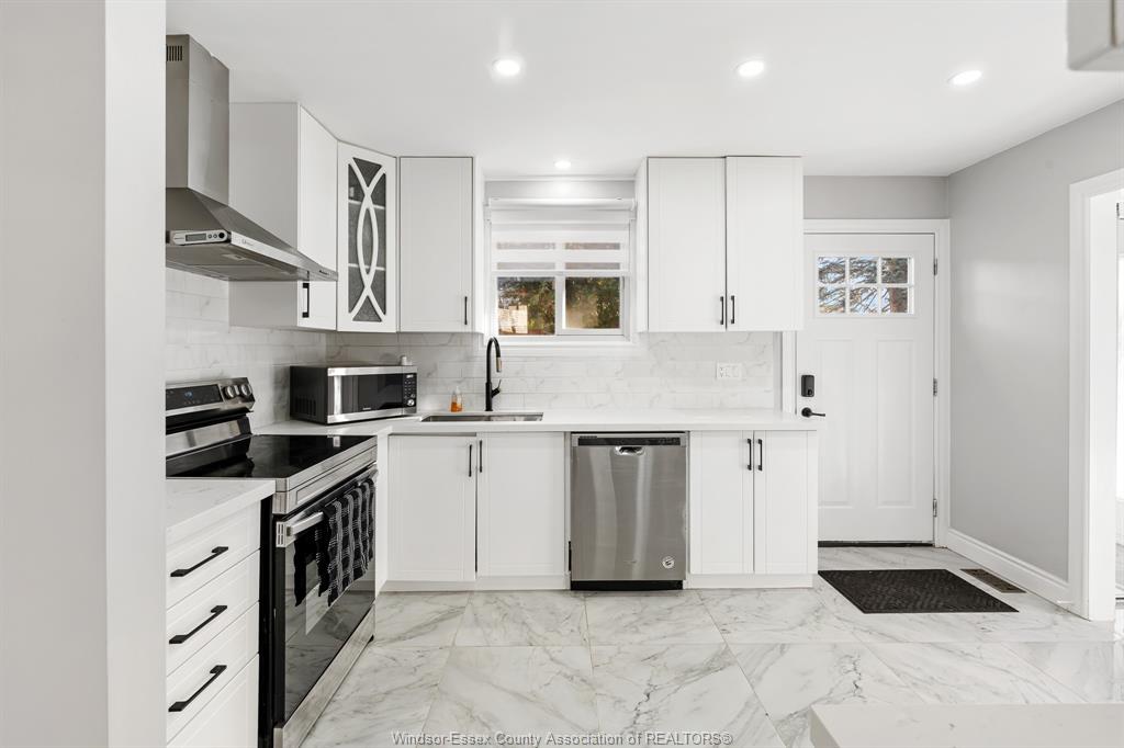 This fully renovated 3-level back split in the heart of harrow delivers exceptional value for buyers seeking a move-in ready home with space and functionality. Offering 3+1 bedrooms and 2 full bathrooms, this well-maintained property features a custom kitchen with updated finishes, dedicated dining area, and a comfortable living room with electric fireplace. The upper level includes three spacious bedrooms and a 4-piece bath, while the finished lower level provides additional living space with a large family room featuring a second electric fireplace, an extra bedroom or office, 3-piece bath, laundry, and ample storage. Situated on a 53 x 120 ft fenced lot with a double-width finished driveway and a park directly across the street, this home offers excellent outdoor space for families. With newer appliances included, this is a strong opportunity in today’s market for buyers looking for turnkey condition without renovation costs. Call today!