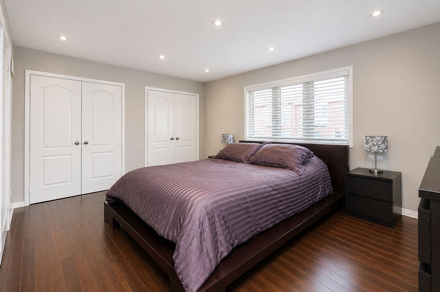 • Spacious primary bedroom with ensuite and dual closets for convenience.