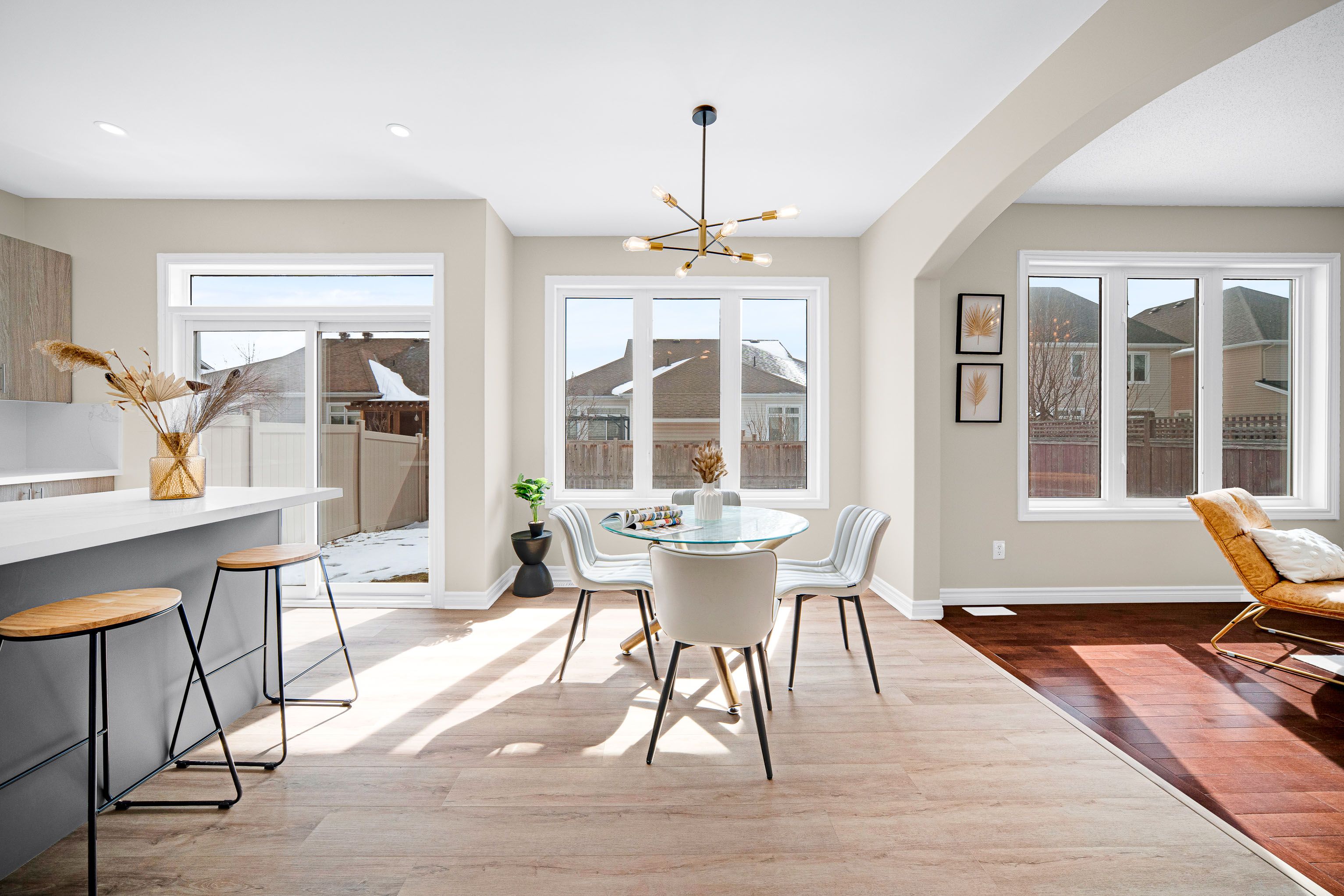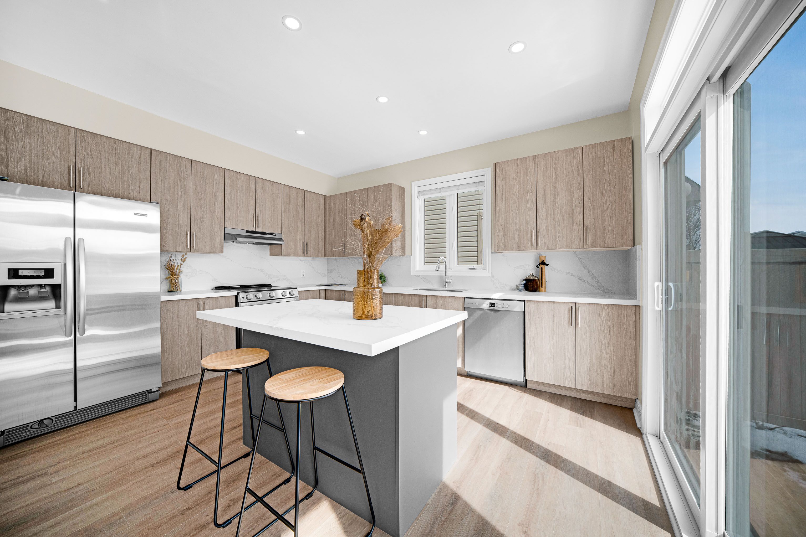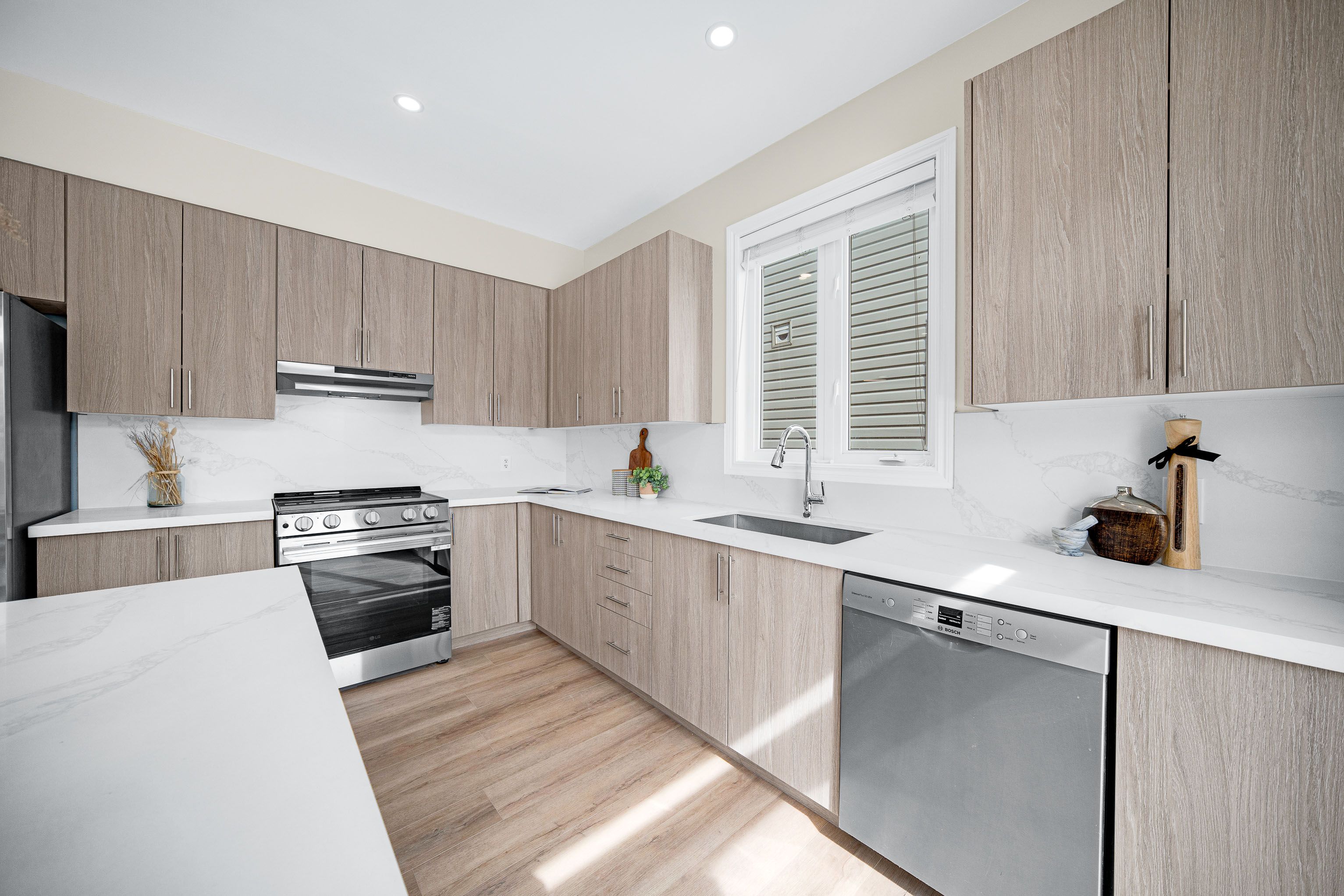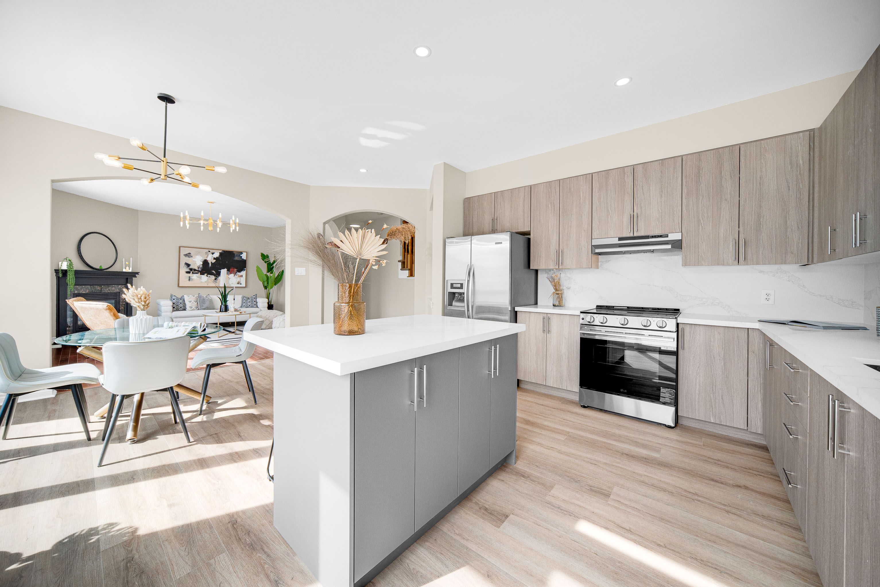 • Open concept kitchen with new features and a cozy gas fireplace.