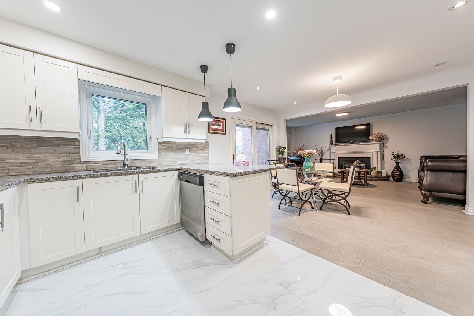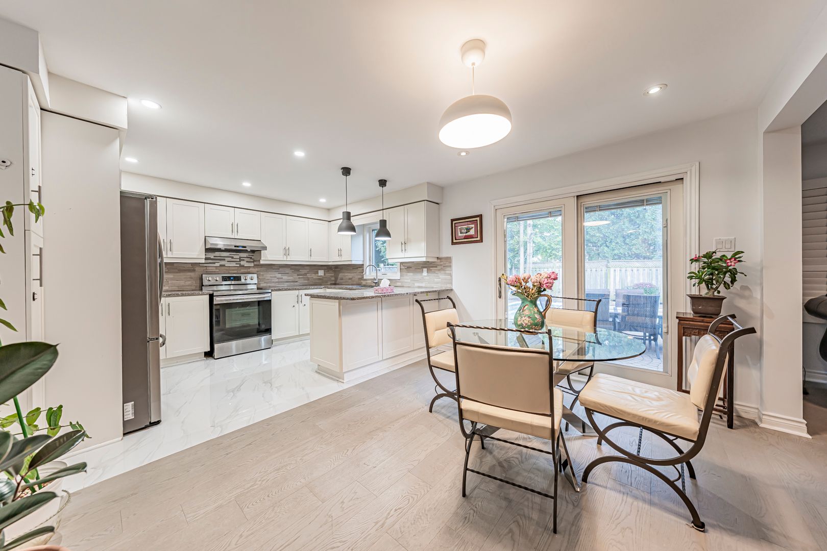 • Kitchen features a walkout to a private backyard and pool.