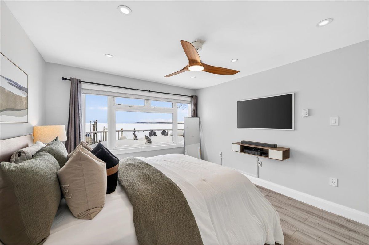 Wake up every morning to breathtaking sunrises and sweeping panoramic views over lake simcoe. Set along one of innisfil's most sought-after stretches of sandy shoreline, this beautifully renovated 4-season waterfront bungalow offers 53. 59 feet of rare, natural waterfront and the ultimate turnkey lake lifestyle. Blending timeless charm with modern efficiency, this home features over 2,100 sq ft of open-concept living with vaulted ceilings and expansive windows that frame the lake from multiple angles. Thoughtfully upgraded throughout with new vinyl floors, pot lights, spray foam insulation for enhanced efficiency, concrete subfloors, and a heat pump system in the living room. Baseboard electric heating with smart thermostats ensures comfort and control in every season. The redesigned kitchen combines style and function with wifi-enabled smart appliances, including a gas stove. Additional upgrades include a gas tankless water heater, water softener, reverse osmosis system, security cameras, and remote-controlled blinds in the front bedroom - truly move-in ready inside and out. Step outside and embrace waterfront living at its finest. A spacious remodeled deck with aluminum and glass railings overlooks the water, while the backyard firepit creates the perfect setting for summer evenings under the stars. At the shoreline, enjoy a 30-ft dock, a 15x10 lakeside seating area, plus a boat lift and 3 jet ski lifts, designed for effortless days on the lake. Out front, a detached garage with a tesla charging station, upgraded interlock walkway, and ample parking add convenience and curb appeal. Whether you're boating, entertaining, or simply enjoying the peaceful rhythm of the water, this move-in ready lakefront retreat delivers comfort, style, and year-round recreation on one of lake simcoe's most desirable sandy shorelines.