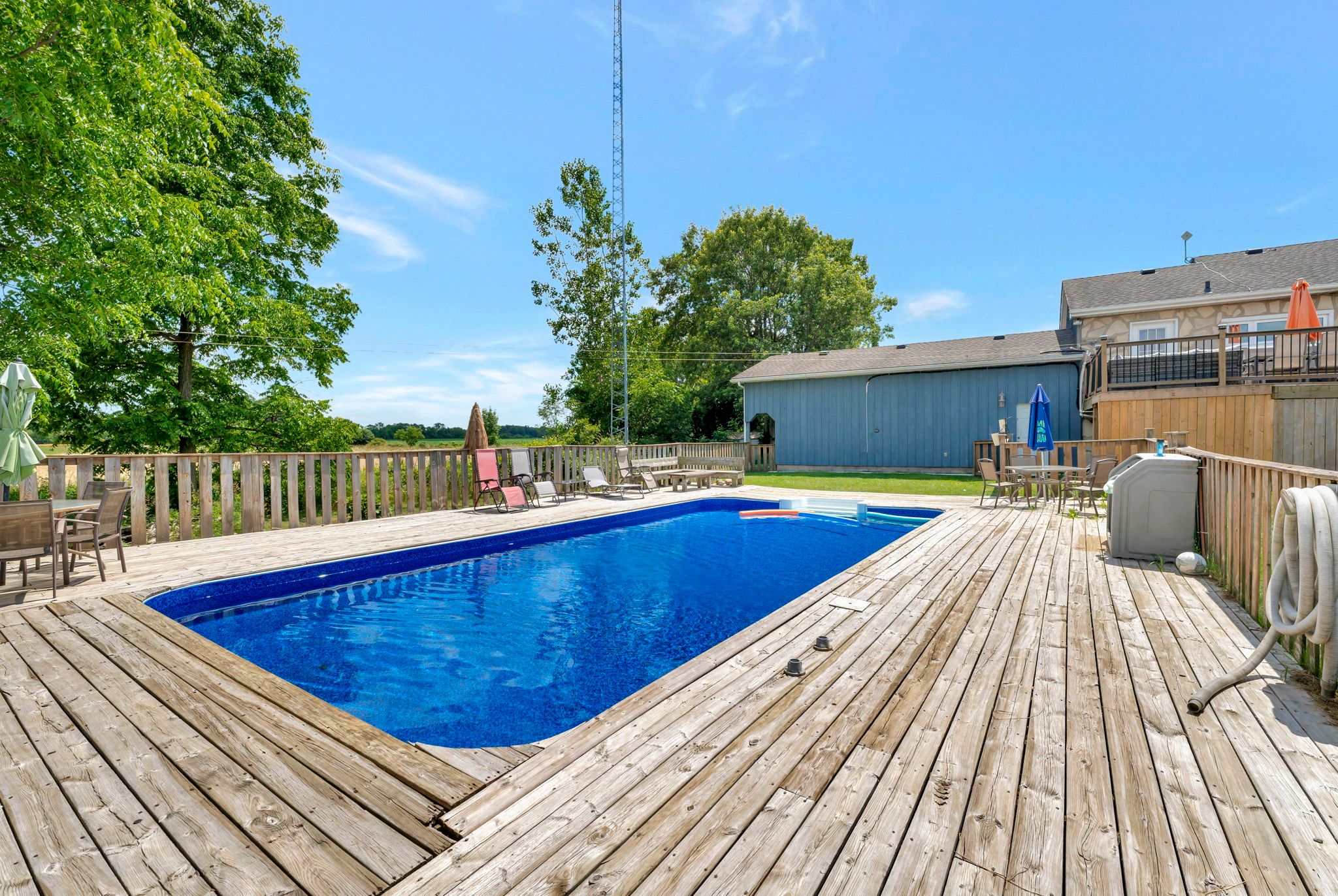 Welcome to this beautiful fully green oases on over half acre land ,16x32 inground pool with new liner. Noneighbours on back only open fields. Absolutely gorgeous country home with breathtaking viewsonly 10 mins from cambridge. 6 bedrooms raised bungalow with many updates including 2 year oldheat pump(ac/heater 8 years label/parts warranty)2 year old septic pump,water pump,watersoftener,hwt, duel sump pump with backup battery,replaced well pump. Driveway done less than 5years ago with parking for 10 cars ,armour stone surrounding the garden. Open concept kitchenwith granite countertop and large island. Beautiful hickory floor on the main floor. Commercialgrade vinyl throughout the basement. 3 bedroom basement apartment with kitchen and separateentrance. Fully insulated and heated 2. 5 car garage. Unwind on newly renovated huge raised deckwith sunset views. Perfect for family gatherings and entertaining.