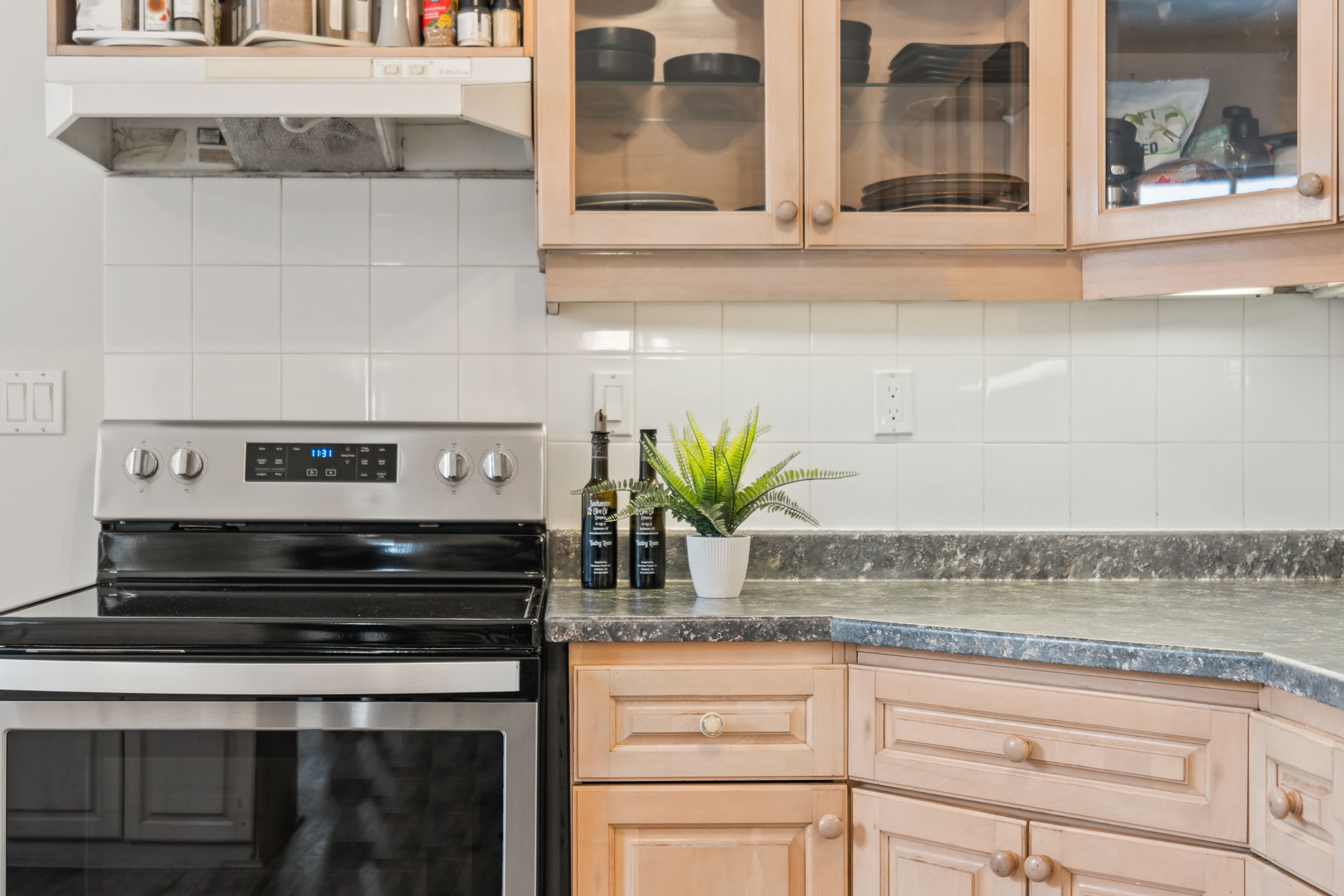 • Modern kitchen with plenty of storage and a cozy breakfast bar.