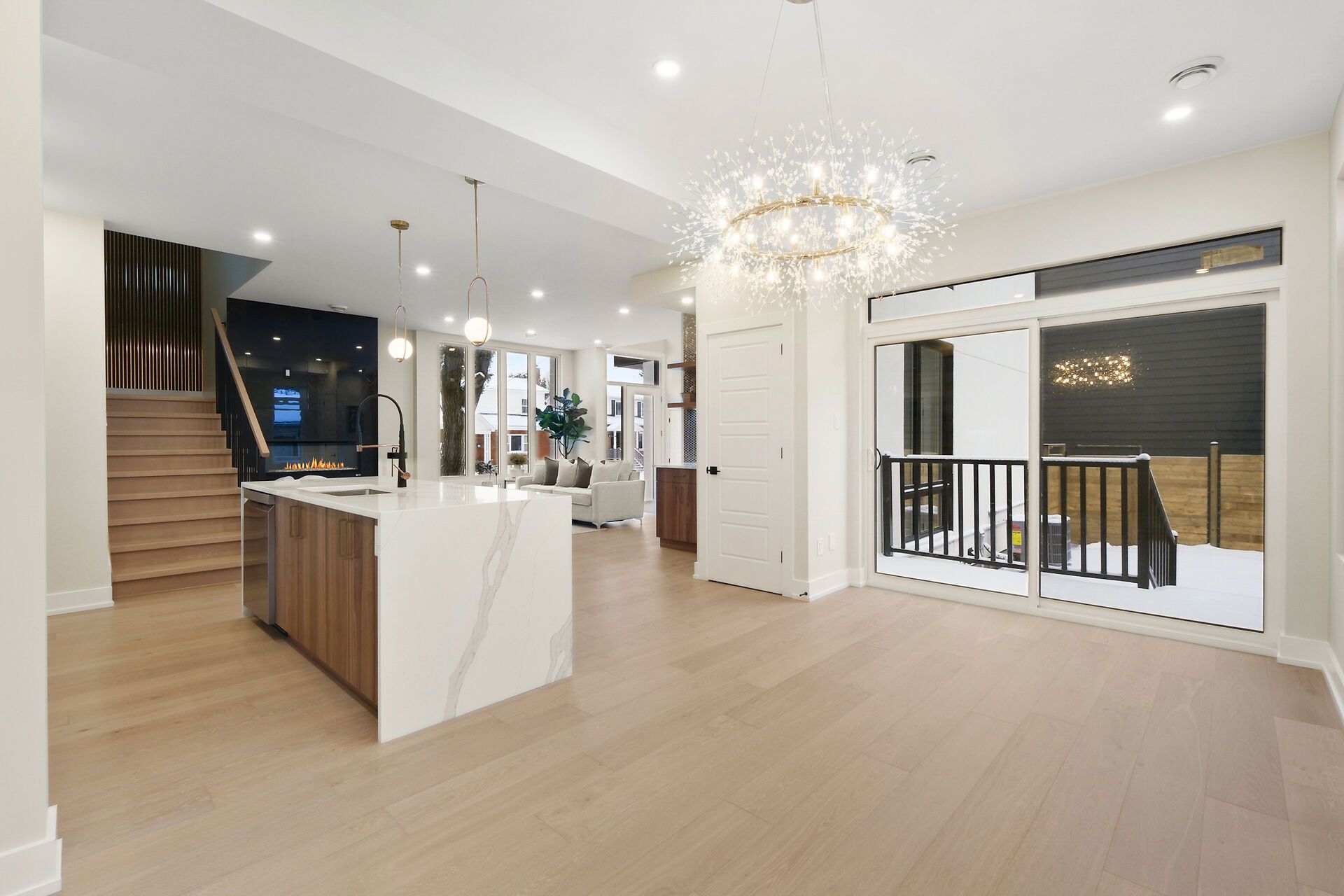 Welcome to this stunning 2895 sq. Ft. Custom home including a a fully separate legal basement unit with private entrance on a corner lot, featuring high-end finishes and modern design starting with engineered wild plank hardwood floors across both levels. Creating an open, airy feel throughout the home. Quartz countertops in all kitchens and bathrooms offer both beauty and functionality. With impressive ceiling heights, this home feels spacious and bright at every turn, fully fenced back yard. The basement unit has 2 bed one with ensuite bath + extra 4 piece full bath, heated floors, and large windows offers extra living space or rental potential. Finally, enjoy a glass-railing balcony. From top to bottom, this home has it all luxury, comfort, and style. **extras** lg 6. 3 cu. Ft. Smudge resistant stainless steel smart wi-fi enabled fan conviction electric slide-in range with air fry and easy clean, a sprayed foam insulation on the roof and basement walls, taxes not assessed yet