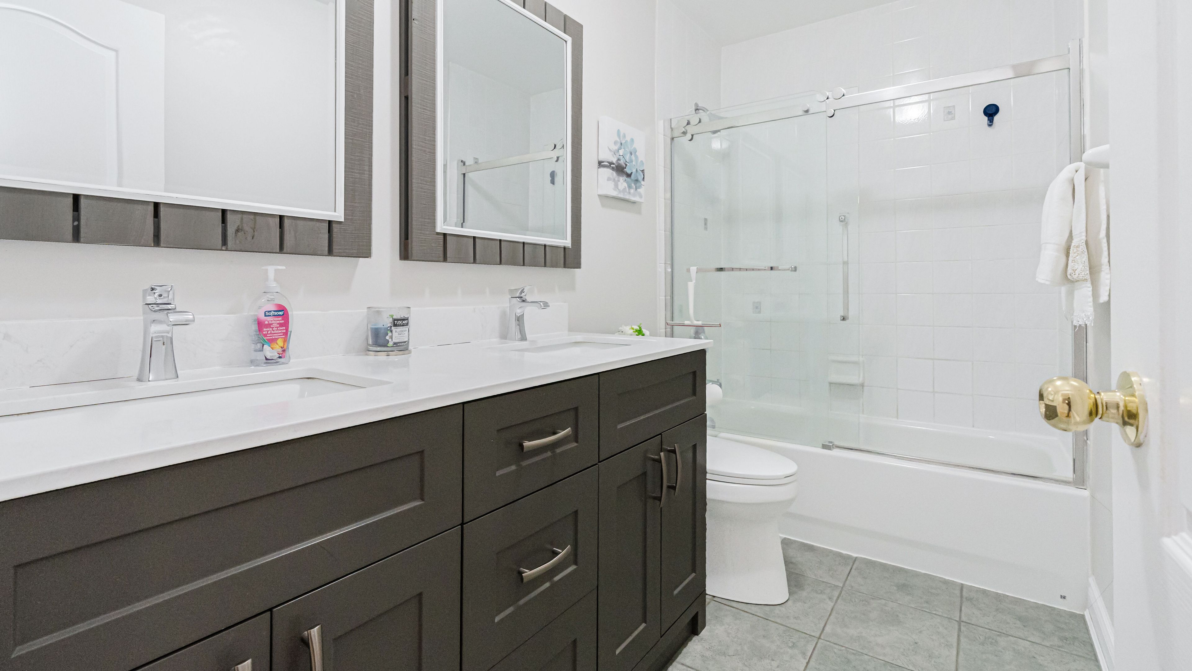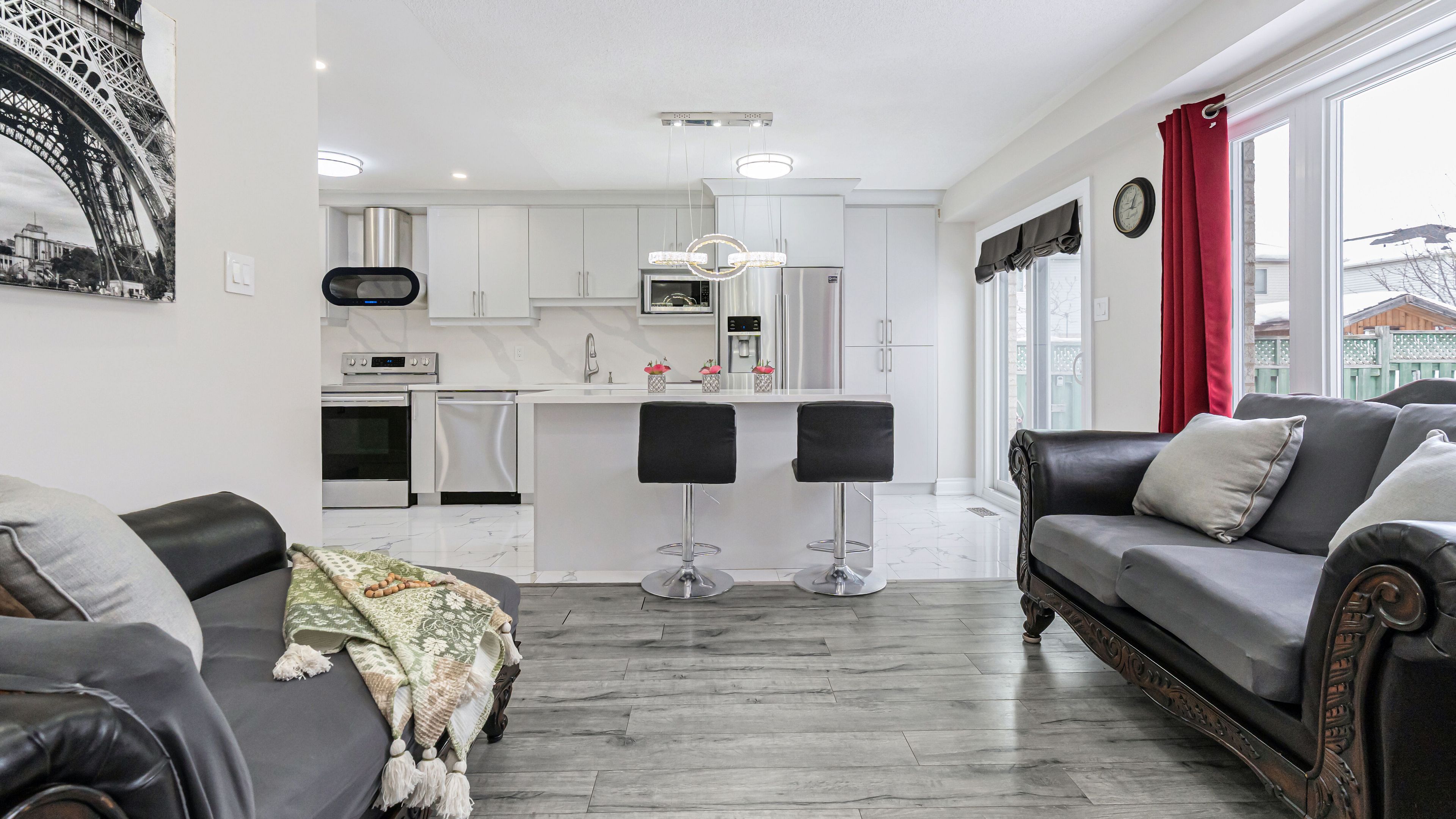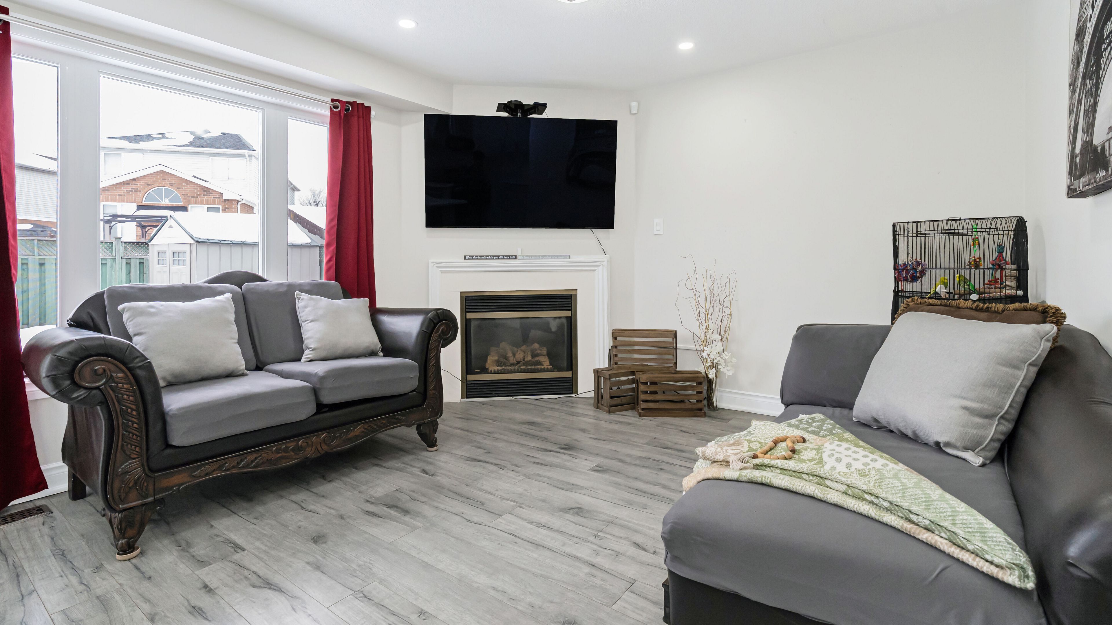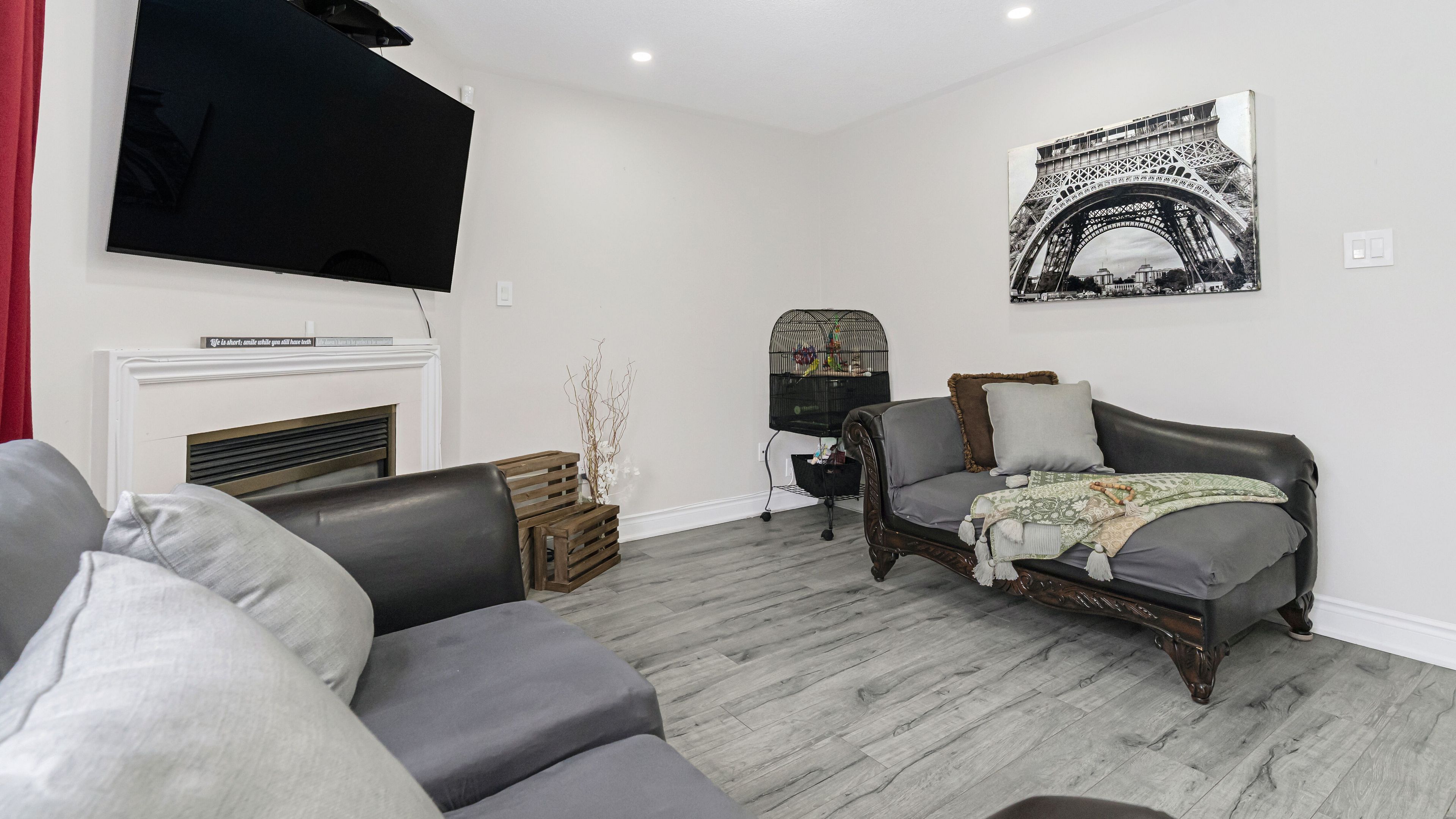 Welcome to 253 fernforest drive, a beautifully maintained, move-in-ready home located on a quiet, family-friendly street in brampton. From the moment you arrive, you'll appreciate the attractive curb appeal, classic brick exterior, private driveway, and attached garage. Step inside to a bright foyer with modern tile flooring and fresh neutral tones that flow seamlessly throughout the home. The main level offers a welcoming open-concept layout featuring pot lights, stylish flooring, and a spacious living and dining area-perfect for everyday living and entertaining. The upgraded kitchen is a true highlight, showcasing sleek white cabinetry, quartz countertops, stainless steel appliances, and a large centre island with seating. The kitchen opens into a cozy family room with a gas fireplace and walkout to the backyard, filling the space with natural light and creating an ideal setting for family time or relaxing evenings. Upstairs, you'll find generously sized bedrooms with comfortable layouts and ample closet space. The primary bedroom easily accommodates king-size furnishings and offers a calm retreat. The renovated main bathroom features a modern double-sink vanity, quartz countertop, framed mirrors, and a glass-enclosed tub/shower combo-perfect for busy mornings. The fully finished basement adds exceptional versatility, offering a bright recreation area with pot lights, modern flooring, and a sleek kitchenette/wet bar-ideal for entertaining, movie nights, or extended family living. A bonus room provides flexible space for a home gym, office, or hobby area, along with an additional bathroom to complete this level.