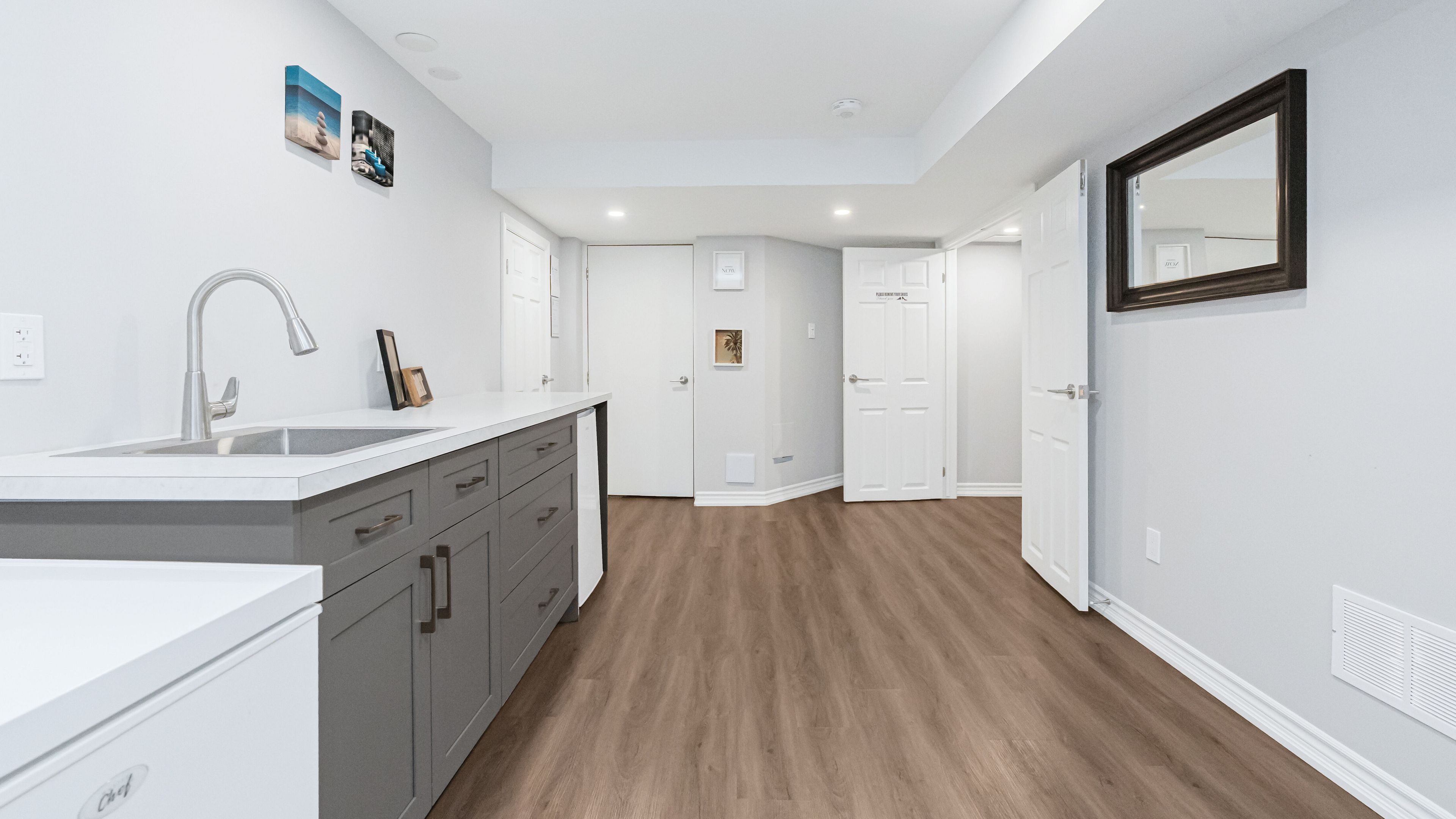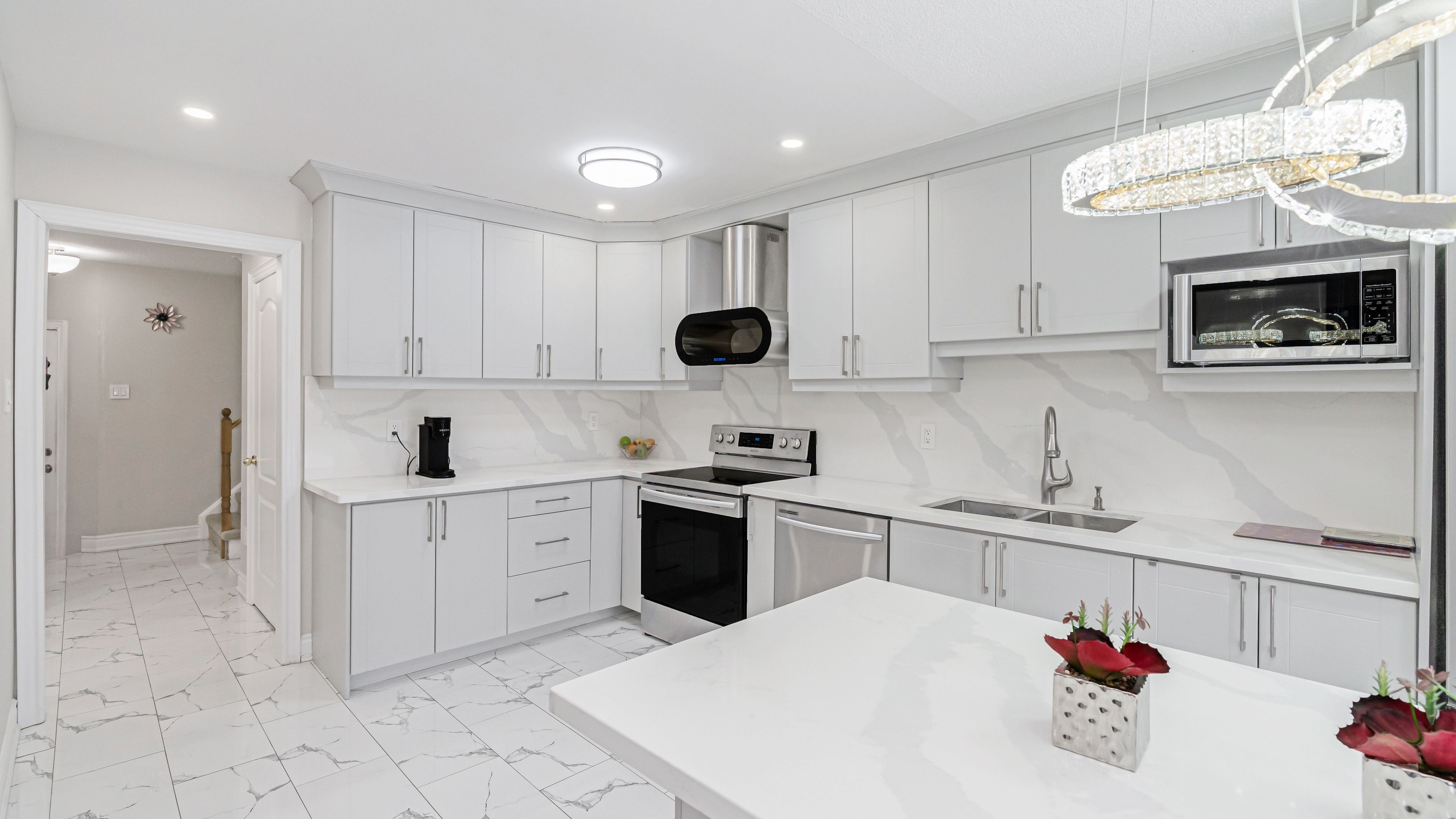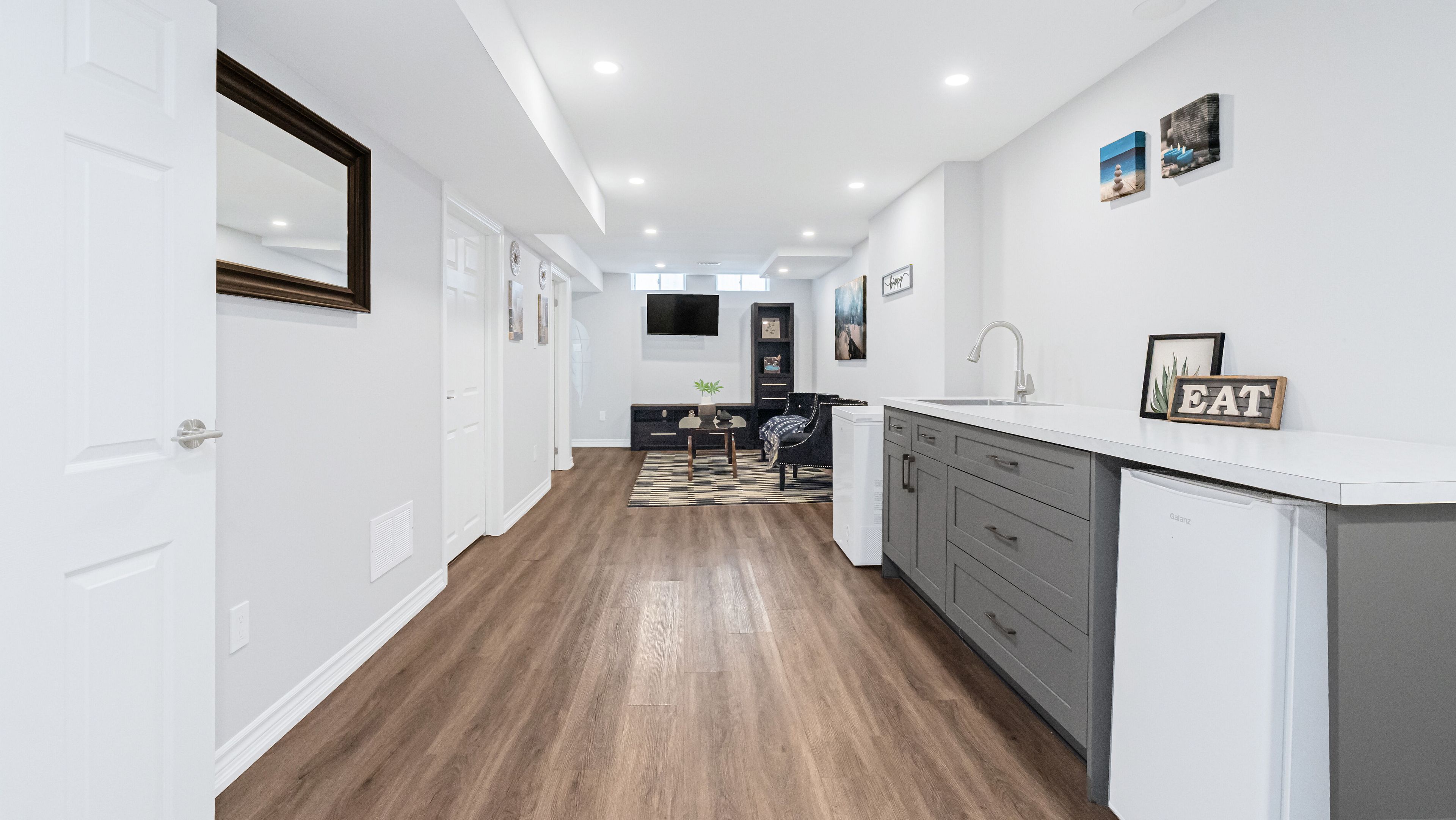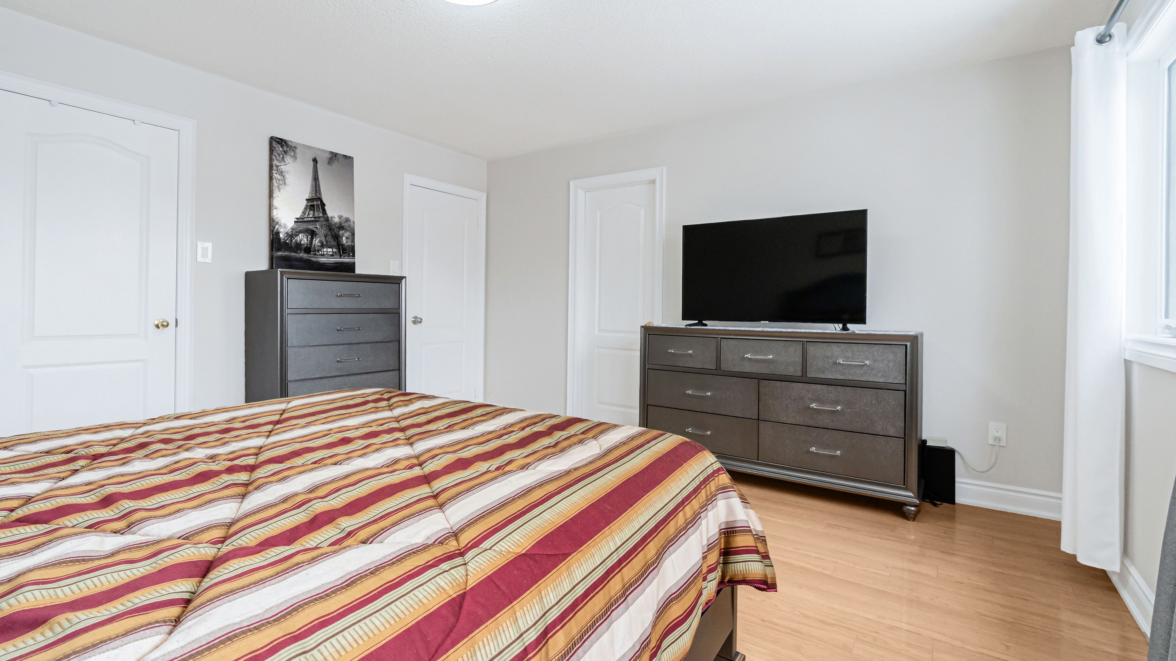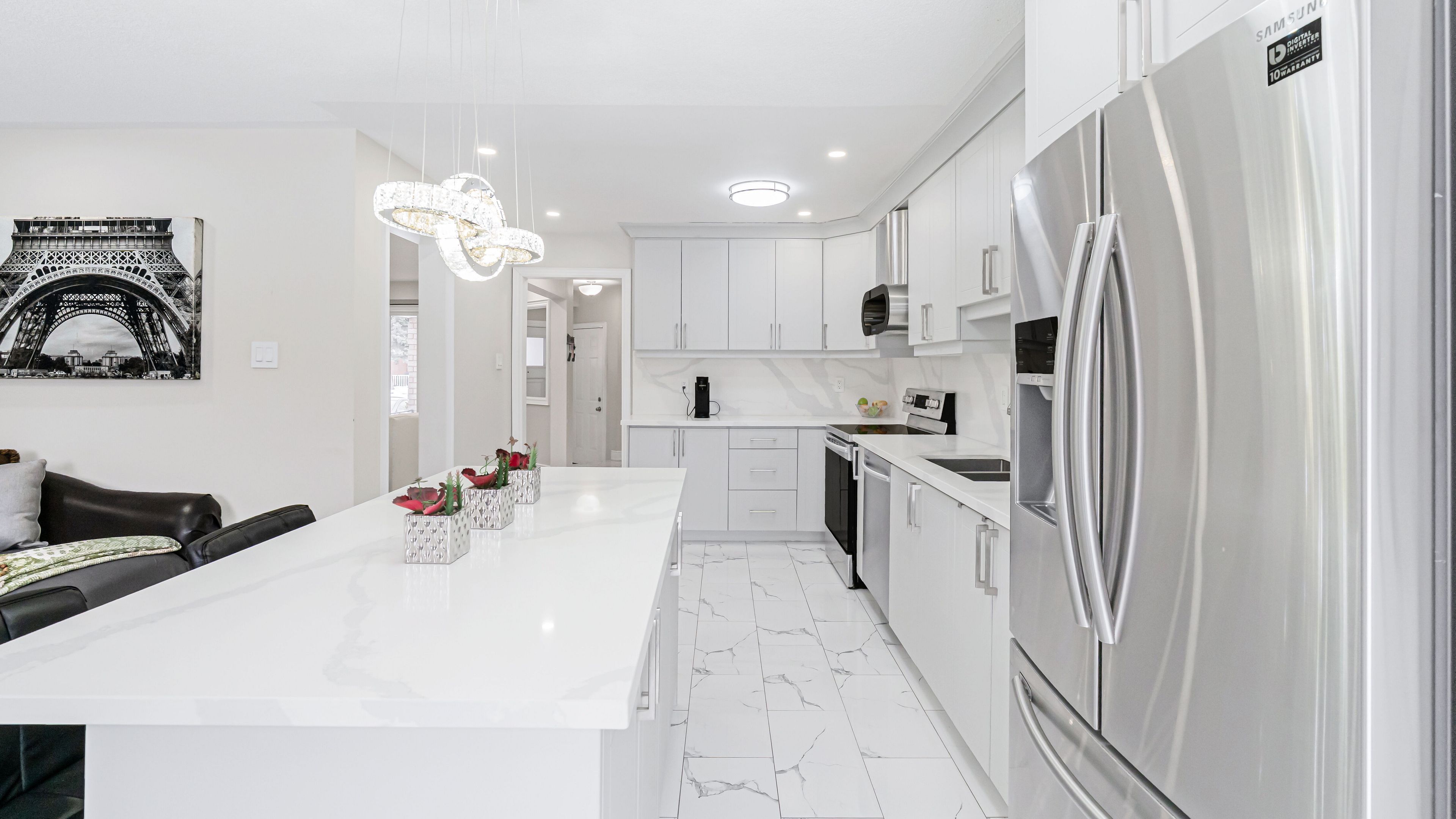 Welcome to 253 fernforest drive, a beautifully maintained, move-in-ready home located on a quiet, family-friendly street in brampton. From the moment you arrive, you'll appreciate the attractive curb appeal, classic brick exterior, private driveway, and attached garage. Step inside to a bright foyer with modern tile flooring and fresh neutral tones that flow seamlessly throughout the home. The main level offers a welcoming open-concept layout featuring pot lights, stylish flooring, and a spacious living and dining area-perfect for everyday living and entertaining. The upgraded kitchen is a true highlight, showcasing sleek white cabinetry, quartz countertops, stainless steel appliances, and a large centre island with seating. The kitchen opens into a cozy family room with a gas fireplace and walkout to the backyard, filling the space with natural light and creating an ideal setting for family time or relaxing evenings. Upstairs, you'll find generously sized bedrooms with comfortable layouts and ample closet space. The primary bedroom easily accommodates king-size furnishings and offers a calm retreat. The renovated main bathroom features a modern double-sink vanity, quartz countertop, framed mirrors, and a glass-enclosed tub/shower combo-perfect for busy mornings. The fully finished basement adds exceptional versatility, offering a bright recreation area with pot lights, modern flooring, and a sleek kitchenette/wet bar-ideal for entertaining, movie nights, or extended family living. A bonus room provides flexible space for a home gym, office, or hobby area, along with an additional bathroom to complete this level.