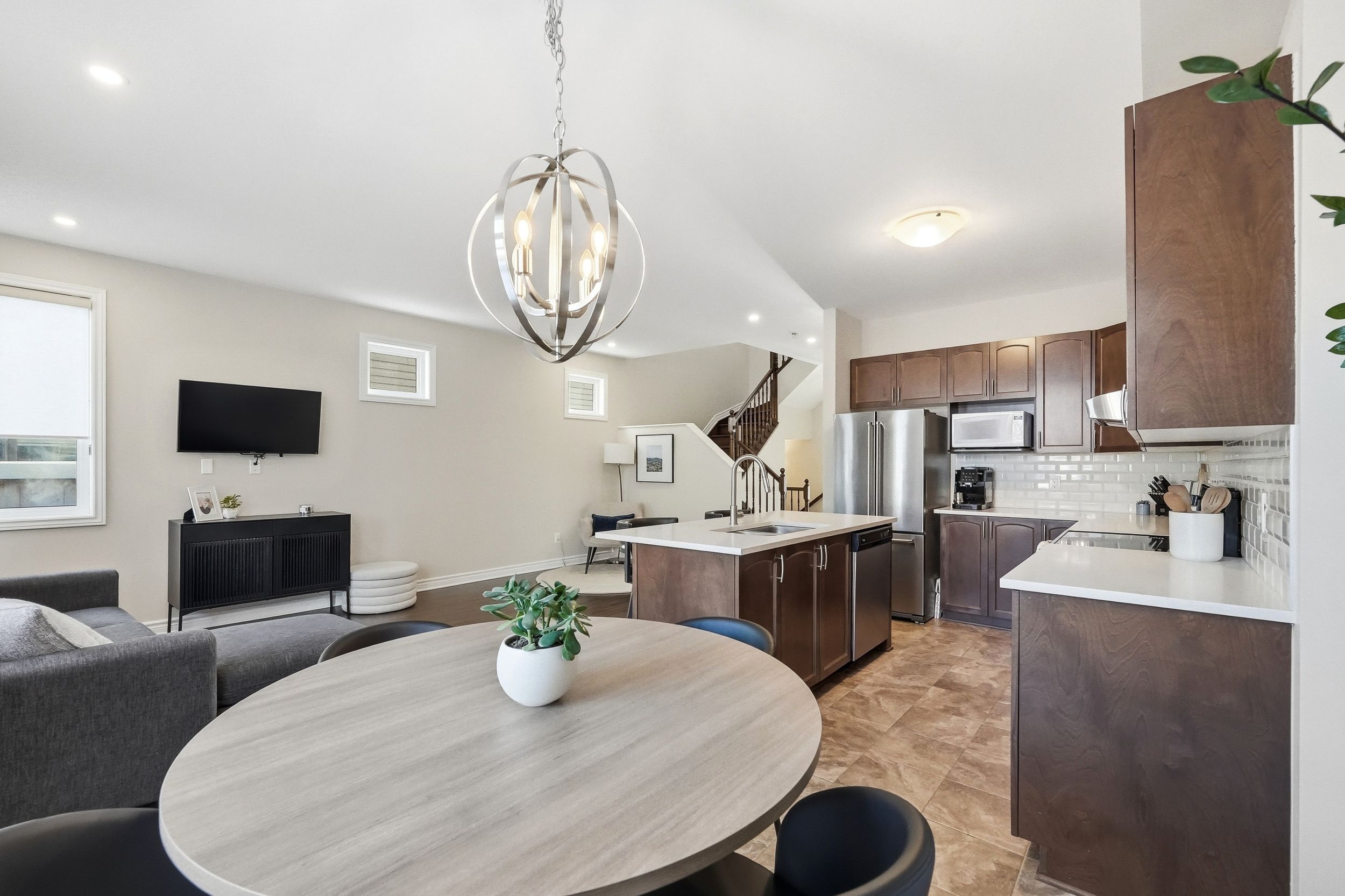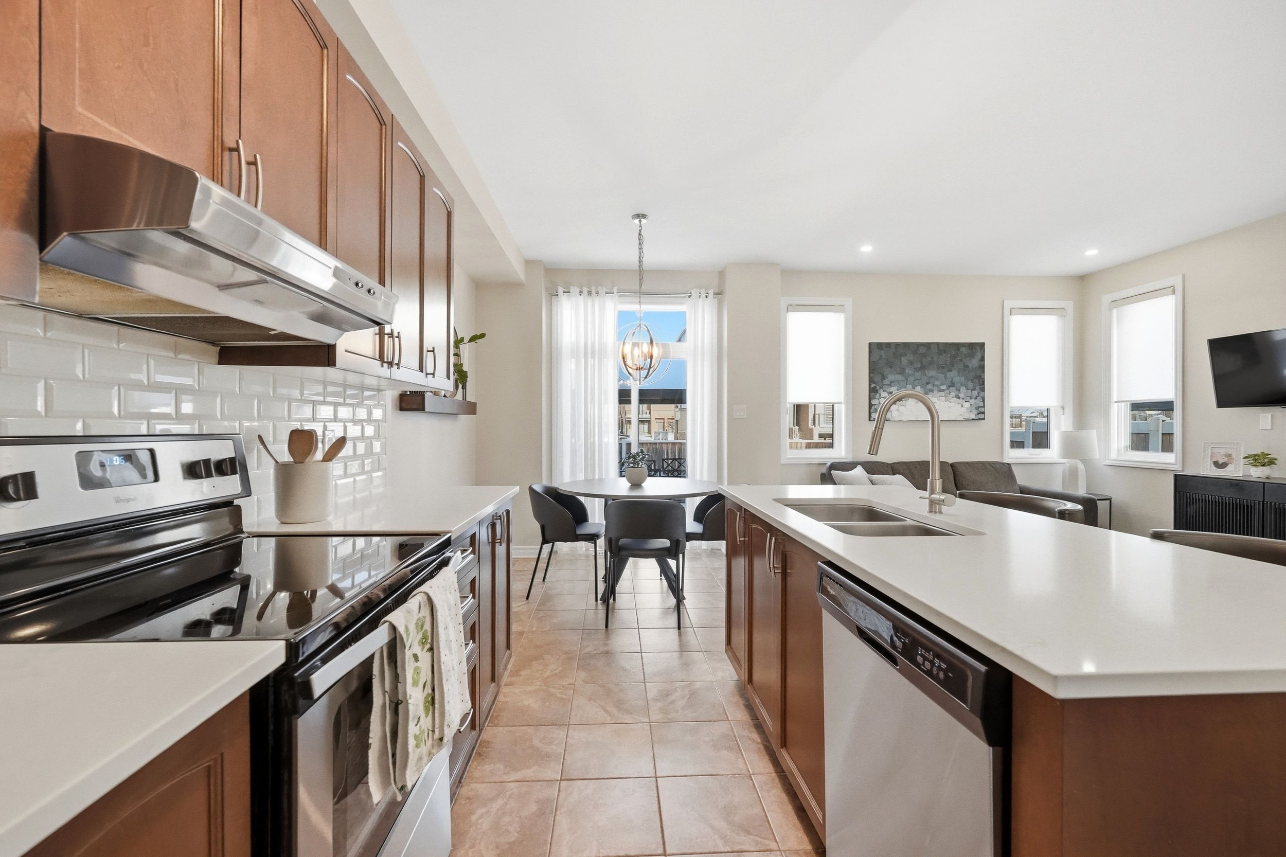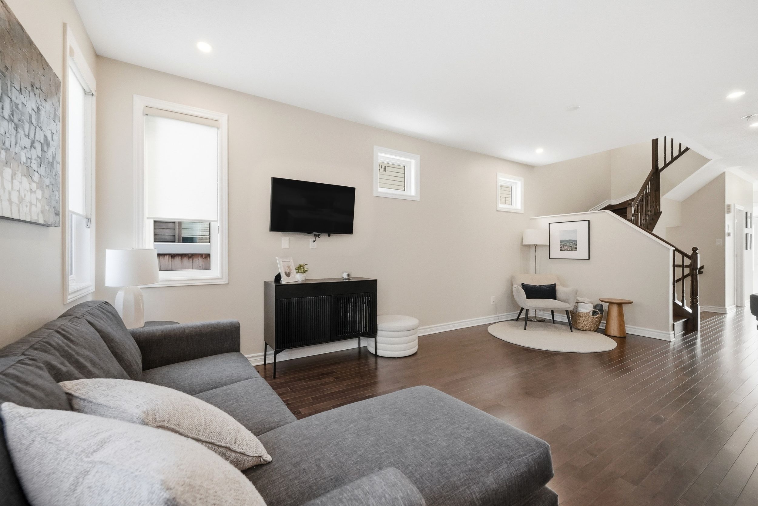 Welcome to 253 hepatica way - a stunning minto tahoe end unit townhome that truly checks every box! Meticulously maintained and move-in ready, this 3-bedroom, 3-bathroom home offers over 1,930 sqft of living space. Step into the bright, welcoming foyer with convenient powder room access, before entering the open-concept main floor featuring 9-ft ceilings, hardwood & ceramic floors. The gourmet kitchen is a showstopper with its rich cabinetry, upgraded quartz countertops, stainless steel appliances, subway tile backsplash and an island with seating that flows beautifully into the dining area and spacious living room. The kitchen also offers a great size eating-nook with patio doors providing access to the fully fenced lot with deck and gazebo - the perfect place to entertain! A handy mudroom with garage access completes the main level. Upstairs, the hardwood continues in all bedrooms, leading you into the spacious primary suite with walk-in closet and 4 piece ensuite featuring a glass shower and separate soaker tub, plus two additional great size bedrooms, a full bathroom with shower/tub combo and tons of vanity space, and a convenient laundry area with cabinets. The finished lower level offers a bright versatile family room with a large window for natural light, a bonus finished space serving as the perfect home office or play room and ample storage. Ideally located close to schools, parks, shopping, and all amenities, while being just steps to the summerside west pond with its walking trails, this home blends comfort, style, and convenience - an absolute must-see!
