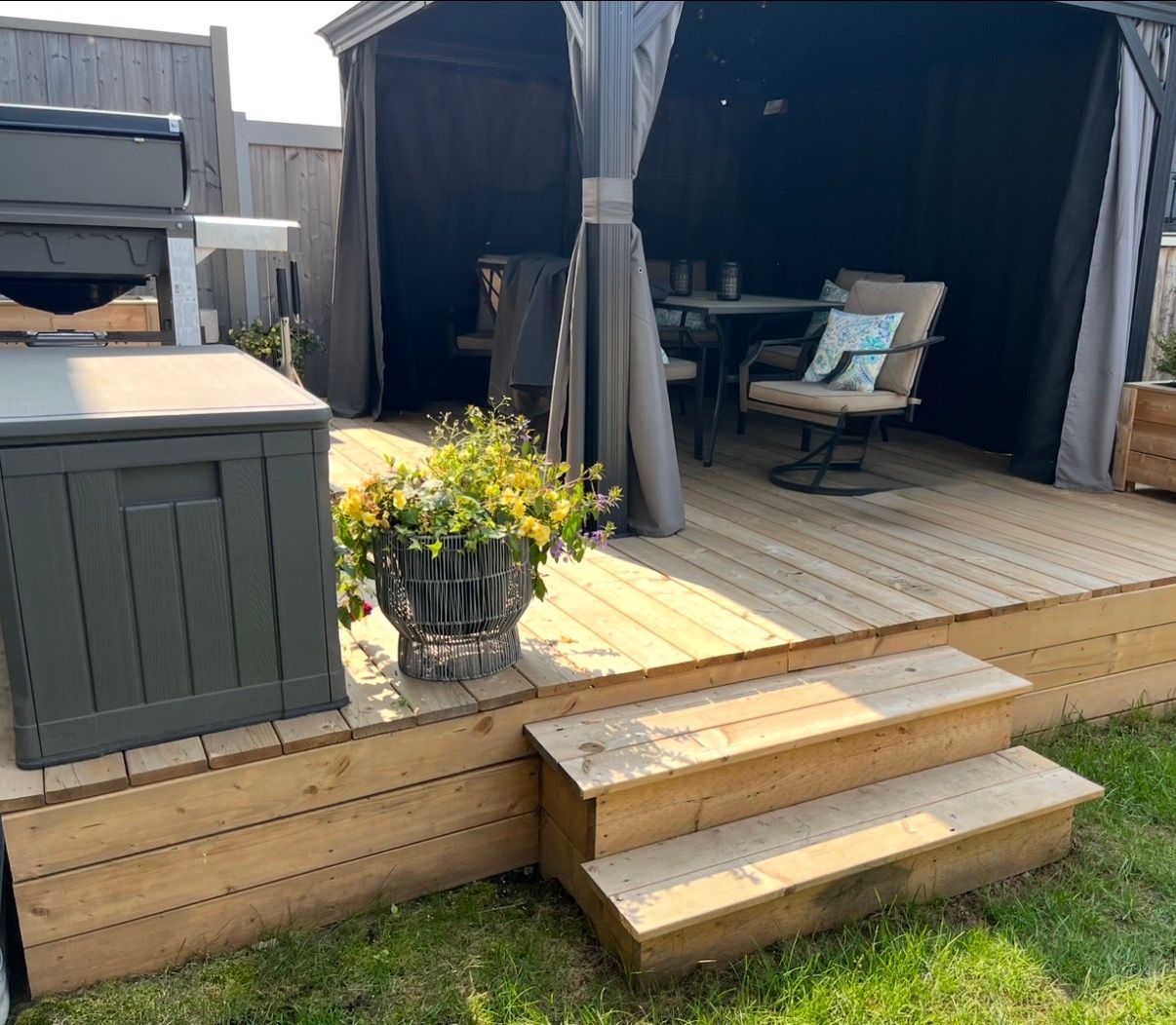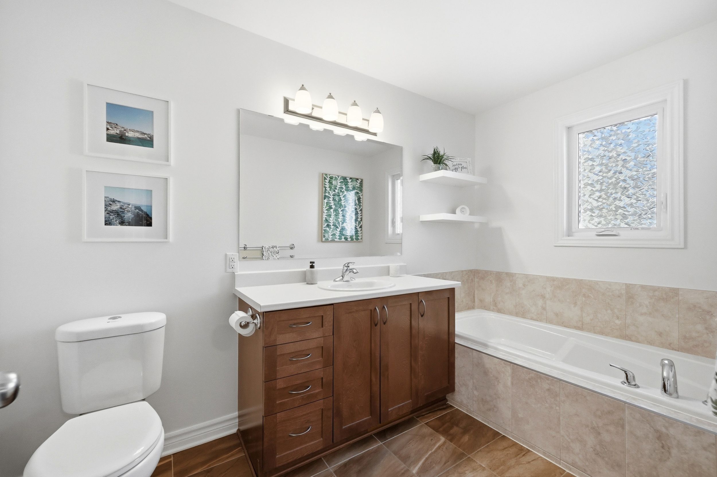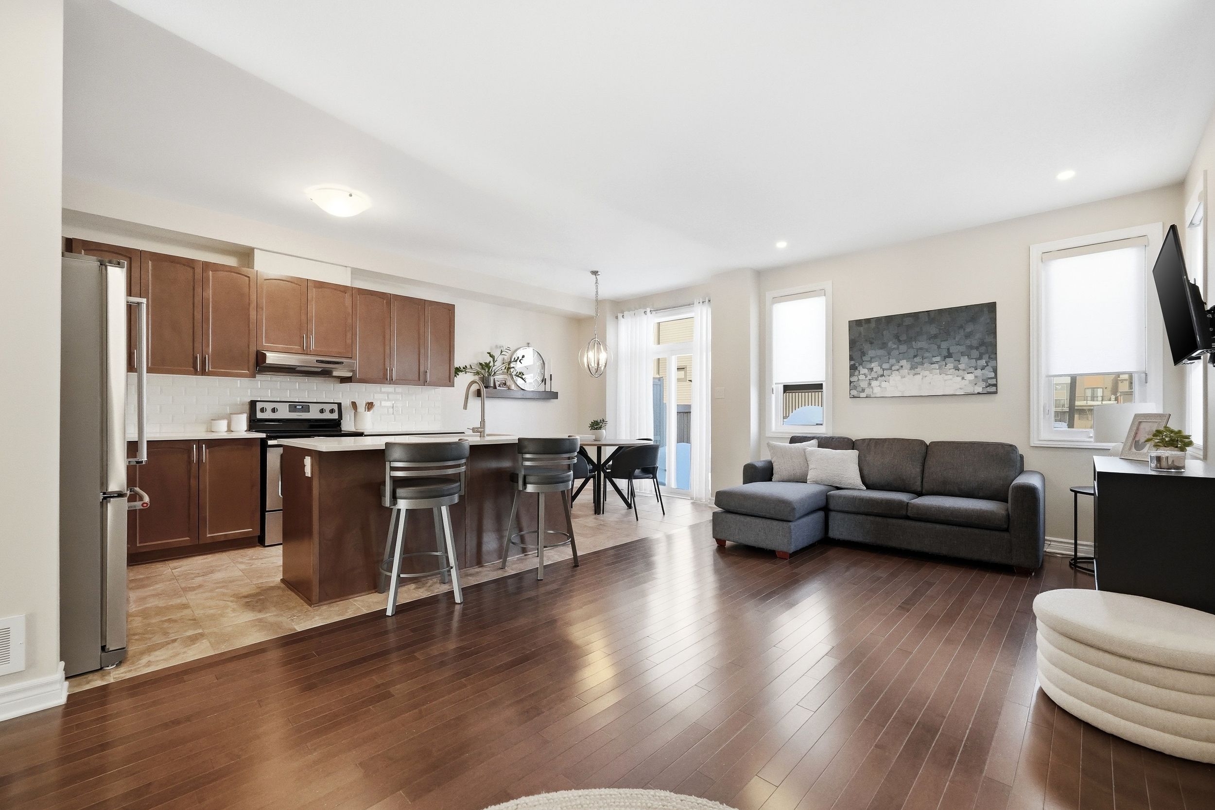 Welcome to 253 hepatica way - a stunning minto tahoe end unit townhome that truly checks every box! Meticulously maintained and move-in ready, this 3-bedroom, 3-bathroom home offers over 1,930 sqft of living space. Step into the bright, welcoming foyer with convenient powder room access, before entering the open-concept main floor featuring 9-ft ceilings, hardwood & ceramic floors. The gourmet kitchen is a showstopper with its rich cabinetry, upgraded quartz countertops, stainless steel appliances, subway tile backsplash and an island with seating that flows beautifully into the dining area and spacious living room. The kitchen also offers a great size eating-nook with patio doors providing access to the fully fenced lot with deck and gazebo - the perfect place to entertain! A handy mudroom with garage access completes the main level. Upstairs, the hardwood continues in all bedrooms, leading you into the spacious primary suite with walk-in closet and 4 piece ensuite featuring a glass shower and separate soaker tub, plus two additional great size bedrooms, a full bathroom with shower/tub combo and tons of vanity space, and a convenient laundry area with cabinets. The finished lower level offers a bright versatile family room with a large window for natural light, a bonus finished space serving as the perfect home office or play room and ample storage. Ideally located close to schools, parks, shopping, and all amenities, while being just steps to the summerside west pond with its walking trails, this home blends comfort, style, and convenience - an absolute must-see!