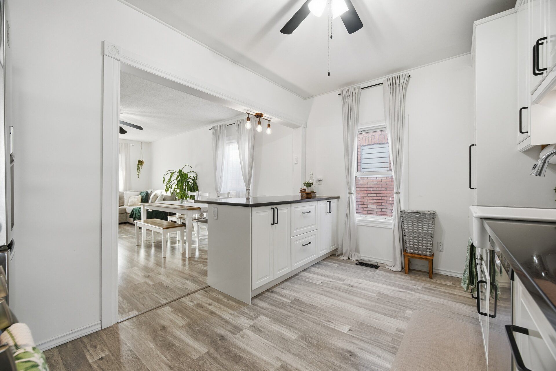 Welcome to 253 murray street, a well-maintained 3-bedroom, 1-bath detached bungalow offering comfortable, single-level living. This home features a bright open-concept living area with upgraded finishes and durable vinyl plank flooring throughout, perfect for relaxed everyday living or hosting family & friends. Ample windows flood the space with natural light, creating a warm & inviting atmosphere throughout. The sun-filled kitchen is beautifully appointed with stainless steel appliances, quartz countertops, & a farmhouse sink, complemented by soft-close cabinetry with custom organizers & rollouts designed for everyday convenience. The functional layout includes two bedrooms off the main living space and a third bedroom toward the rear, ideal for added privacy, a home office, or guest room. The basement provides a generous canvas for your vision, complete with a large cantina & abundant space for an entertainment area & ideal living. Peace of mind comes standard with this home, featuring a whole-home hepa filtration system, a smart thermostat, furnace & ac (2017), roof (2019), & advanced security cameras with ai detection & optional professional monitoring ($120 annually). Outside, the home impresses with a large private driveway accommodating up to four vehicles & a detached garage offering both parking & storage. The fully fenced backyard is an outdoor retreat, featuring a generous manicured lawn, a thoughtfully curated herb garden, a newly built deck, & a professionally designed interlock patio-an ideal setting for entertaining & peaceful relaxation. Enjoy effortless connectivity with quick access to local transit & via rail, brantford public library, wilfrid laurier, conestoga college, arrowdale golf course, parks, grocery, & essential health services-conveniently located blocks away. Set in an established brantford neighbourhood, this location offers the perfect balance of everyday comfort while staying well connected to the city's key amenities.