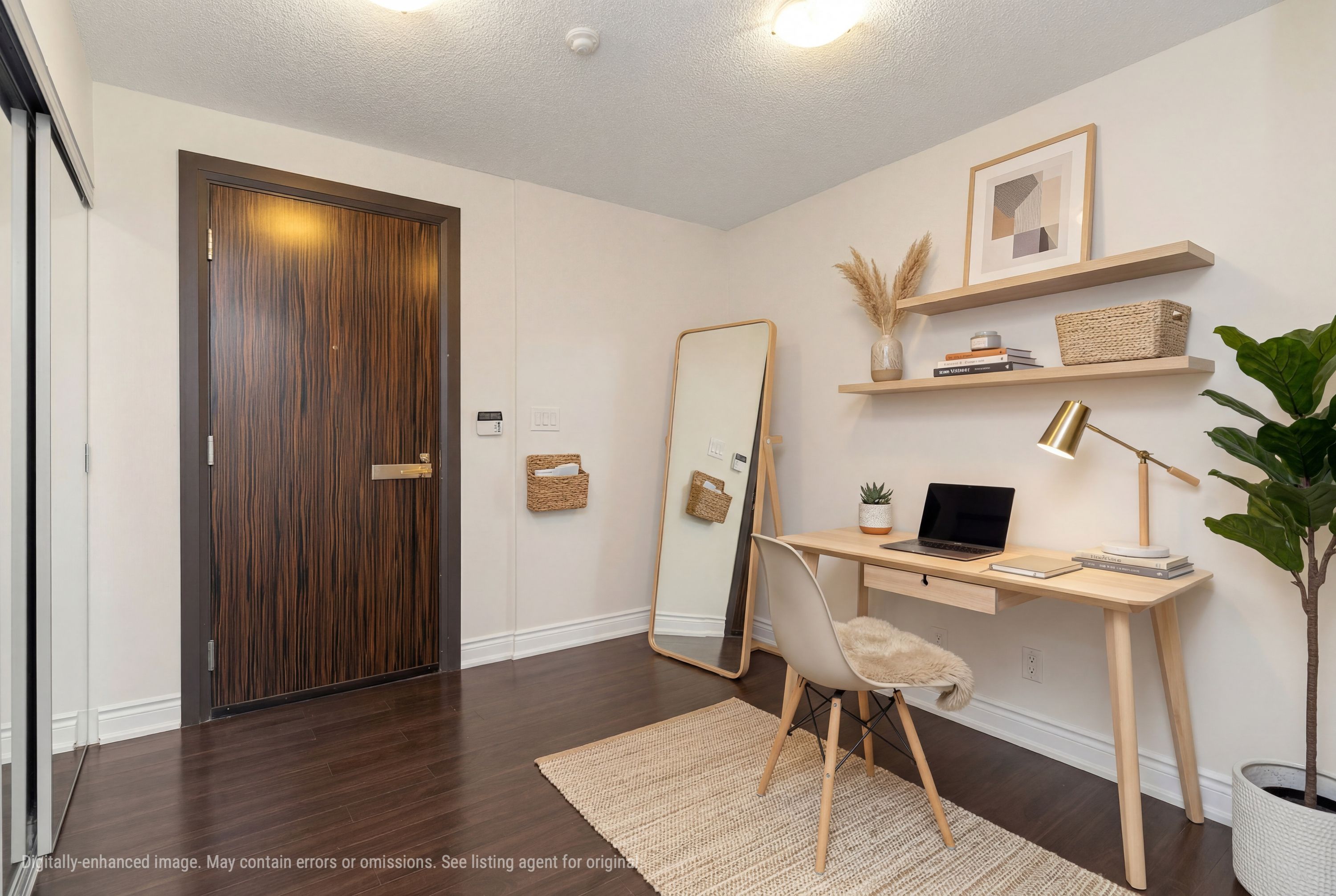 A truly one-of-a kind offering the highly sought-after eden park community. This timeless building is known for its energy-efficient construction and exceptional, state-of-the-art amenities. Thoughtfully designed, this corner unit features a spacious foyer with a versatile den-perfect for a home office or an impressive entryway. Enjoy stunning west facing views overlooking the newly developed park, filling the space with natural light. The suite offers 2 generously sized bedrooms, each with large windows and ample closet space. A standout feature is the ~477sqft wrap around terrace, providing endless possibilities for outdoor living and entertaining. Enjoy premium amenities including a beautifully appointed party room, indoor pool, games room, gym and theatre. With a limited number of units on this floor, you will experience the quiet, exclusive feel of penthouse-style living, along with convenient access to building amenities.