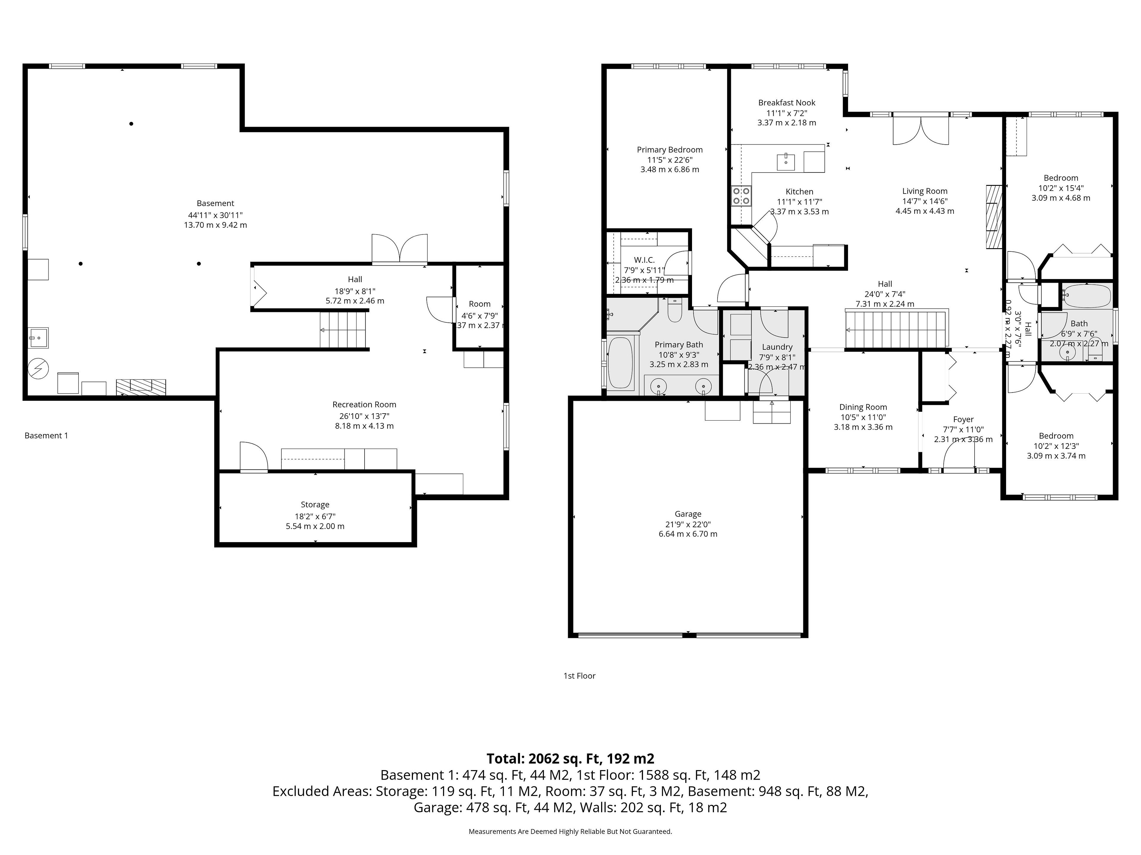 • Finished basement includes recreation room, fourth bedroom, and laundry.