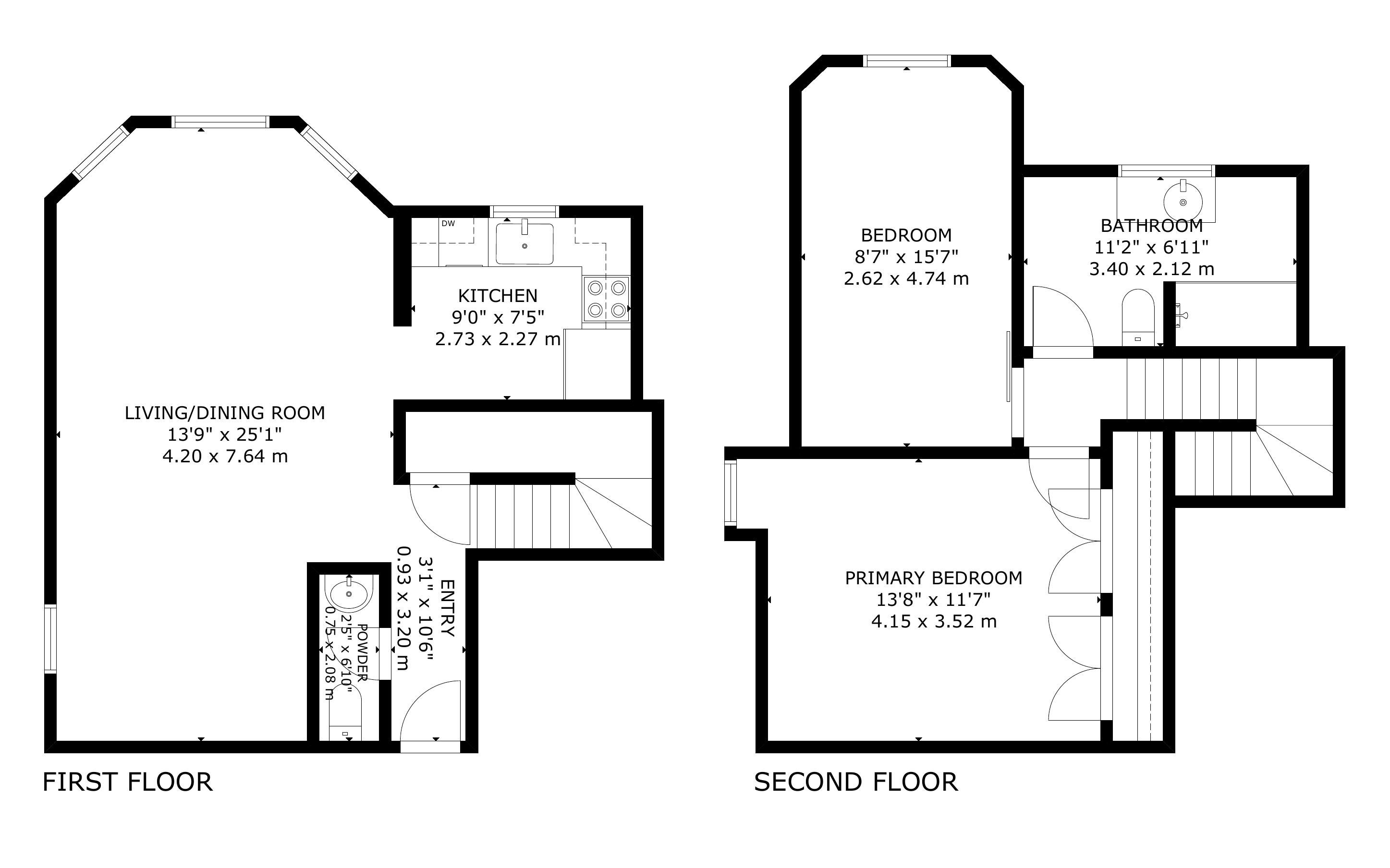 • Two-storey unit with large windows and 10-foot ceilings for spacious living.
