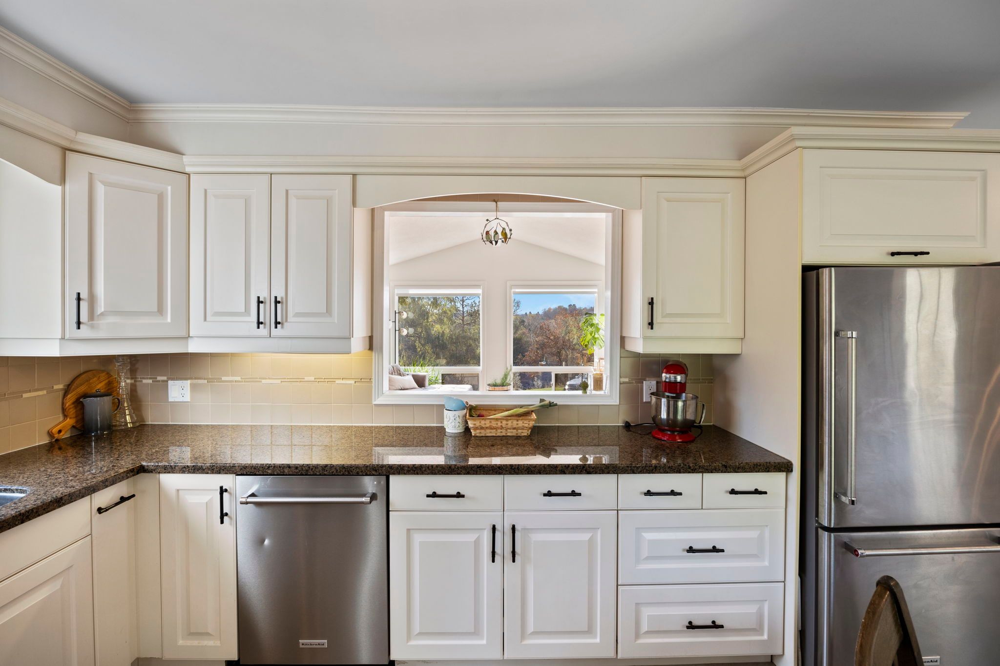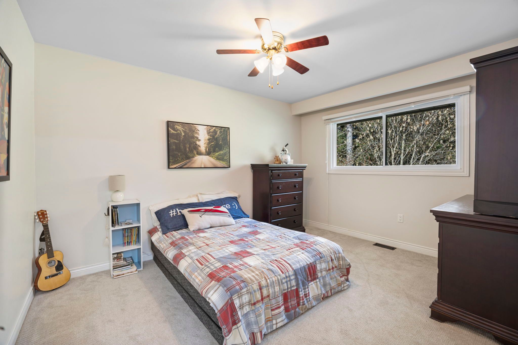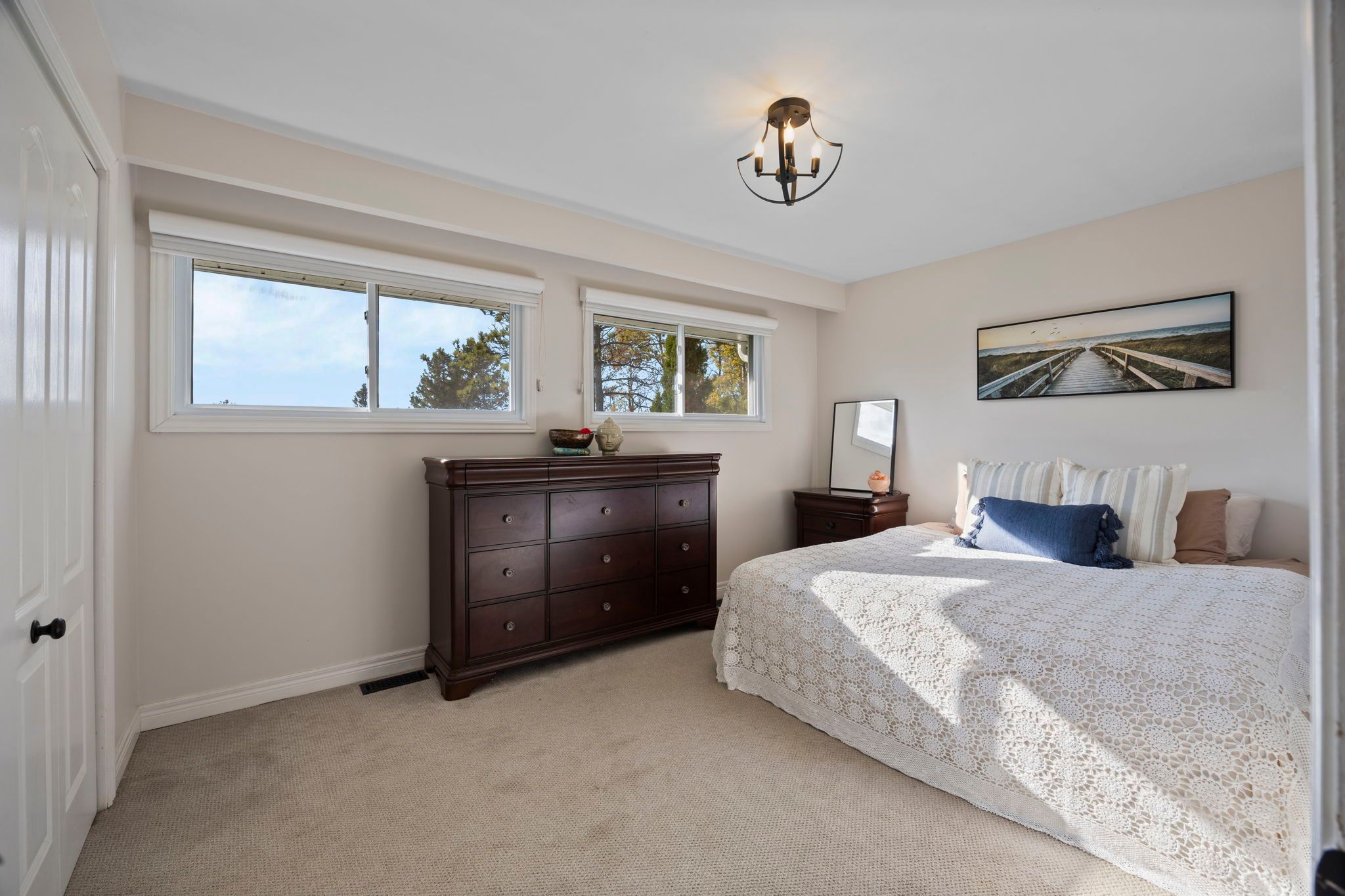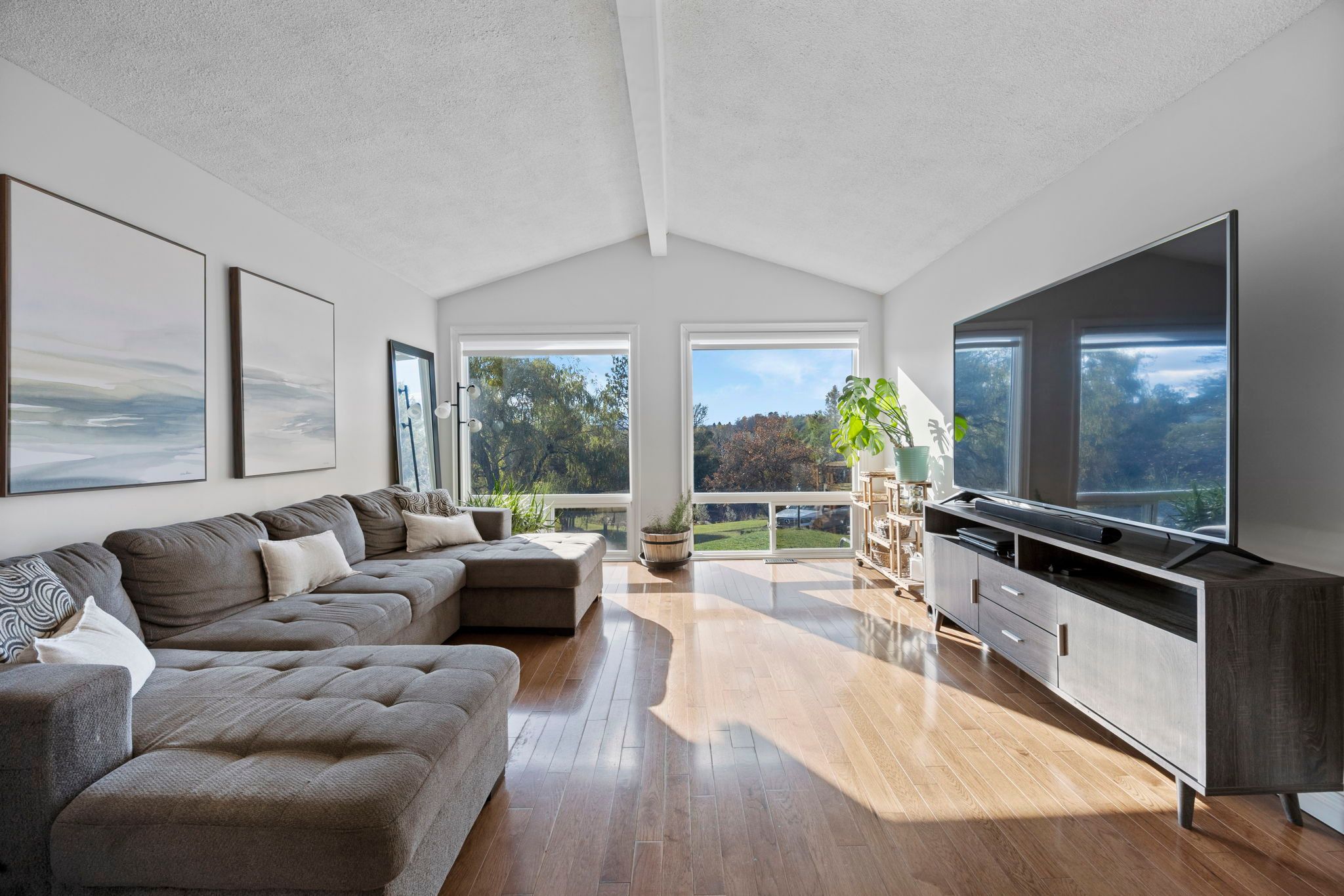 • Open-concept living area with lots of natural light and a deck.