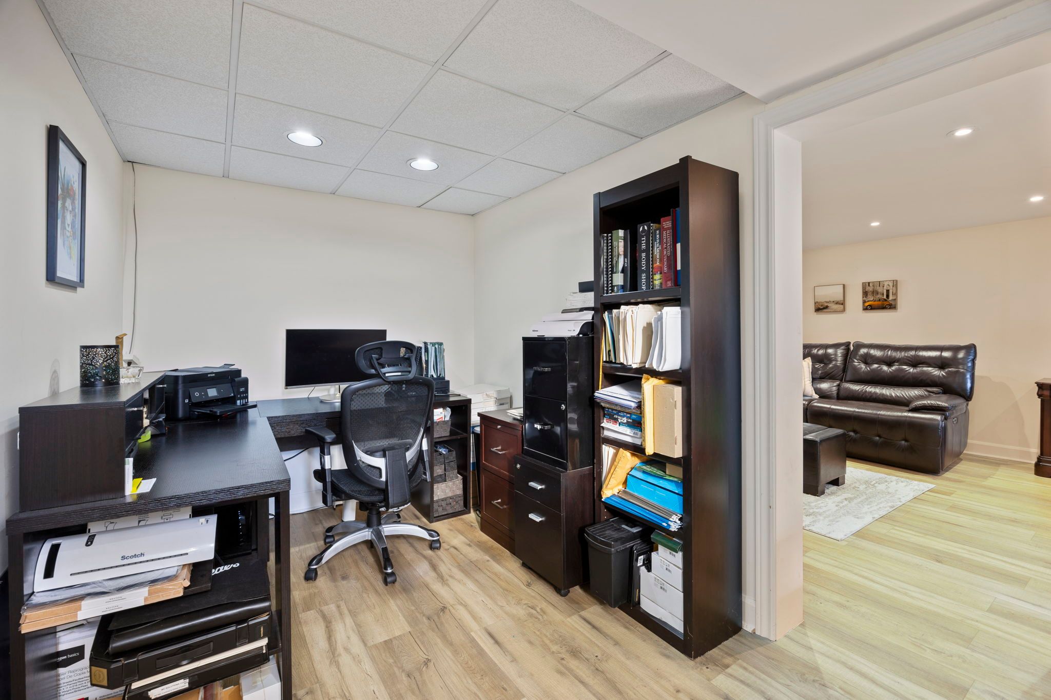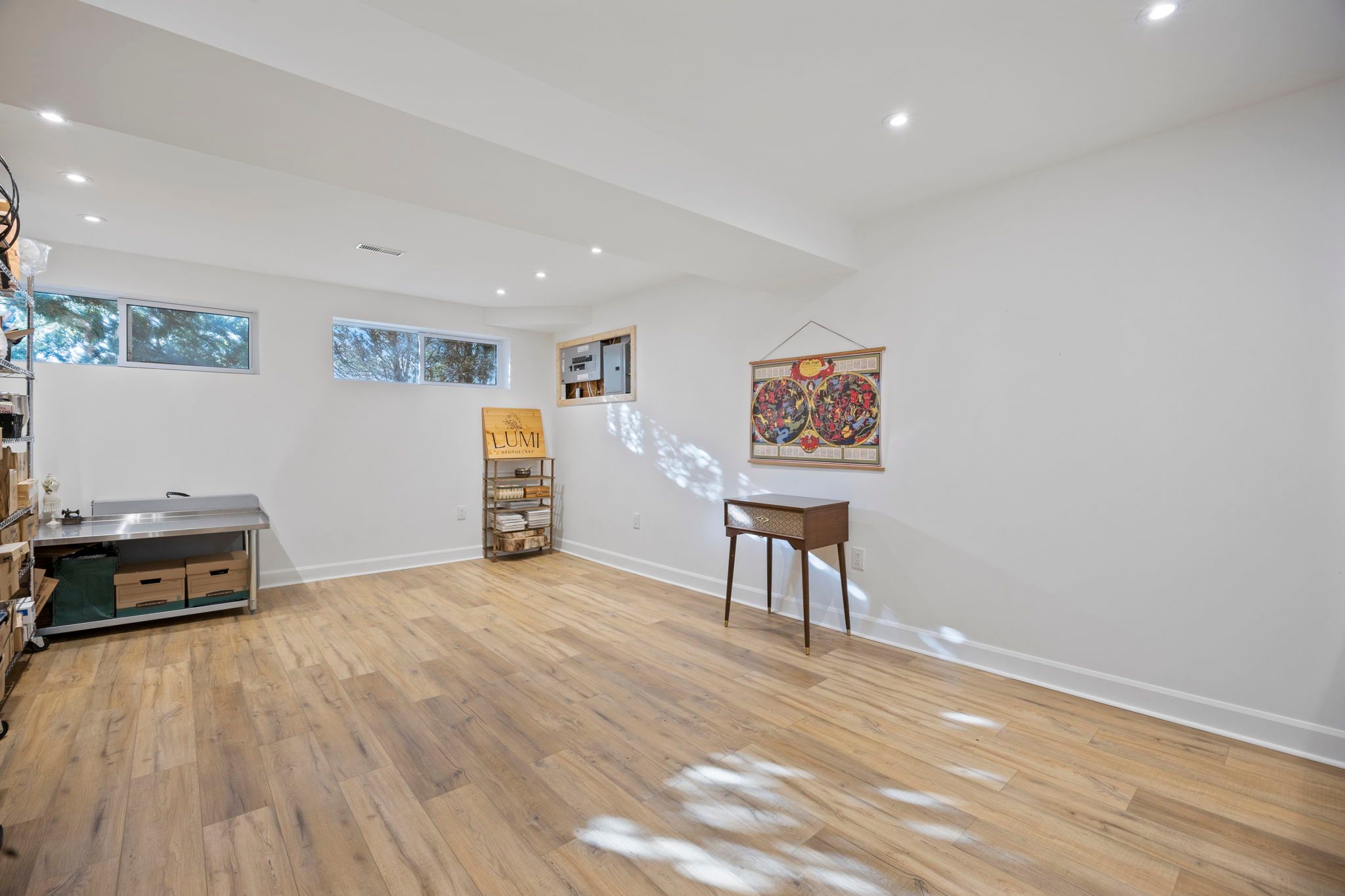 • Finished basement featuring a large rec room and a cozy fireplace.