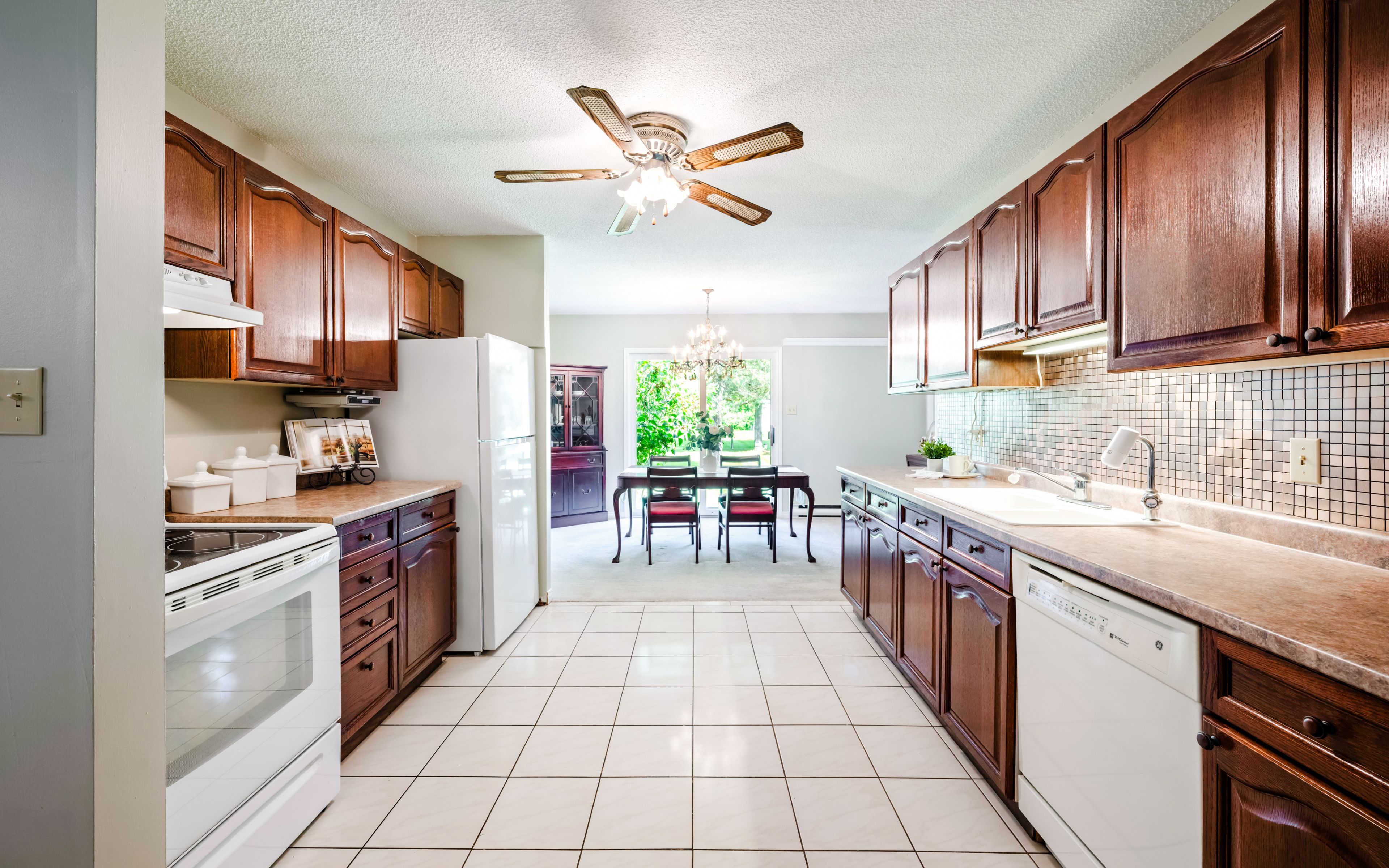 • Bright eat-in kitchen with ample cabinetry and attached garage access.