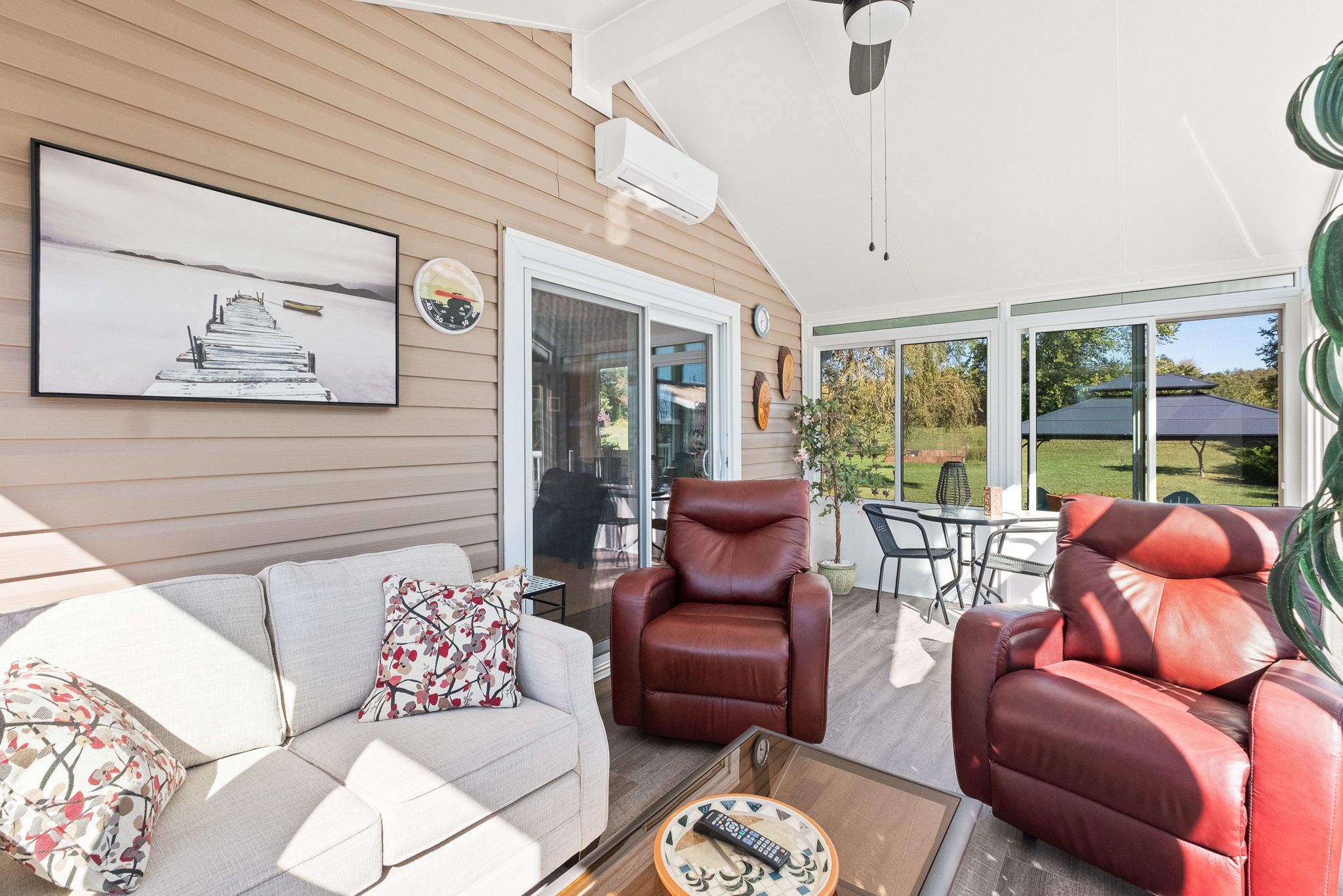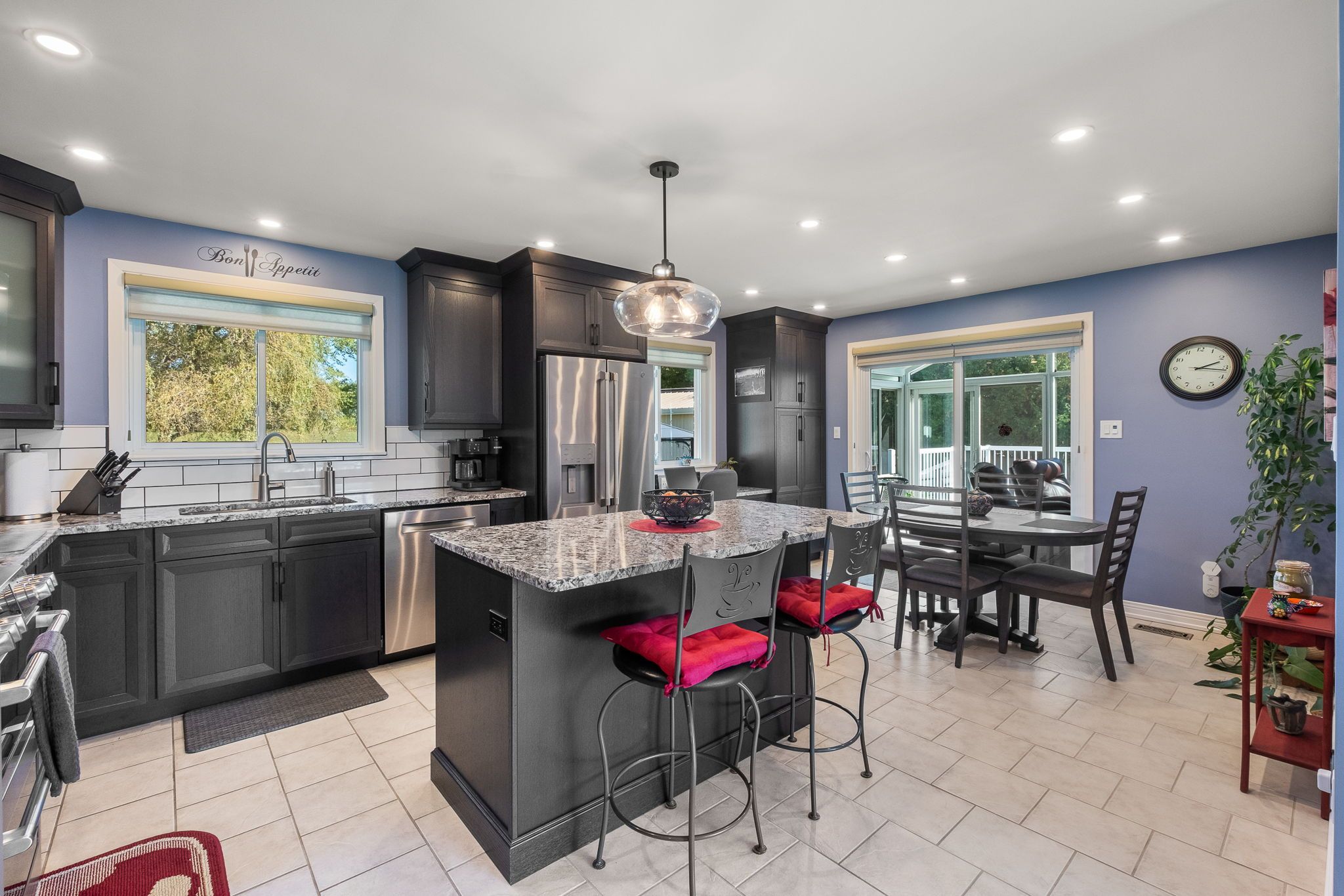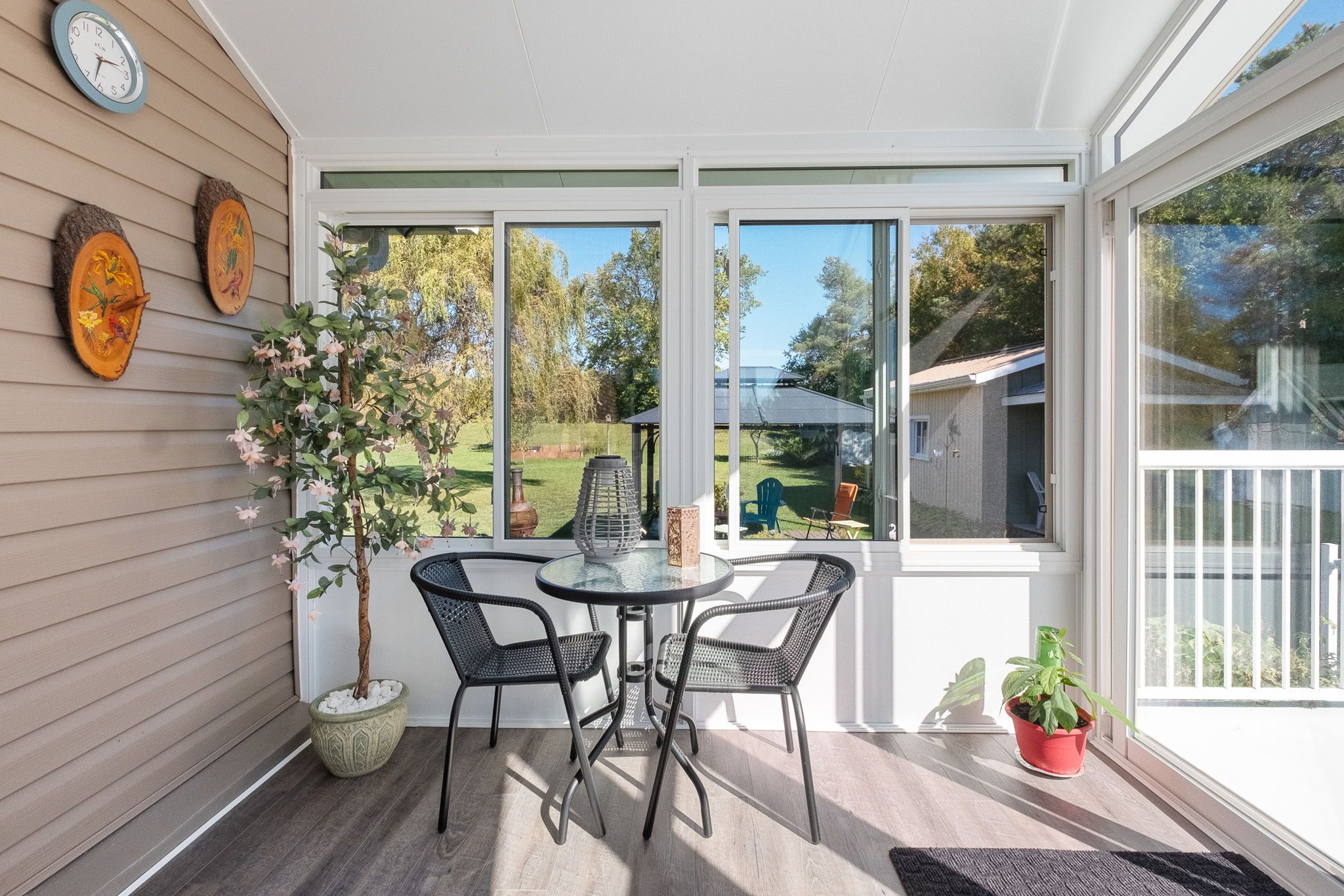 Affordability at it's finest. Where can you find all utilities under $200? Right here! That's heat, hydro, hot water, ac, and a maintenance free metal roof to boot! When location tops your list - this one delivers. Set on a private, beautifully landscaped lot just minutes from cobourg's beach, marina, golf, hospital, shopping, dining, and 401 access, this meticulously maintained raised bungalow offers the perfect blend of country charm and town convenience. Step inside this bright and updated 2+1 bedroom, 2-bathroom home and be instantly impressed. The modern gourmet kitchen features granite counters, extensive custom cabinetry, and a built-in desk perfect for everyday living and entertaining. A stunning 4-season sunroom with cathedral ceiling, heat/ac, and wraparound windows opens to a unique upper deck with views of lake ontario ideal for morning coffee or sunset gatherings. The lower level offers a generous family room, freshly renovated 3-piece bath, bright third bedroom, and a large laundry area with direct entry to the 1. 5-car garage. Enjoy quality finishes throughout, including hardwood, tile, and luxury vinyl plank flooring. Energy efficiency is top-notch with a ground-source heat pump and premium water furnace system offering substantial hydro savings. Outside, the charm continues with perennial gardens, fruit trees, berries, asparagus beds, and a steel gazebo with custom rubber flooring. Three custom sheds (10x18, 8x10, 8x8) provide excellent storage. Additional upgrades include freshly paved drive, newer windows, high-end kitchen appliances (10k+), dusk-to-dawn motion lighting, and security system. Full list of features/upgrades attached. Move-in ready and truly special this is the one you've been waiting for!