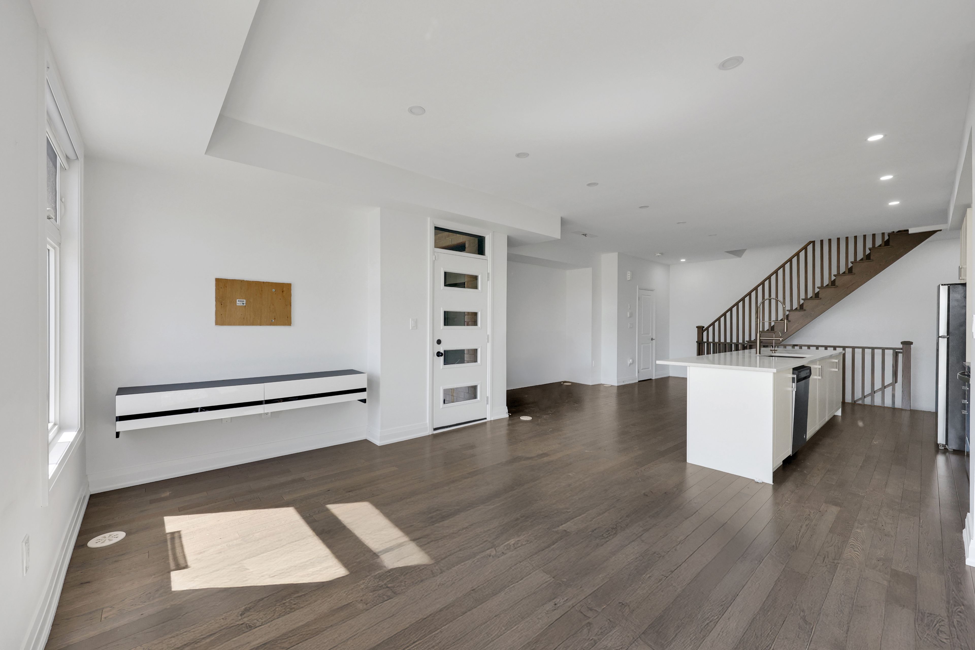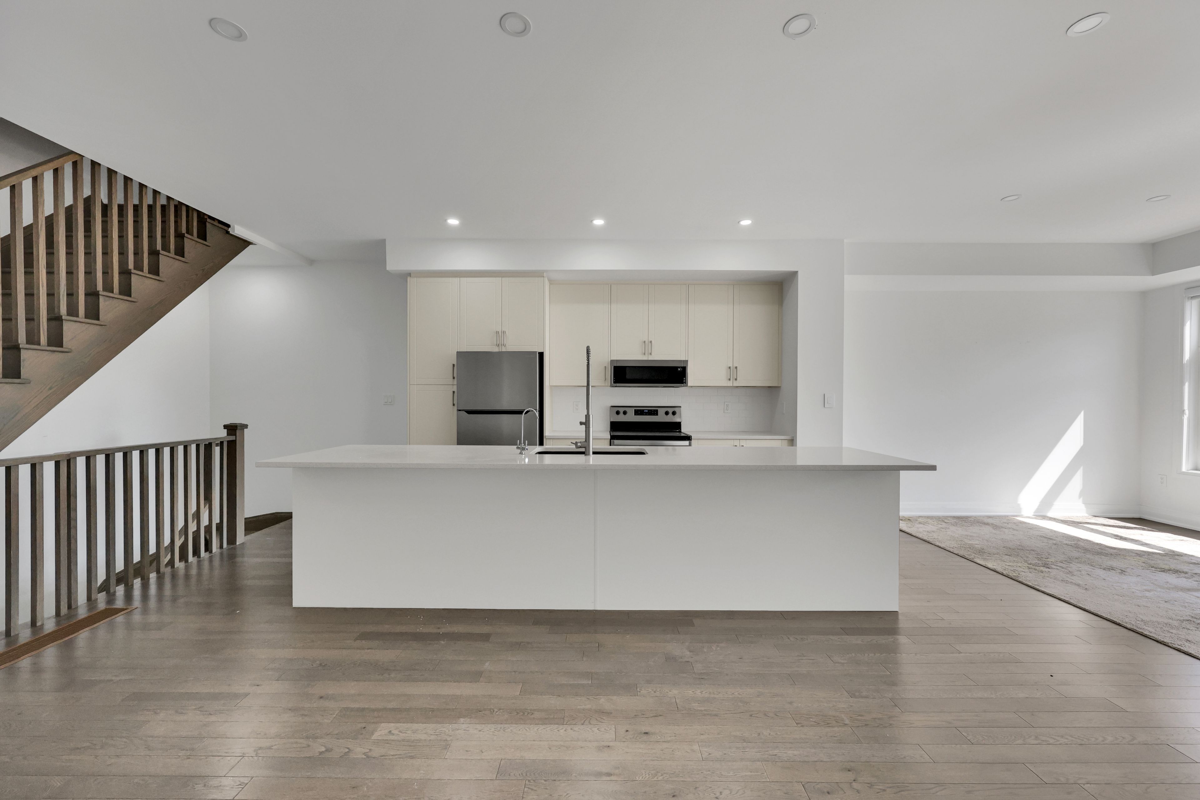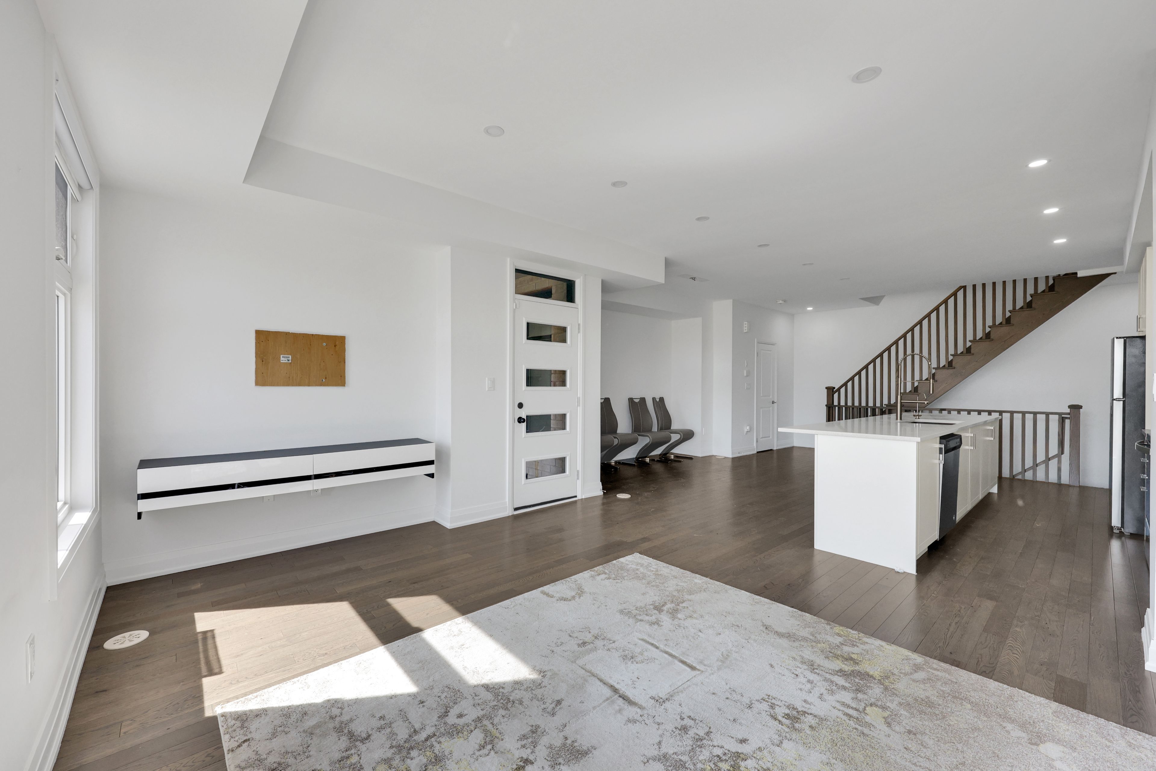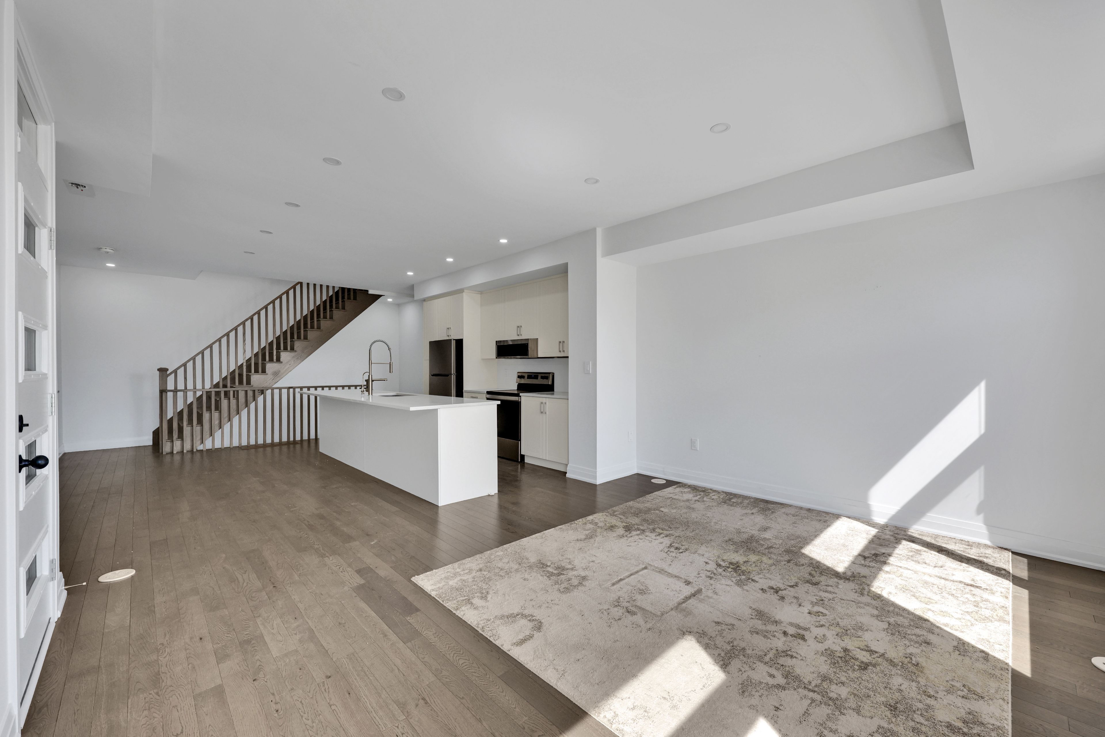 "rare power of sale opportunity in oakvilles prestigious glen abbey encore! This brand new 3-bed, 3-bath freehold townhome offers an impressively spacious and luxurious layout perfect for investors and first-time buyers looking to get into one of oakville's most sought-after communities. Featuring soaring 9' ceilings, hardwood floors, oak stairs, pot lights, and a modern kitchen with granite countertops, center island, and stainless steel appliances, this home is filled with premium upgrades. The primary suite boasts a sleek glass shower, while two expansive terraces provide incredible outdoor living with park and open-area views. Complete with smart home features, a high-efficiency furnace, and elegant finishes throughout, this power of sale listing is a rare chance to own a home that feels truly grand at an amazing price point!"