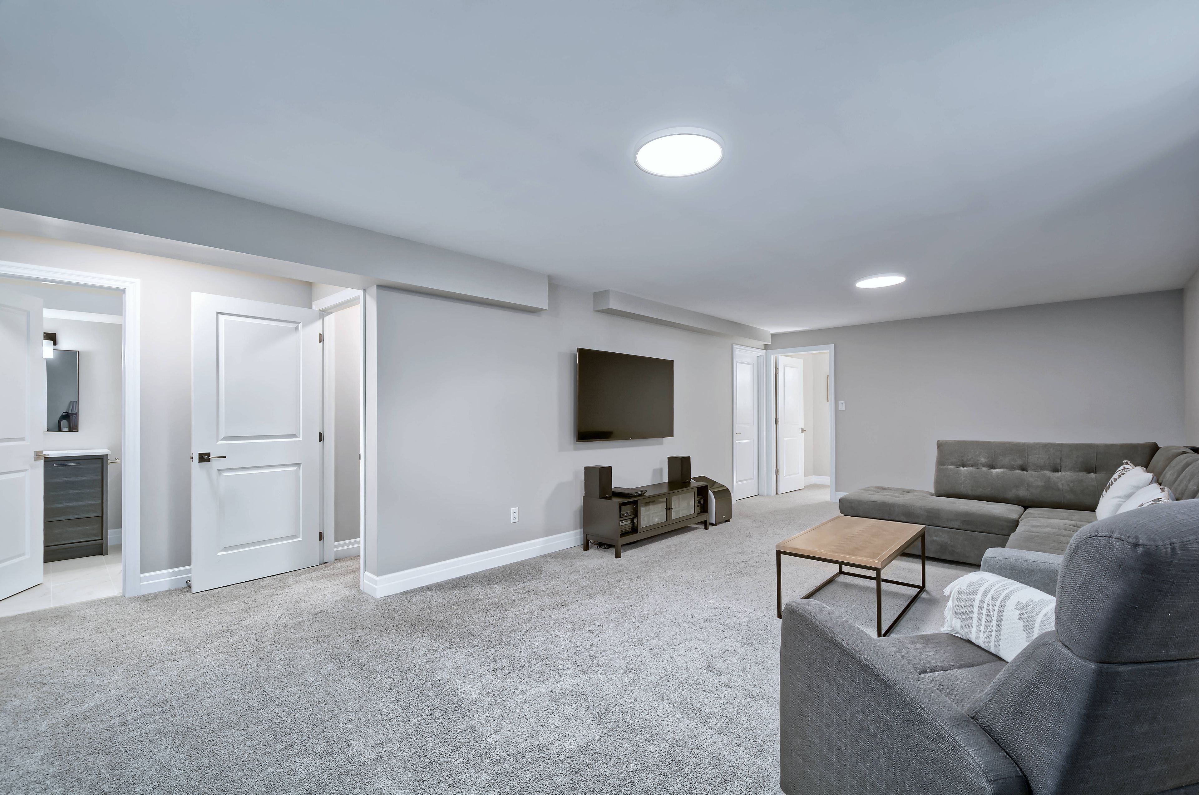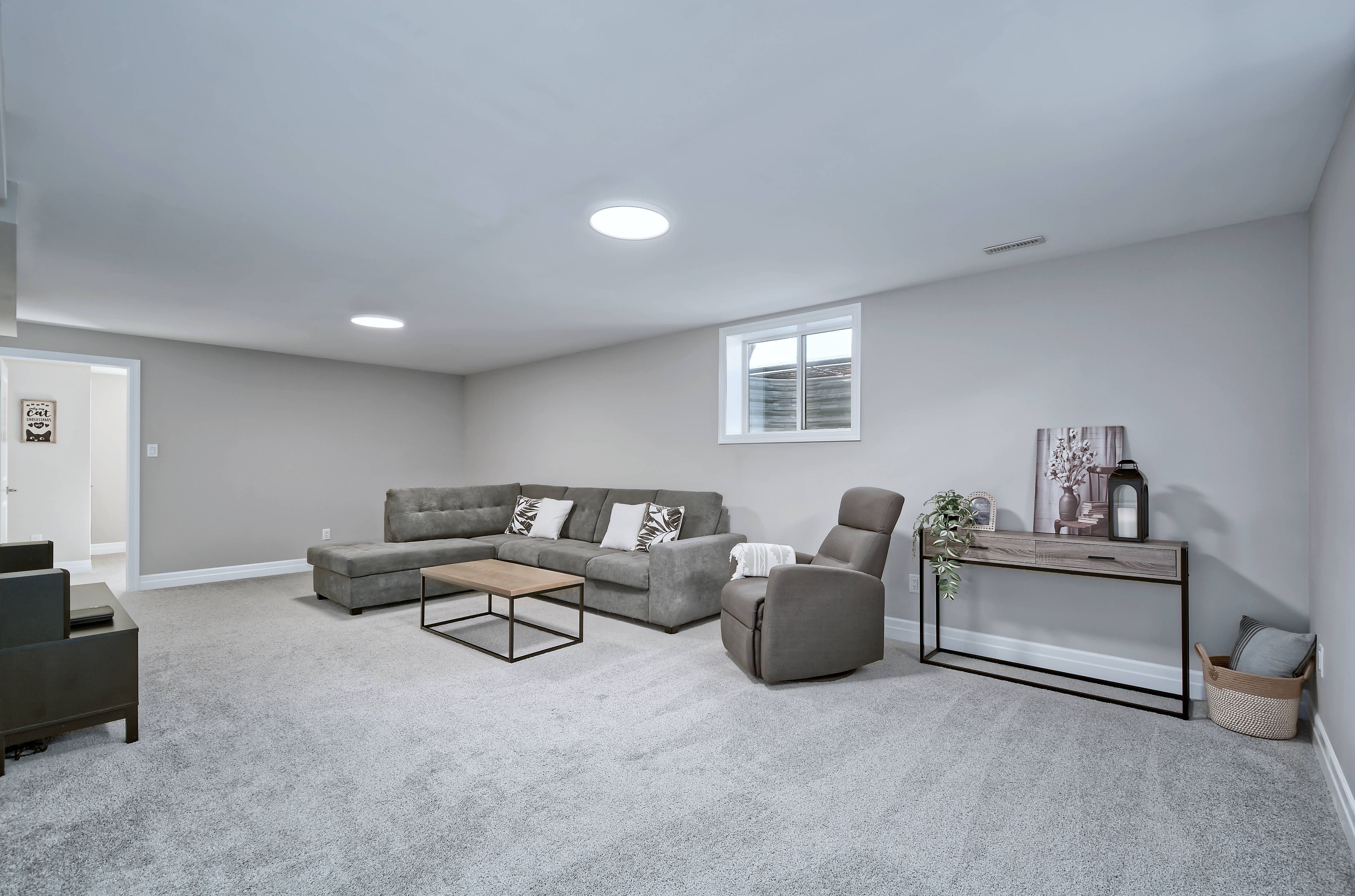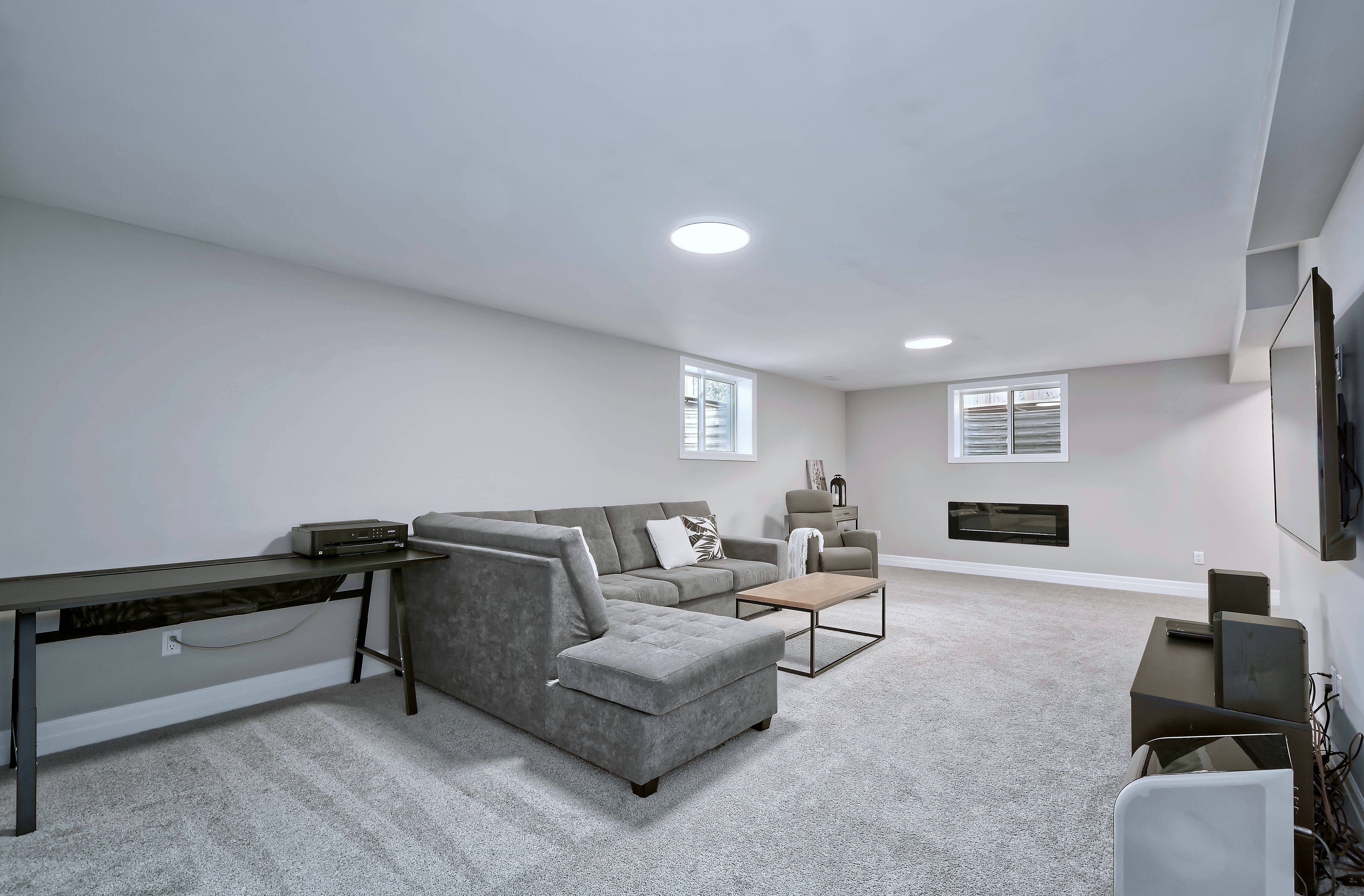 • Finished basement with extra bedroom, bathroom, and electric fireplace.