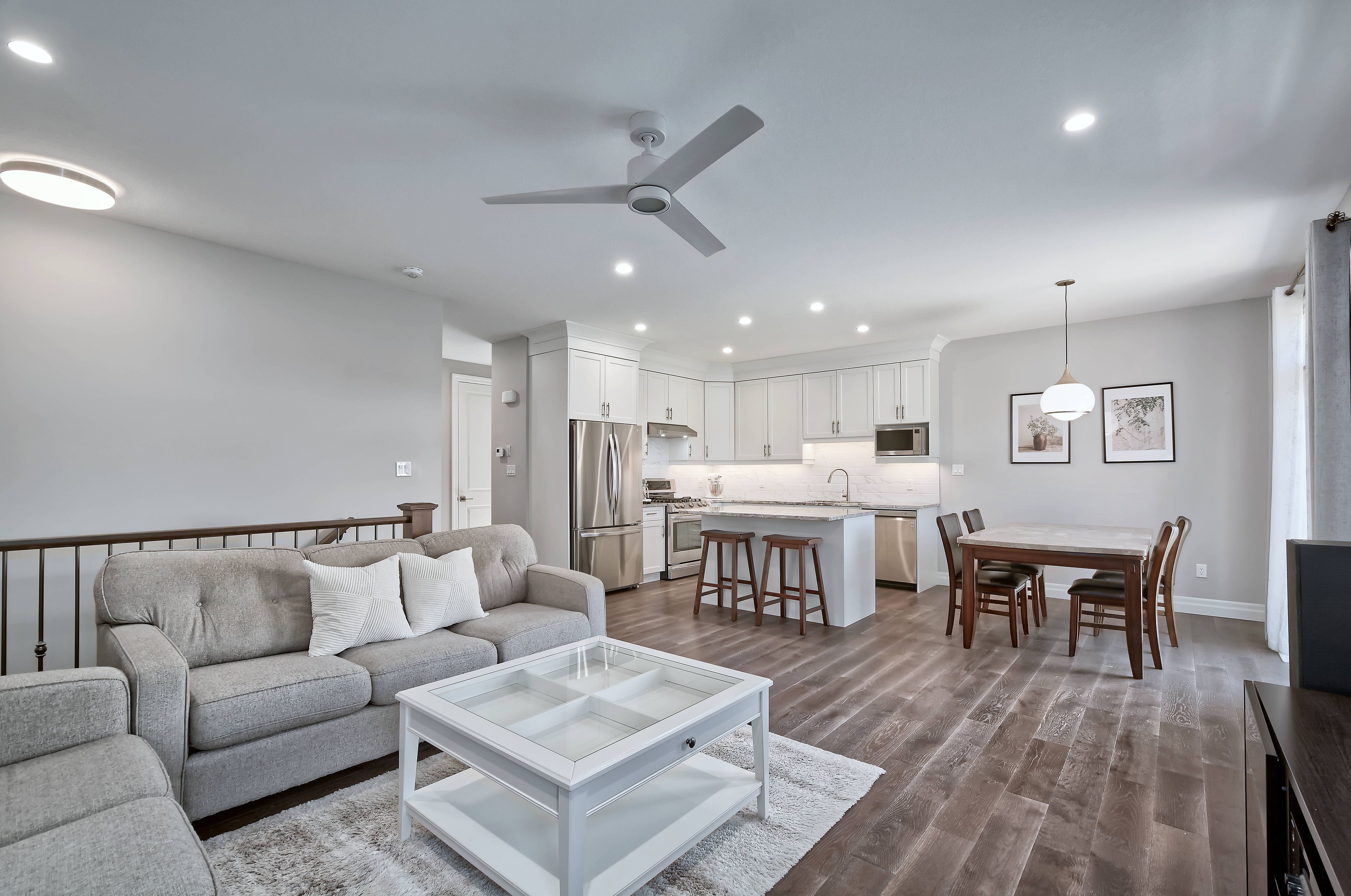 • Open-concept main floor with high ceilings and engineered hardwood throughout.