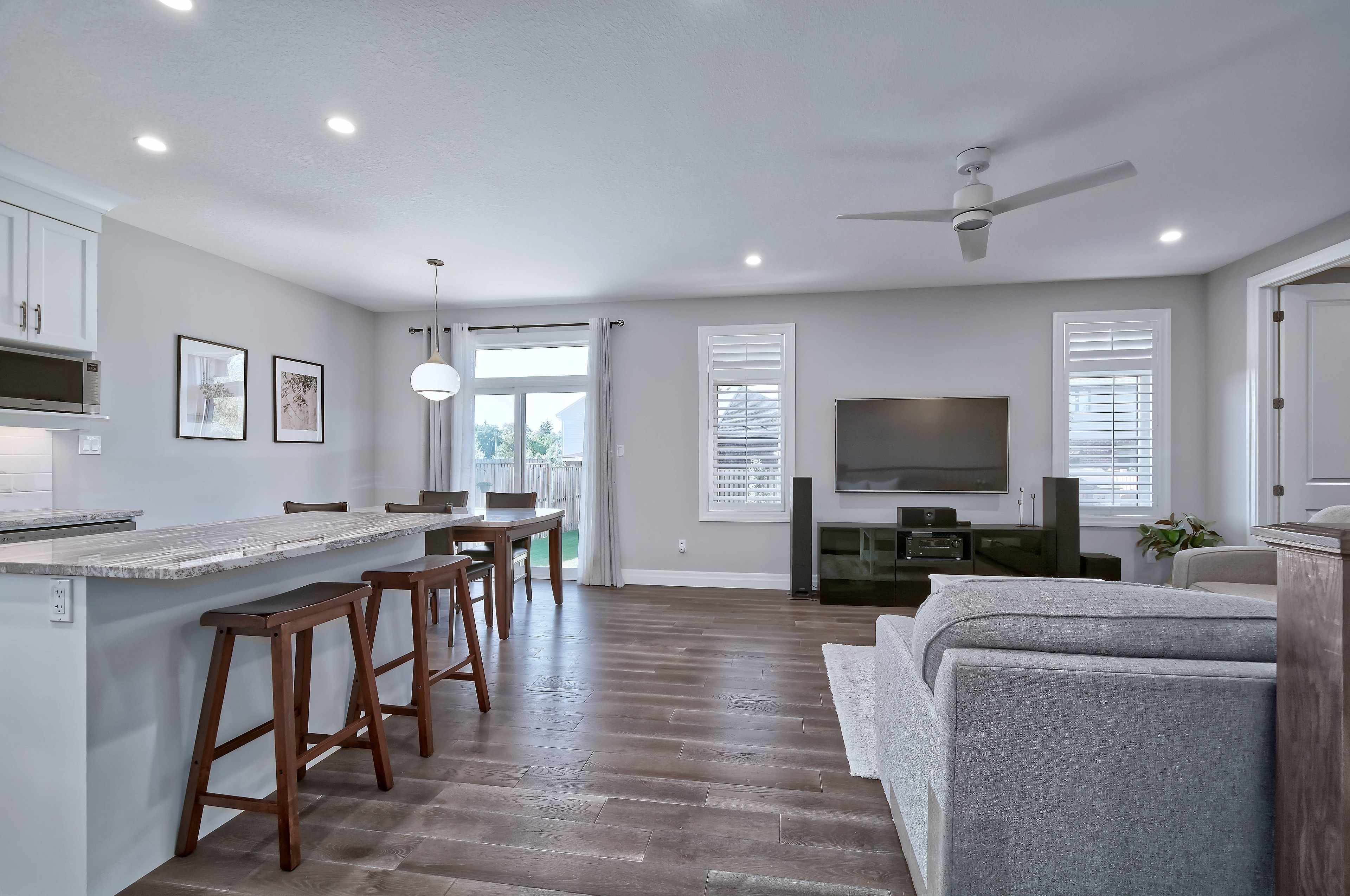Welcome to this beautiful 2+1 bedroom, 3-bathroom bungalow in mount brydges' highly sought-after woods edge subdivision. Built just 6 years ago by melchers, this home features an open-concept main floor with high ceilings, elegant foyer, engineered hardwood throughout, and main floor laundry. The modern kitchen offers stainless steel appliances, gas stove, crown moulding, a large island, and walkout to the backyard. The finished basement includes an additional bedroom, bathroom, and cozy electric fireplace. Enjoy the private backyard with electric awning, plus smart home features, hrv, ev hookup, on-demand water heater, and california shutters. Conveniently located across from the public school in this desirable family-friendly neighbourhood. 15 mins from london and all of the amenities west london has to offer. (west five, boler mt. Etc.)