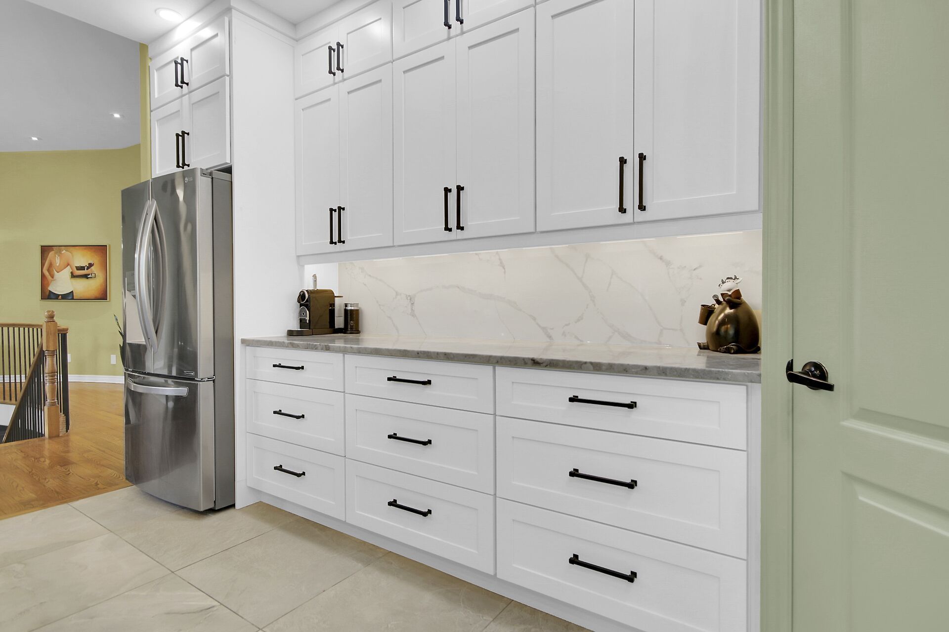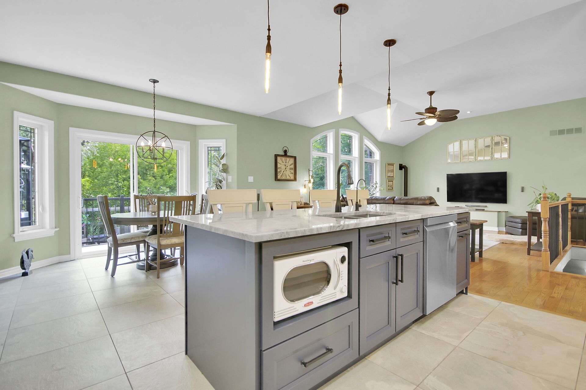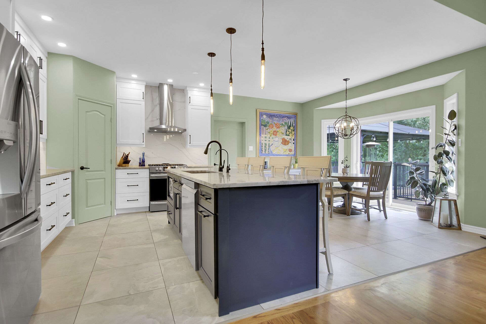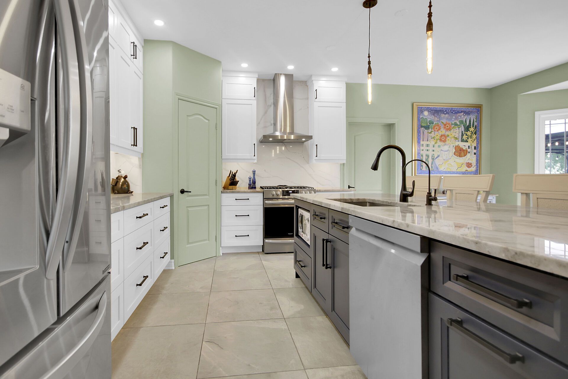 • Stunning custom kitchen with oversized island perfect for gatherings.