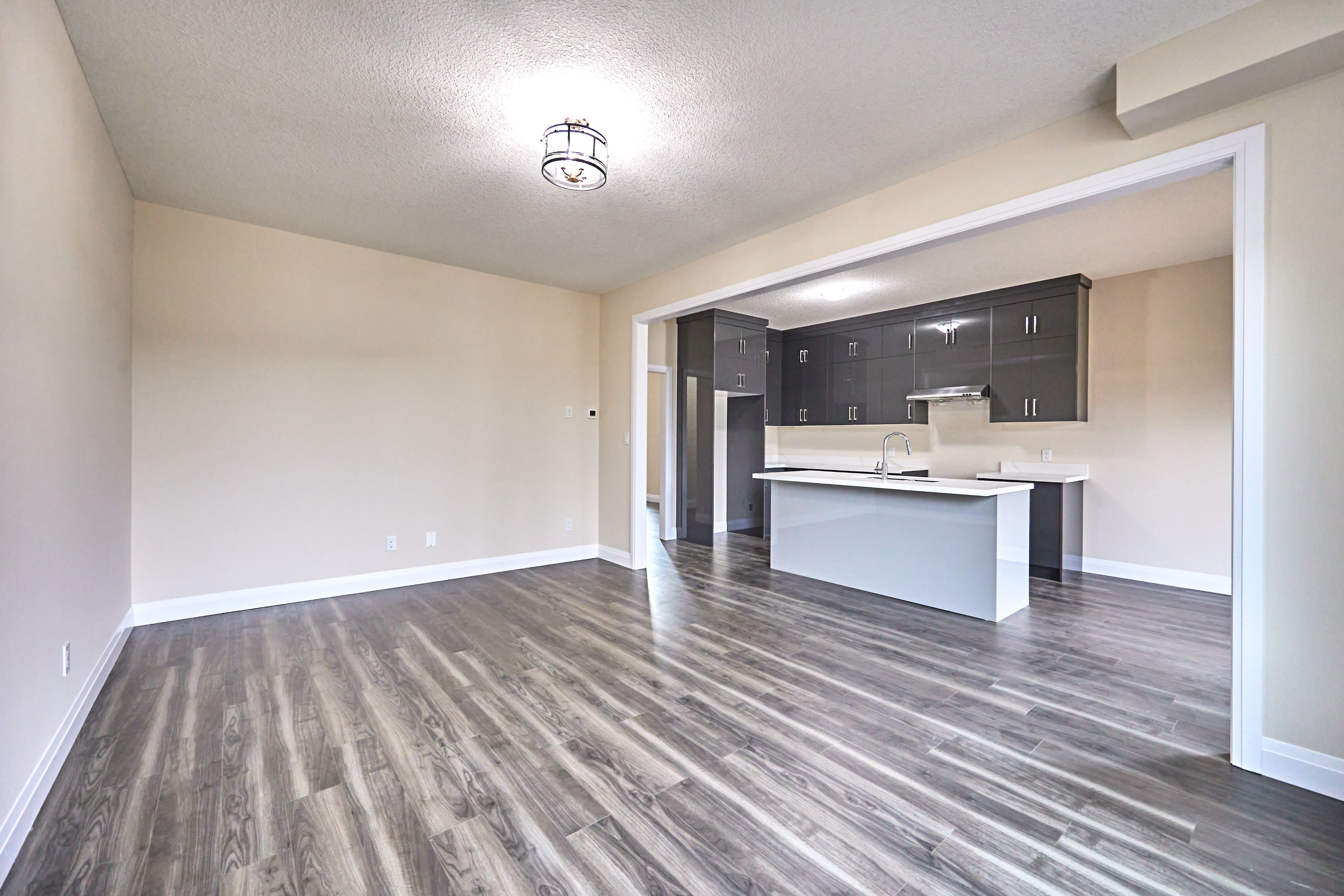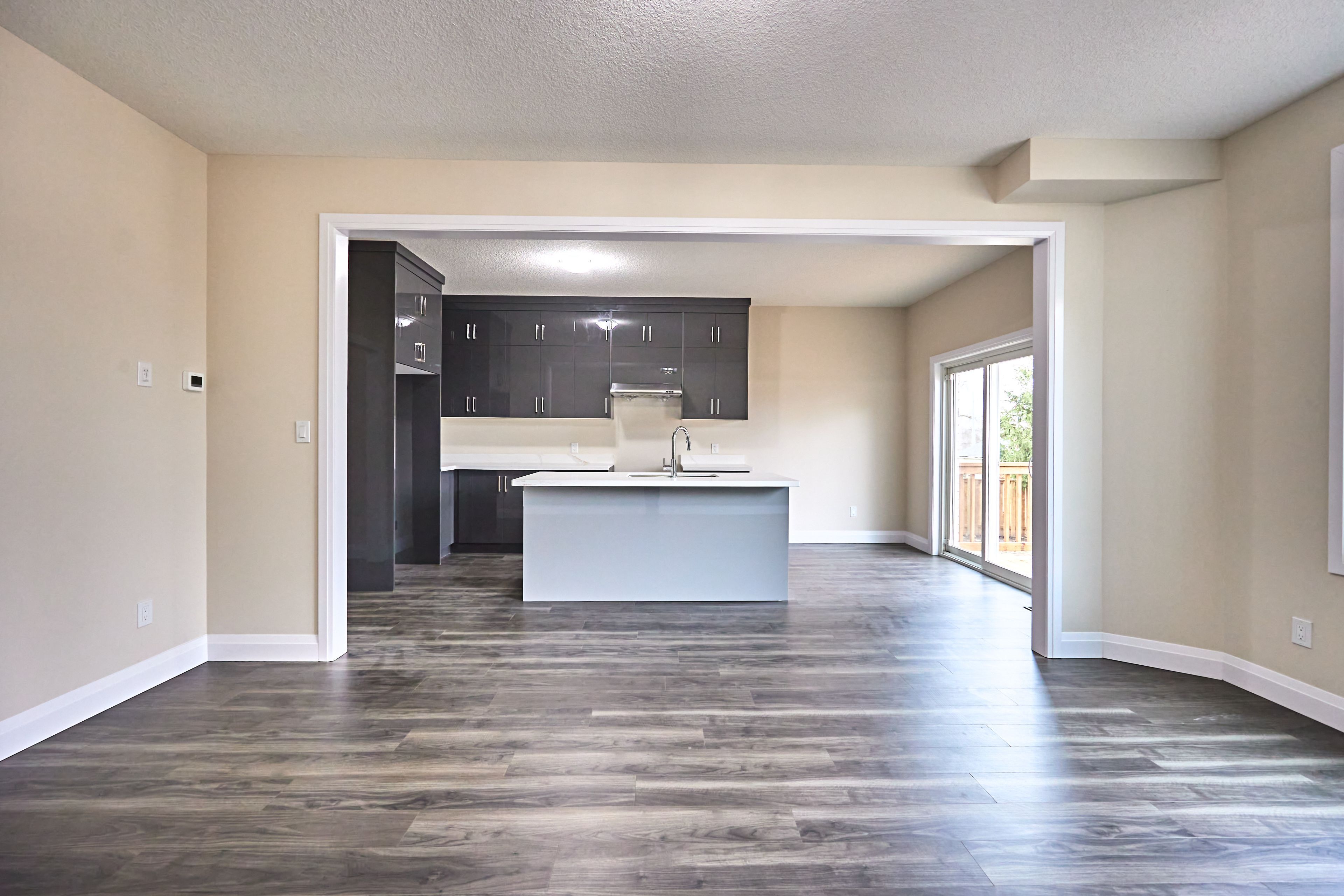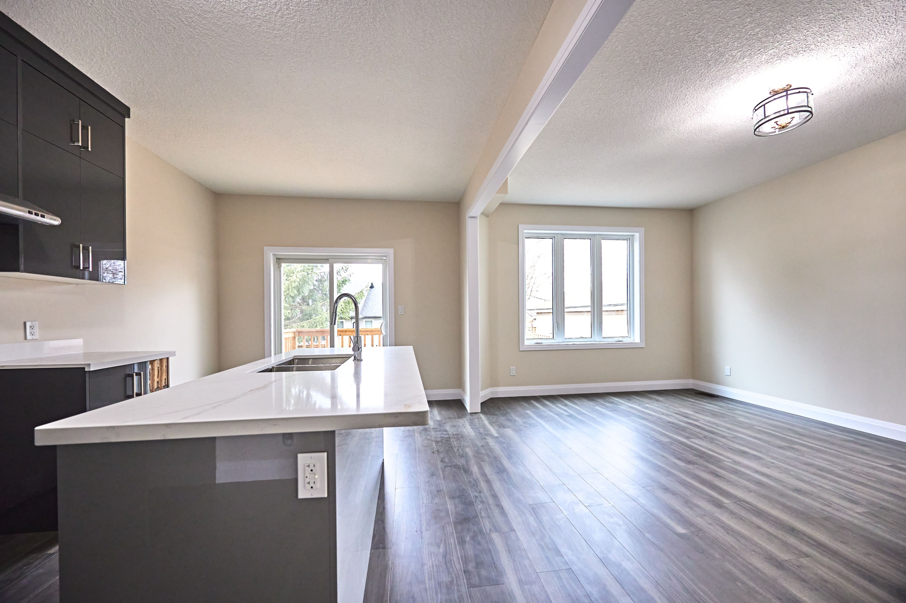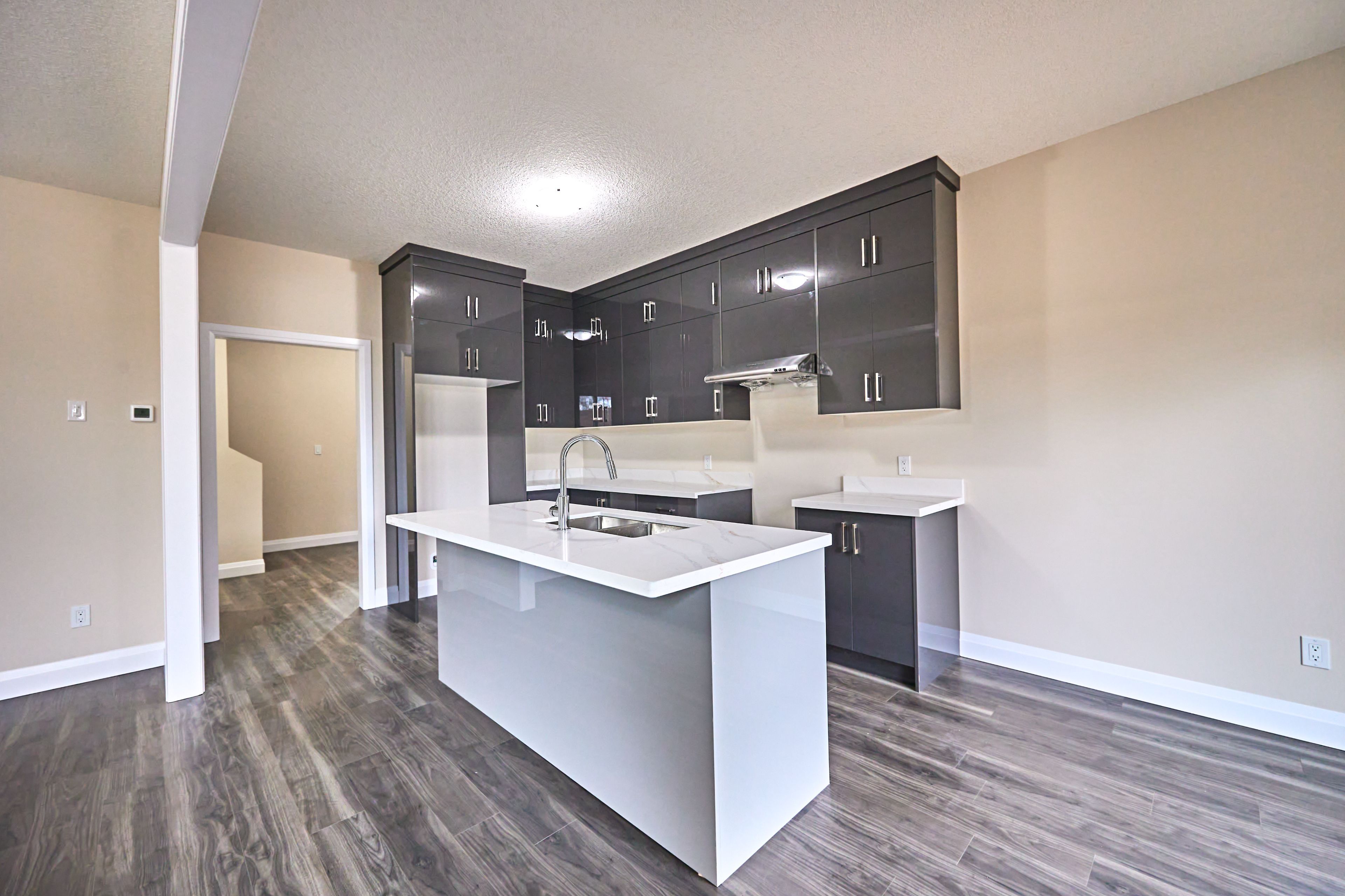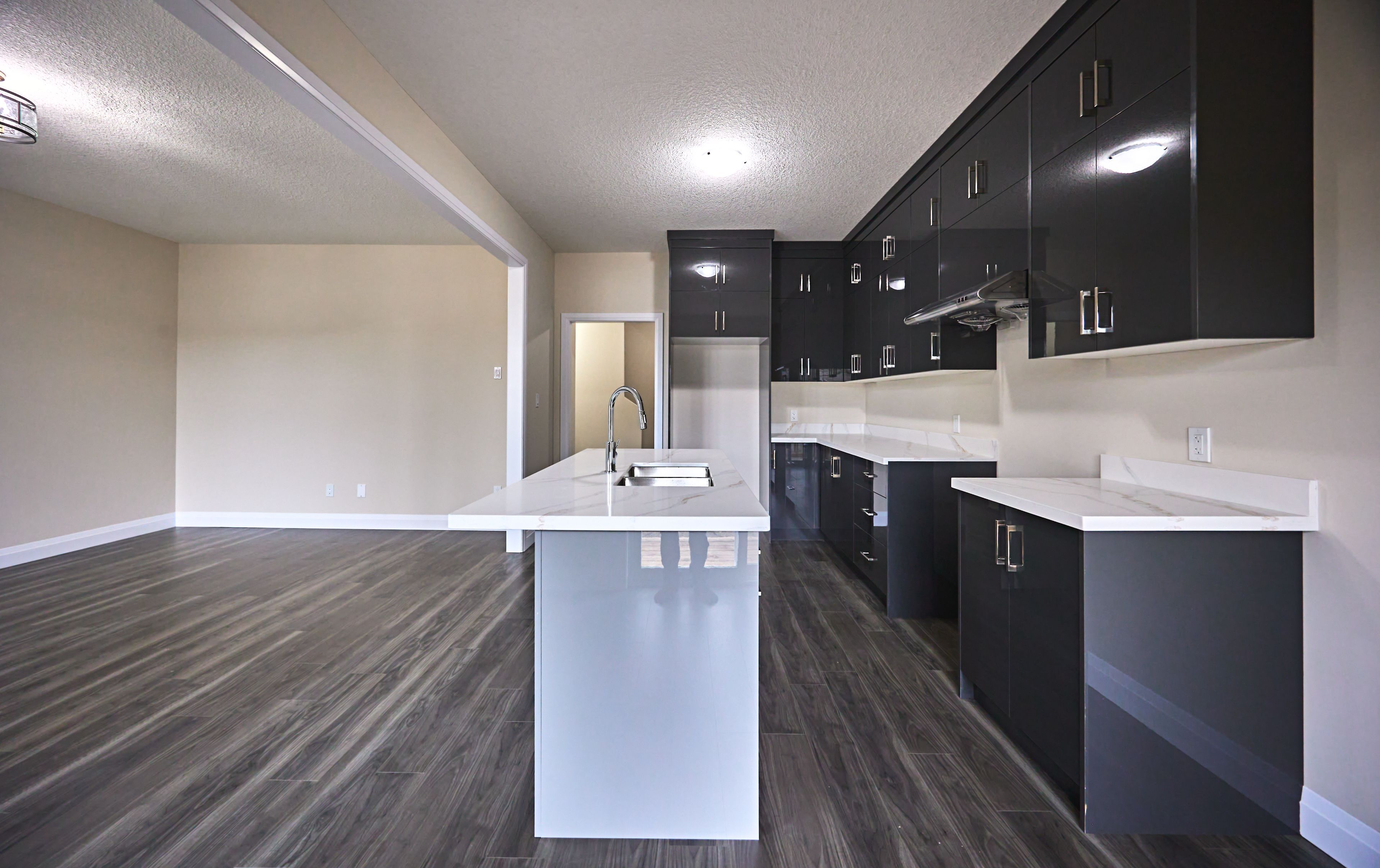 • Open-concept kitchen with a large center island and flow to the living area.