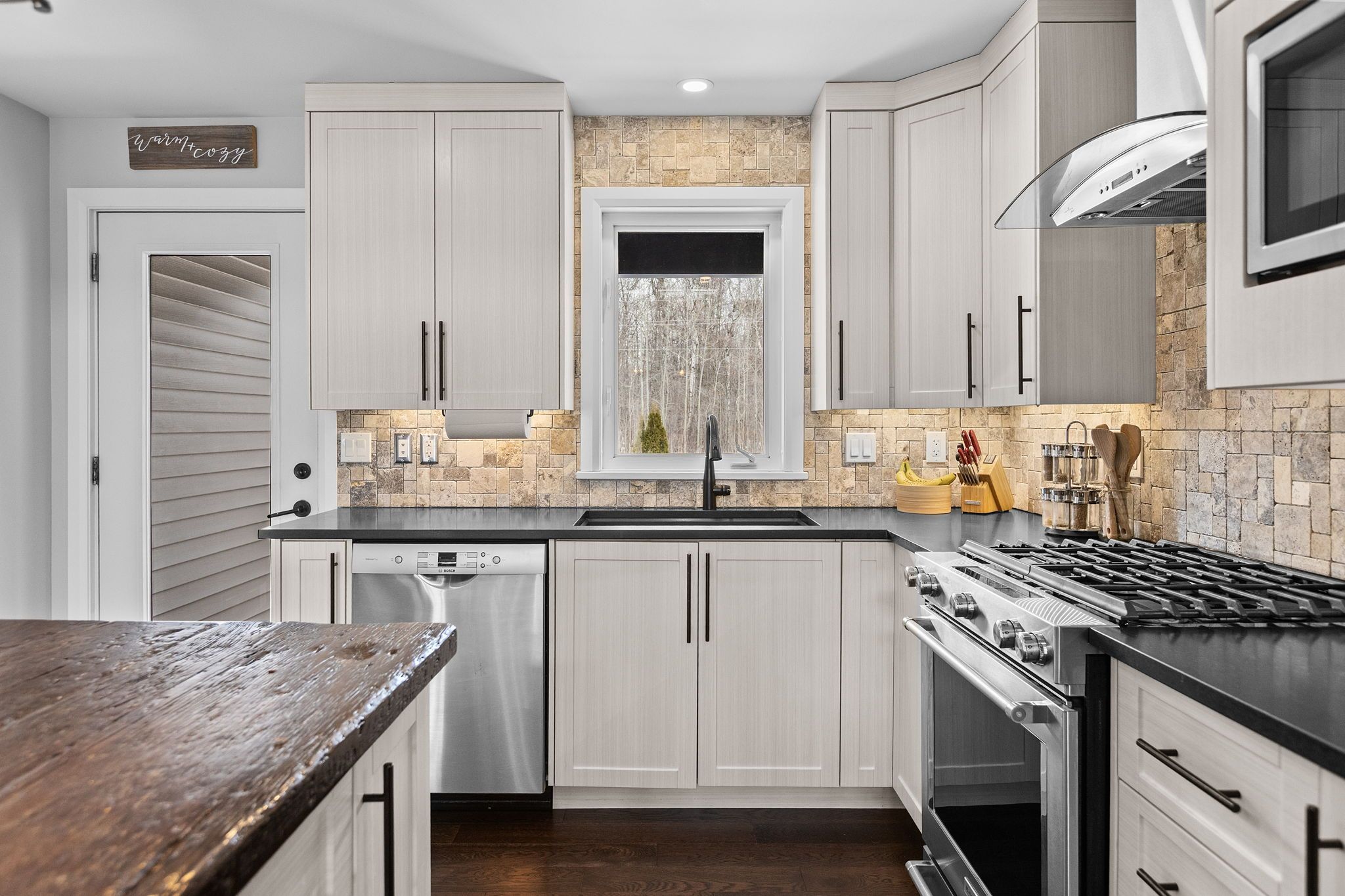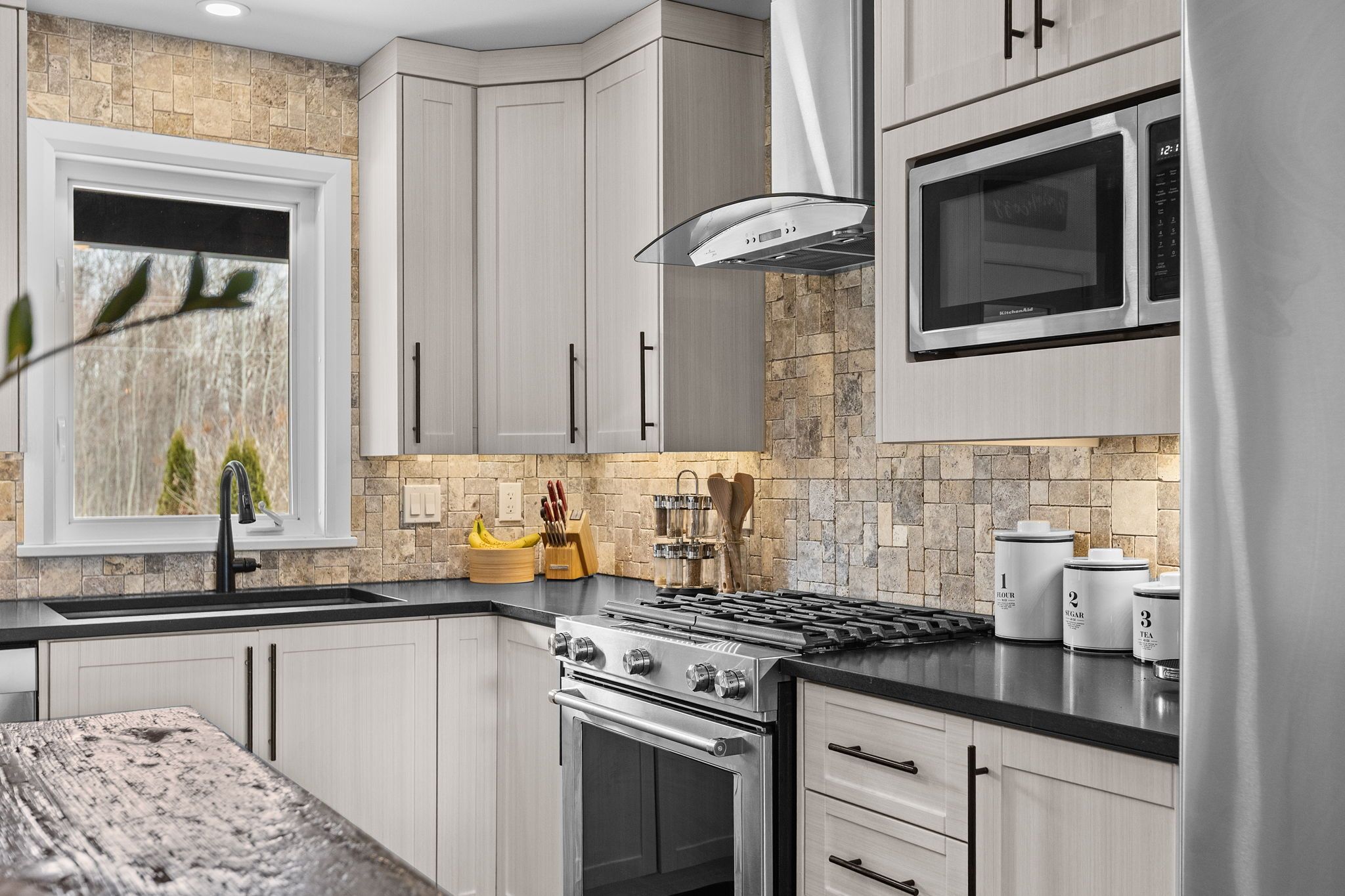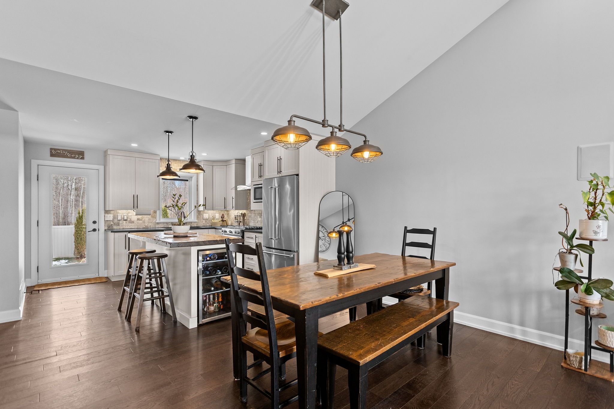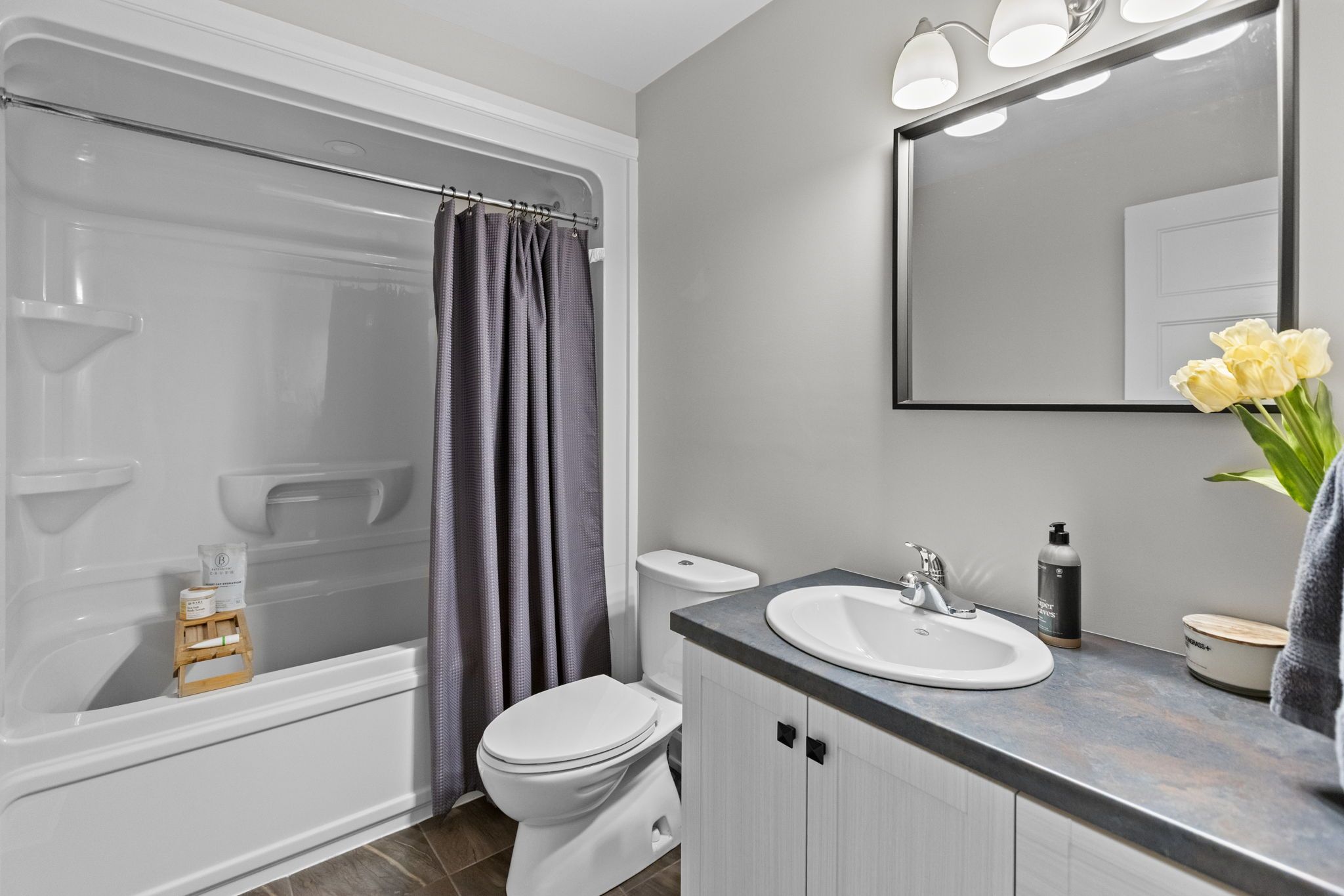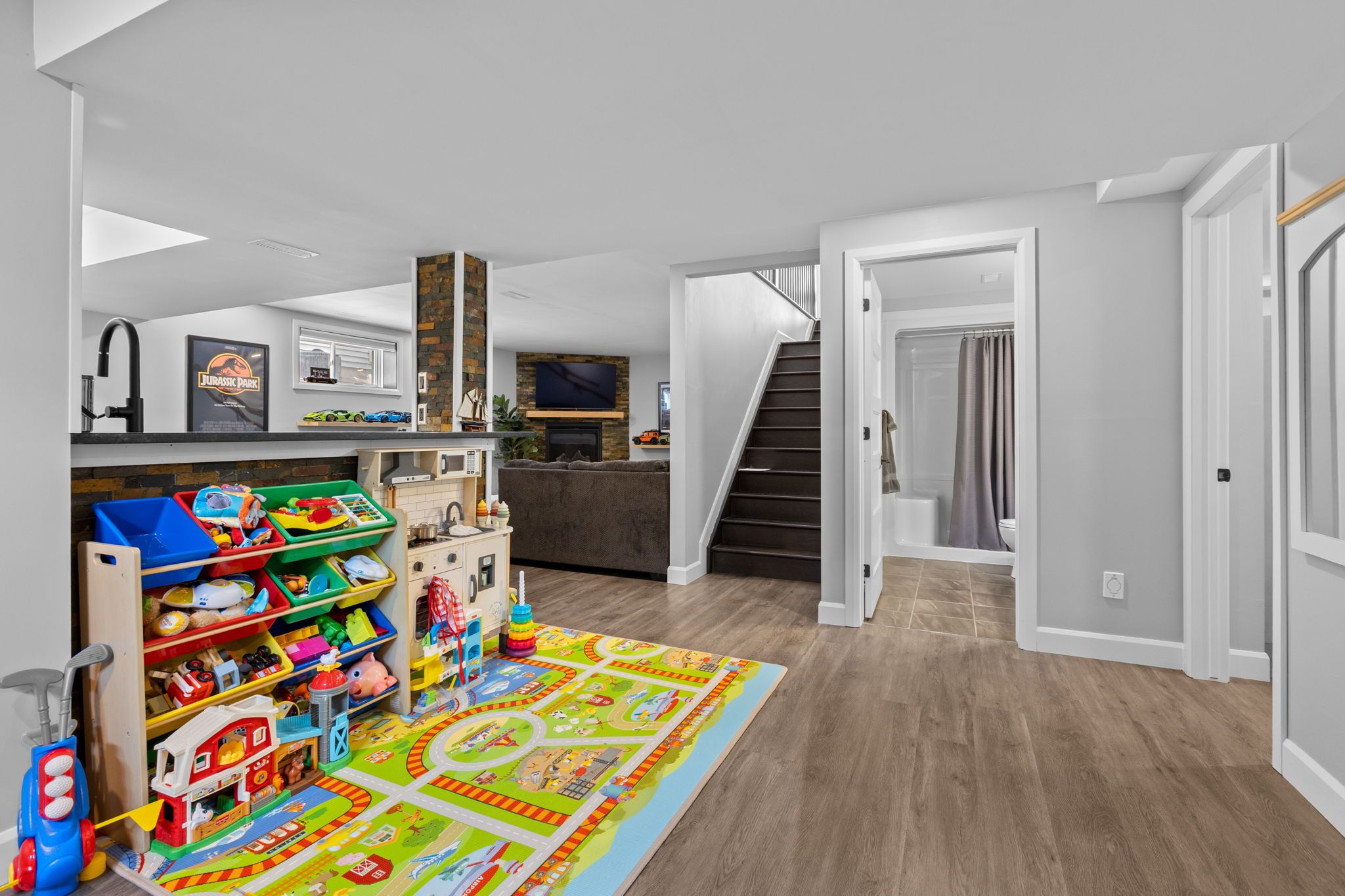 *open house sunday, march 29 , 2:00-4:00 pm* welcome to 254 pioneer road in russell, a beautifully designed 2018-built bungalow offering 2+1 bedrooms and 3 full bathrooms. From the moment you arrive, this home impresses with its stone exterior, warm wood beams, covered front porch, single attached garage, and private double driveway. Inside, a welcoming foyer with tile flooring and a front closet opens into a bright, airy main floor with high ceilings, large windows, and hardwood floors throughout. The open-concept living space feels warm, comfortable, and full of natural light. The kitchen is both stylish and functional, featuring cream cabinetry, stainless steel appliances, generous storage, and a massive antique-style wood island with seating that adds character and warmth. A wine fridge is a great bonus, and the walkout from the kitchen leads directly to the backyard deck, making outdoor dining and entertaining effortless. T he primary bedroom offers a relaxing retreat with a modern ensuite featuring a walk-in shower. A second main-floor bedroom with its own closet is ideal for family, guests, or a home office. A second full bathroom and a convenient laundry room with sink and storage complete the layout. The lower level features beautiful stone accents, a bar and kitchenette with seating area, and a cozy family room with a fireplace and matching stone wall. A third bedroom offers flexibility for guests, office space, or hobbies, along with a third full bathroom. Outside, enjoy a spacious fully fenced backyard overlooking a wooded area with no rear neighbours. The large deck offers room for seating and bbq, while the corner gazebo with built-in wood design creates a charming outdoor dining space. A firepit area adds extra warmth and character. Located in a desirable russell neighbourhood close to groceries, restaurants, and everyday amenities, this home offers comfort, style, privacy, and convenience in one inviting package.
