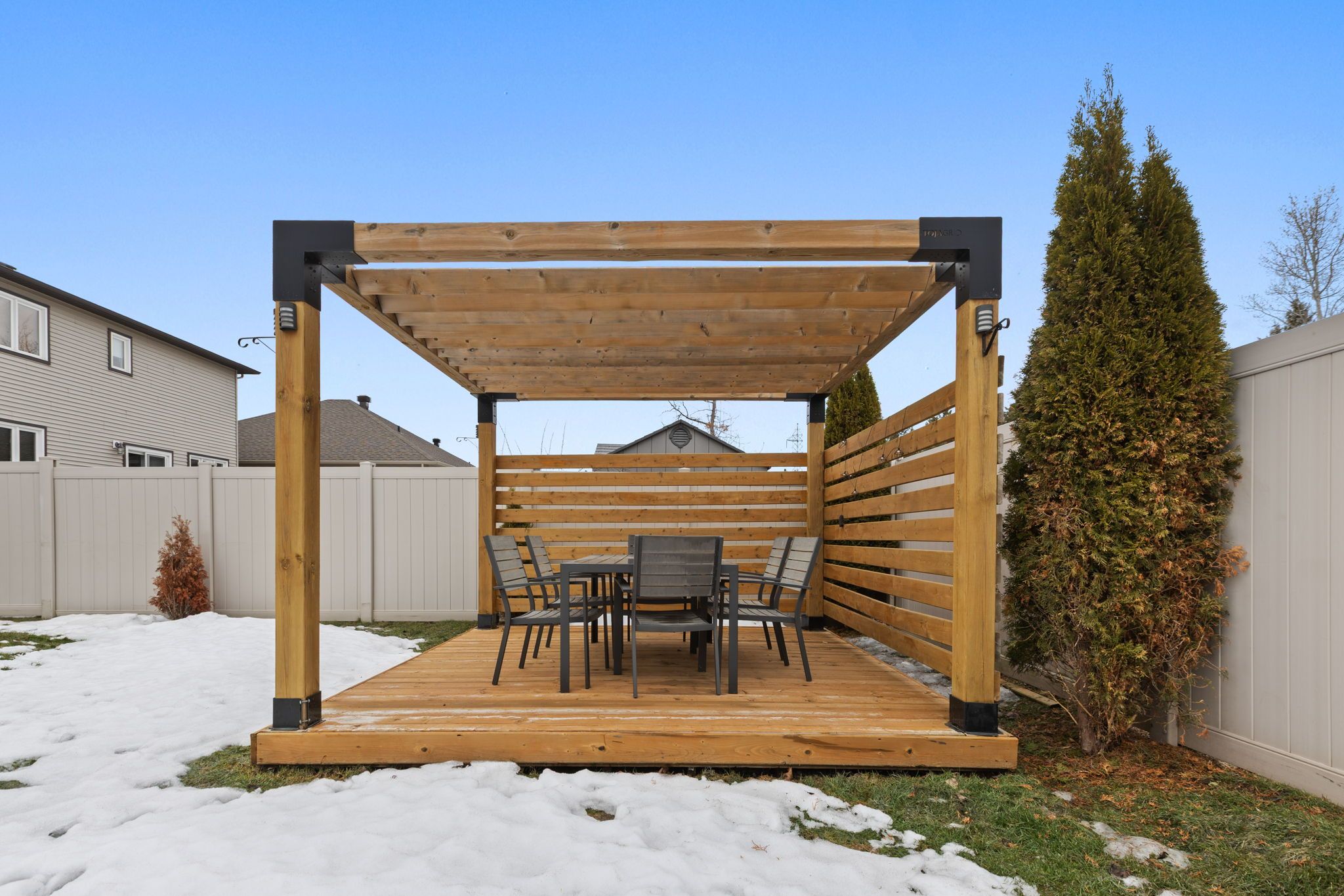 • Fenced backyard with a deck, gazebo, and no rear neighbors.