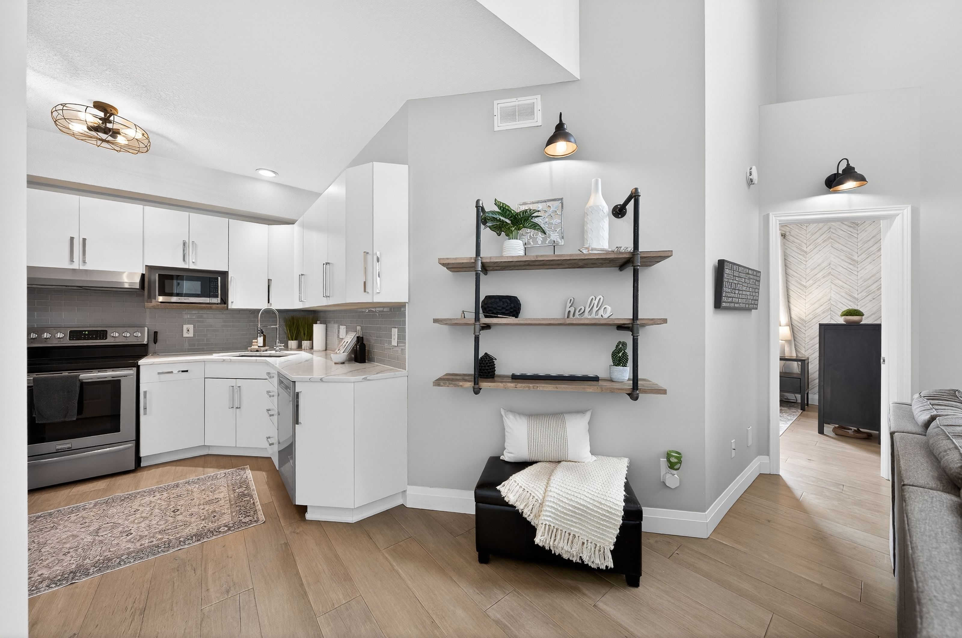 • High ceilings in the living area create an open and airy vibe.