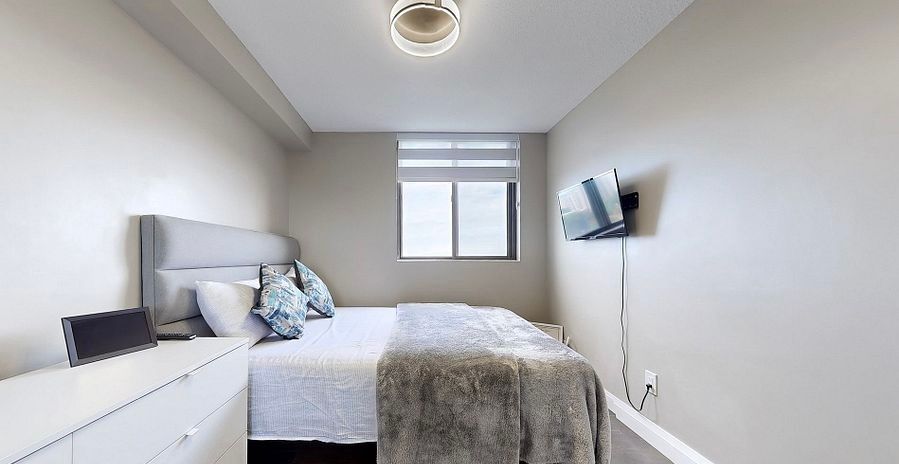 This penthouse is completely updated offering a two-bedroom, two-bathroom condo, modern comfort and style. Situated in a well-kept, family-friendly complex. This unit has an open concept layout . The kitchen showcases stainless steel appliances, quartz surfaces, and a double sink. The sun-filled large sized living area opens to a private balcony with desirable south-facing lake views. All utilities are included except for internet in the rent. Primary bedroom features a custom closet and 2-piece ensuite. Second bedroom includes built-in storage with ample hallway closets and in-suite laundry. Building offers games room, gym, outdoor pool, party/meeting room, tennis court, ample visitor parking. 1 parking space and locker included.