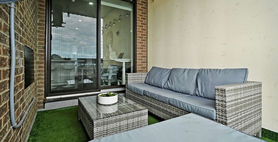 • Bright living area with a private balcony and lake views.