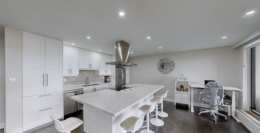 • Completely updated two-bedroom, two-bathroom penthouse condo.