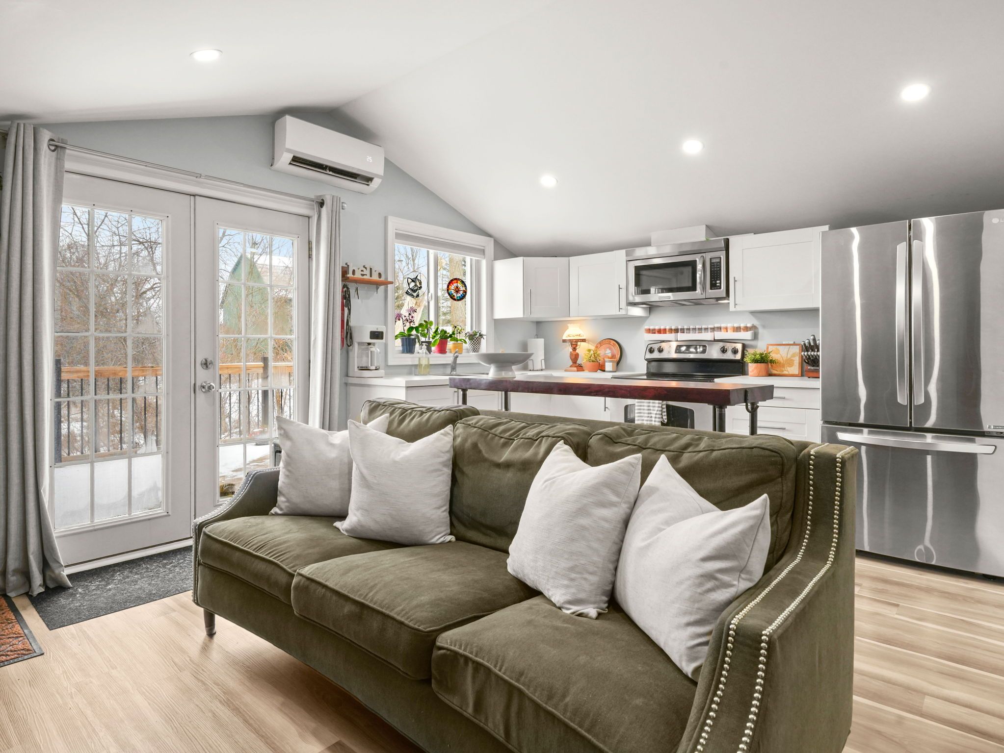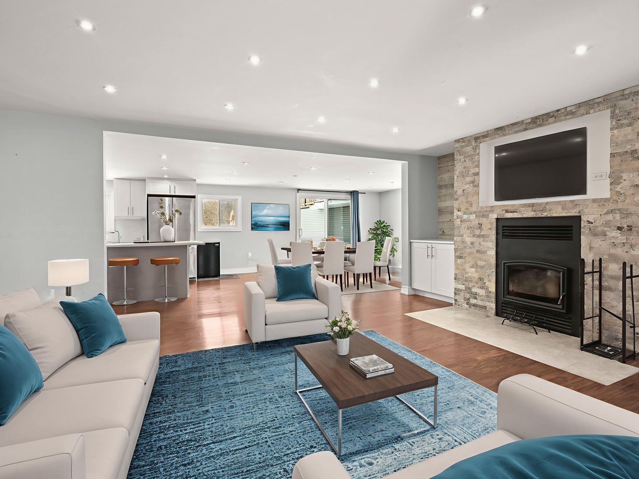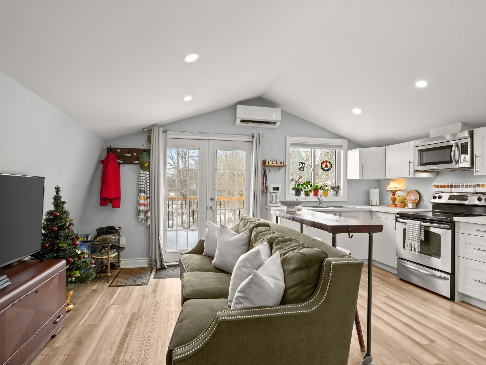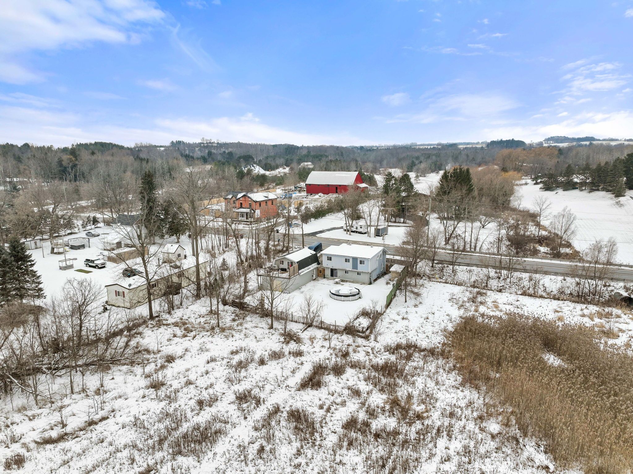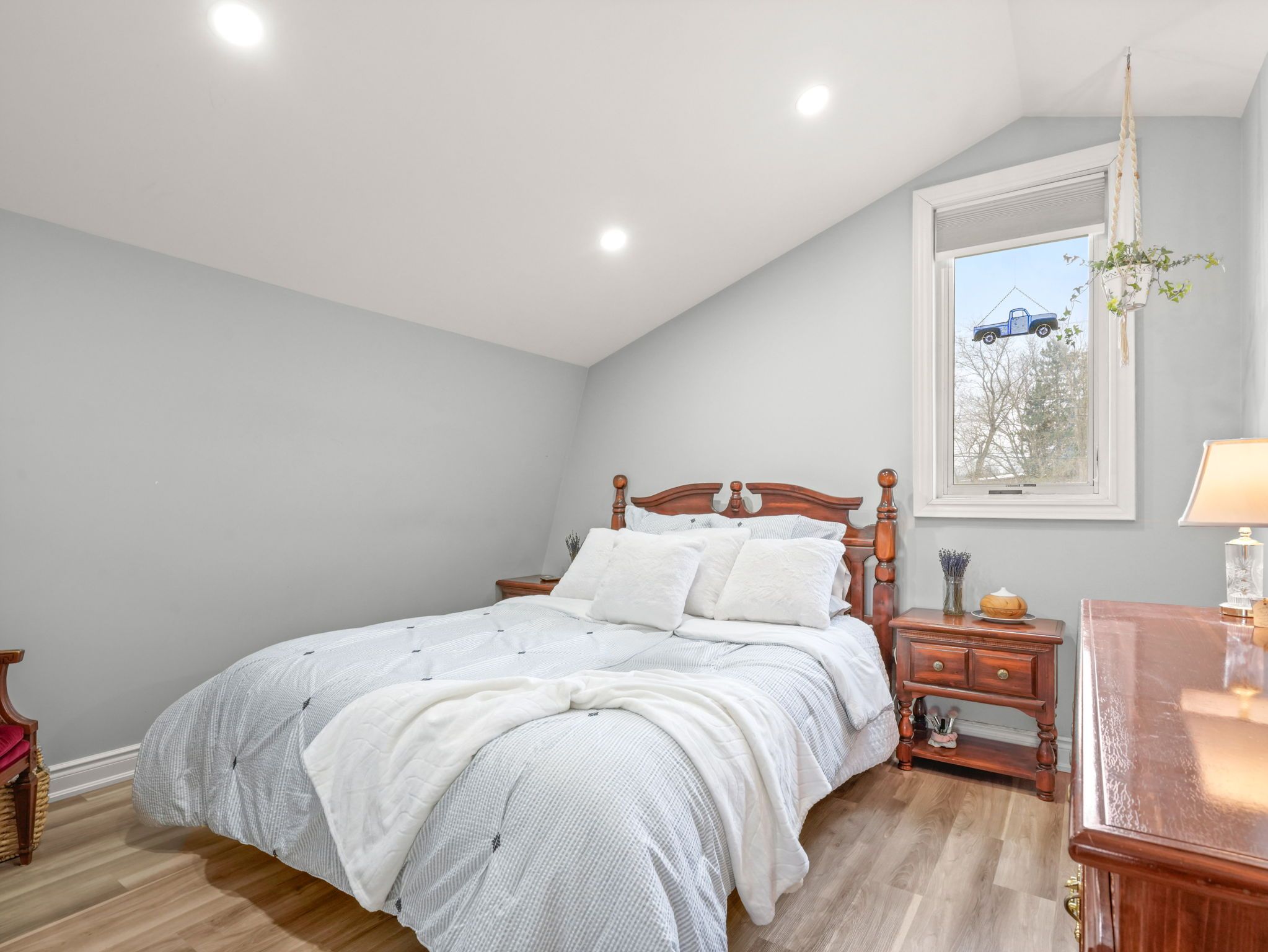 Discover the perfect blend of country charm and commuter convenience with this beautifully updated home, ideally situated on hwy 50 for easy access to the gta and just minutes from both hwy 9 and 89. Step inside to an inviting open-concept main floor featuring a stunning kitchen with a large quartz island-perfect for hosting family and friends. The living room is anchored by a cozy wood-burning fireplace with custom built-ins, creating a warm and welcoming space. Main floor laundry and durable laminate flooring throughout the main and upper levels add everyday convenience and style. Upstairs, you'll find a bright and versatile flex space ideal for a home office, playroom, or can be easily converted into a fourth bedroom. All three bedrooms are generously sized, including a spacious primary suite complete with two large closets and a luxurious 5-piece ensuite. Outside, enjoy your private fenced backyard overlooking peaceful farm fields-complete with an above-ground pool, fire pit, and concrete patio for outdoor living all season long. A standout feature of this property is the detached 2-car garage with a beautifully finished in-law suite above. This self-contained space offers its own balcony, kitchen, laundry, separate bedroom, full bath, and independent heating/ac-ideal for multi-generational living, guests, or rental potential. This home truly has it all-comfort, functionality, and room for everyone. Don't miss the chance to make it yours.