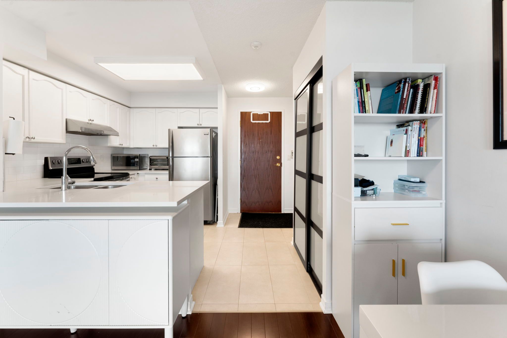 Move-in ready & fully furnished - embrace the lifestyle! Welcome to parkway place iii, where style, comfort, and convenience come together. This beautifully updated 1-bedroom condo is ideal for first-time buyers, young professionals, or downsizers seeking a vibrant, low maintenance lifestyle in one of mississauga's most desirable communities. Located in the heart of the city, this home puts everything at your fingertips. Erin mills town centre, grocery stores, restaurants, parks, scenic trails, and the library are all just minutes away. Situated within the highly rated john fraser secondary school district, and a true commuter's dream with under 5-minute access to hwy 403, quick connections to streetsville go, and transit steps from the building. Inside, enjoy a bright, sun-filled layout with freshly painted walls and stylish upgrades throughout. The modern kitchen features quartz countertops, subway tile backsplash, stainless steel appliances, and breakfast bar seating. Hardwood floors, upgraded lighting, and california shutters add a polished finish. Relax in the spa-inspired bathroom with glass shower, then step onto your private balcony to take in unobstructed skyline view of the cn tower perfect for sunrise coffees, sunset unwinding, or fireworks nights. Includes 1 underground parking space and locker. Enjoy resort-style amenities: indoor pool, sauna, tennis courts, gazebo, fitness rooms, billiards and card room, party room, and 24-hour security. Bonus value: this home is fully furnished with stylish, functional pieces including a leather power-reclining sofa, extendable dining table & chairs, storage units, coffee bar, queen bed with king koil mattress, desk, shoe cabinet, and stainless steel appliances, plus washer/dryer (2023). A rare opportunity to own a turnkey condo offering exceptional value, location, and lifestyle-don't miss it!
