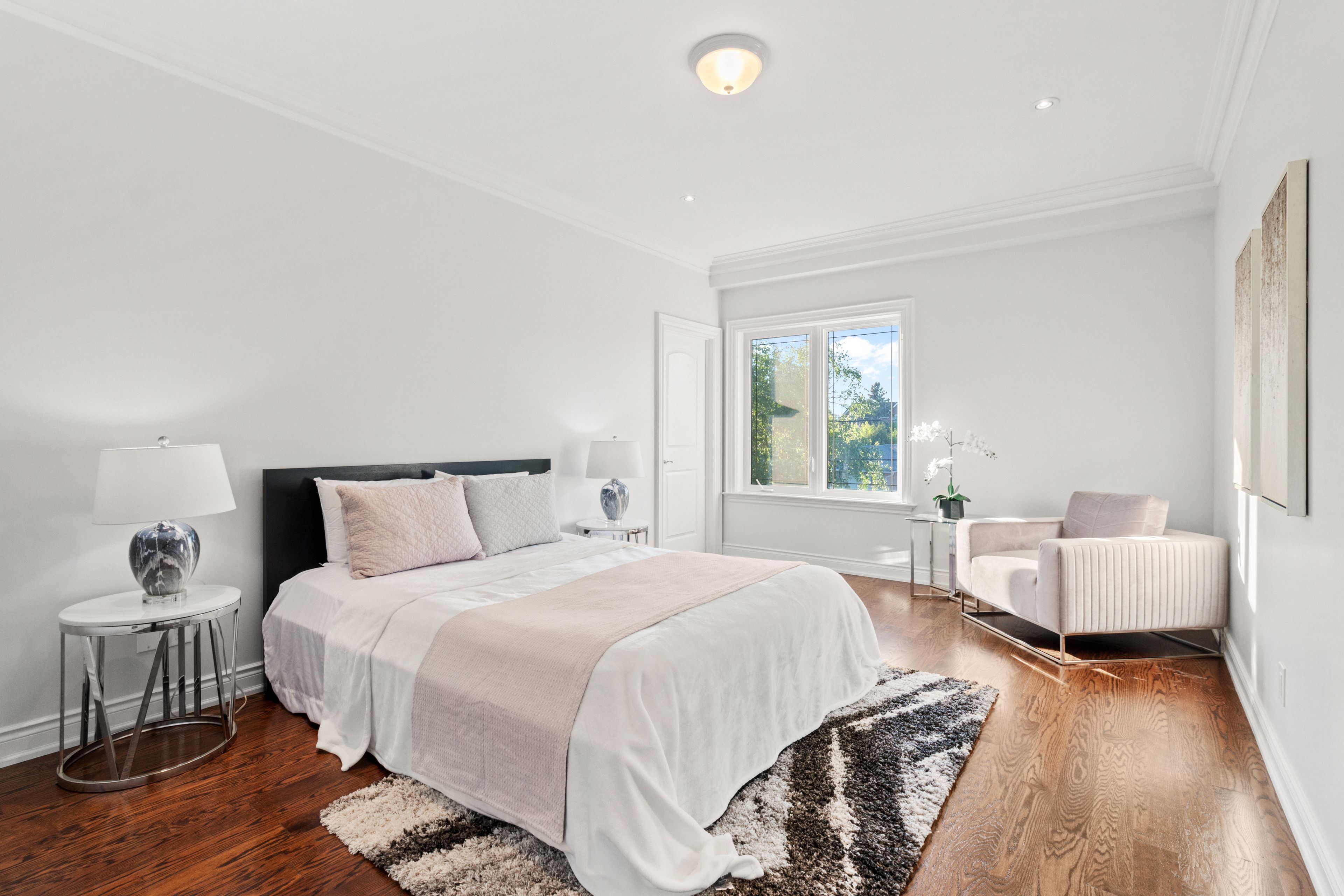 Magnificent 2-storey custom built home on a premium 50' x 133' south-facing lot (6,650 sq. Ft)! Offering over 5,000 sq. Ft. Of luxurious living space (3,501 sq. Ft. Above grade + professionally finished walk-out basement) in high demanded newtonbrook west area! This upgraded and spacious residence features 4+2 bedrooms and 6 bathrooms. The elegant natural stone facade! Soaring ceilings height on main floor(10'), 2nd flr(9') and master bedroom(10')! Hardwood floors, crown moulding, led lighting, freshly painted throughout. Sophistication flows through the main hallway and staircase, and coffered ceilings adorn the dining room, kitchen, master bedroom and foyer. Enjoy the open-concept layout in living and dining areas! Direct garage access to the main floor. The oversized family room with fireplace seamlessly connects to a gourmet kitchen featuring granite countertops and backsplash, stainless steel appliances, updated cabinetry, butler pantry/servery and a generous breakfast area with a walkout to a family-sized deck and brand-new composite deck with aluminium railings. The expansive backyard is ideal for entertaining or unwinding. An oak staircase with iron railings and skylight leads to the upper level, where the breathtaking primary suite includes a walk-in closet and a luxurious 8-pc ensuite complete with jacuzzi tub and bidet. Three additional bedrooms each feature their own ensuite. A spacious second-floor laundry room adds everyday convenience. The finished walk-out basement offers incredible versatility with a large entertainment/recreation area, second open-concept kitchen, one bedroom with a 4-pc ensuite, a second bedroom (or great room), second laundry, and potential to convert into a 2-bedroom unit. Wide and extended interlocked driveway with no sidewalk in front providing ample parking! A must-see home that truly has it all!