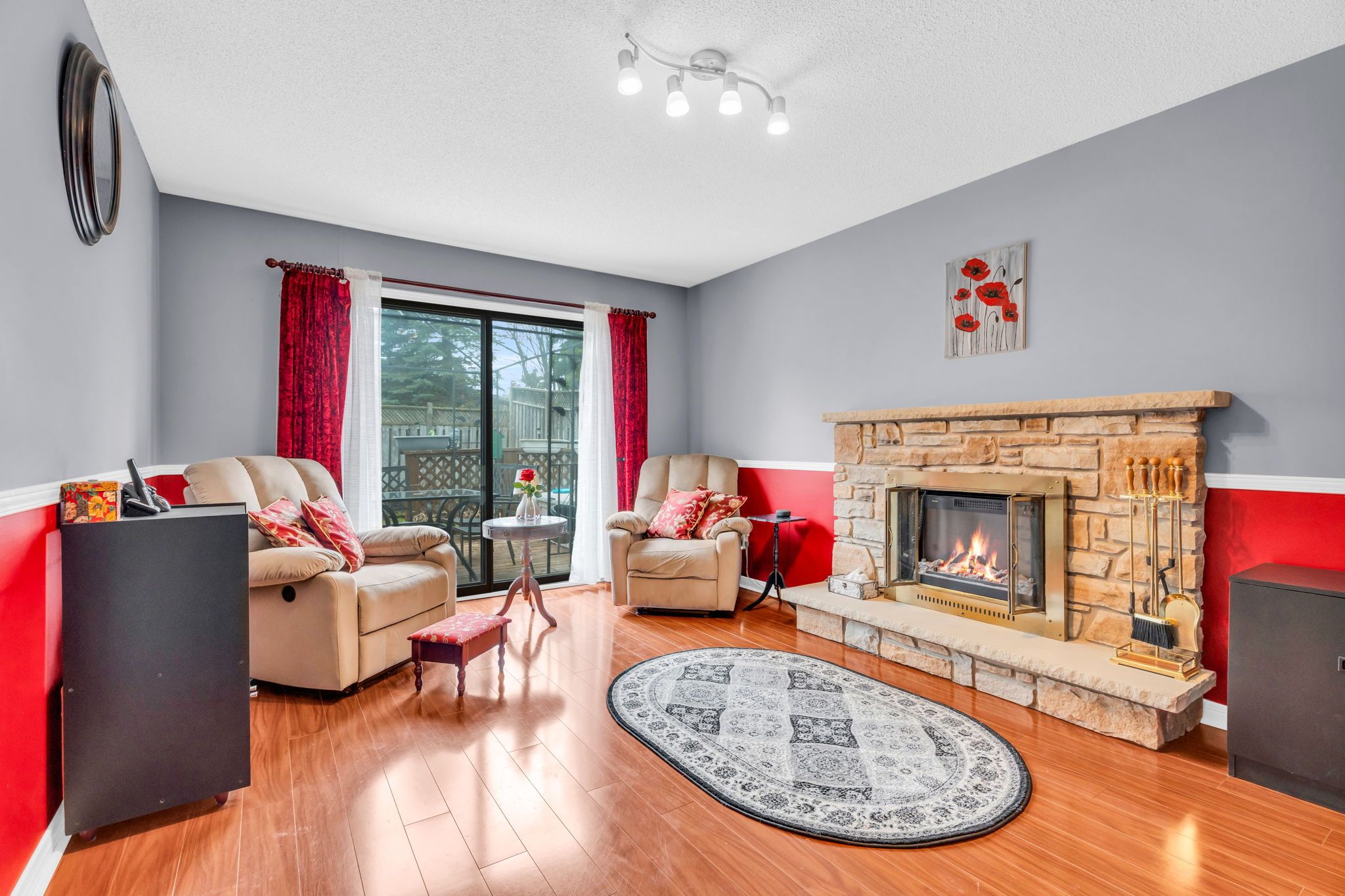 • Inviting family room with electric fireplace for relaxation.