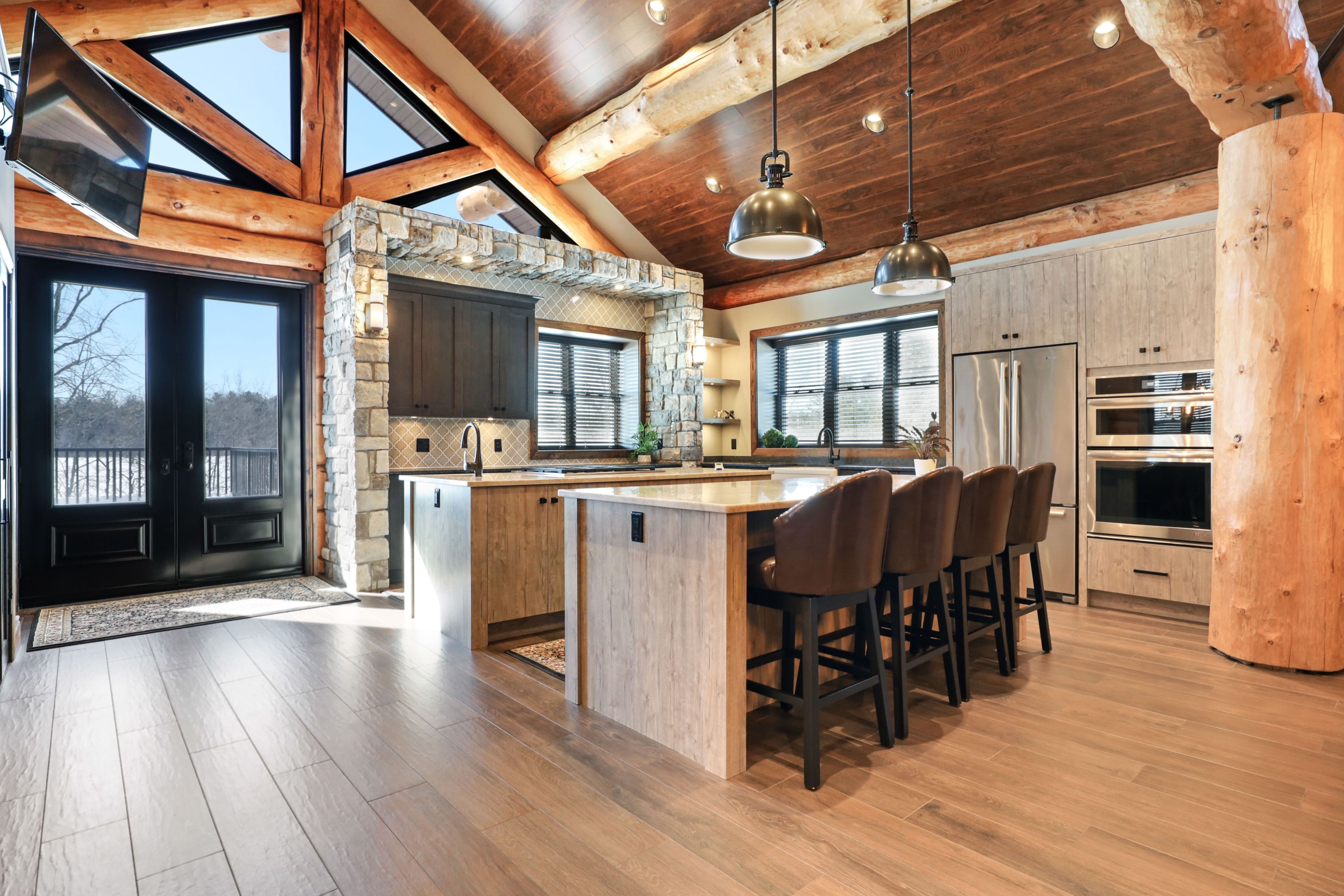 Whistler comes to the ottawa valley! Truly one of a kind custom log home with materials sourced from the west of canada. Massive logs, posts and beams speak to the rarity in this area. Unique custom wood and wrought iron front door gives a hint as to what is inside. Warm entry foyer can be closed off with custom barn doors featuring wrought iron design insert. Spacious open concept living space with high vaulted ceilings throughout main level. Chic interior is modern yet not cold. Inviting living room with gas fireplace surrounded by stone facade is steps away from the dining room which overlooks the backyard. Kitchen cabinetry is very high end and well laid out. Two islands for easy entertaining. Built in appliances. Feature stone accent nook tucks the sink away. Pantry. Unique wood interior doors sourced from the us. Primary bedroom located privately on the main level has transom windows in the peak for additional natural light. Beautiful finishings in the ensuite. Lower level offers two additional bedrooms, one with built in bunk beds - how fun would that sleepover be? Full bath & laundry on this level. Home theatre room is central to the lower level - components included. Large home gym with glass walls to capitalize on the light. Inground salt water heated pool is set in the private backyard of this 2 acre property. Rooftop deck over garage offers a hot tub. 1km away from the ottawa river, private community beach and boat launch. Efficient outdoor wood furnace fuels a hot water system to heat both forced air and radiant systems, including the garage floor. No expense was spared on this magnificent structure. 24 hour irrevocable on all offers as per form 244
