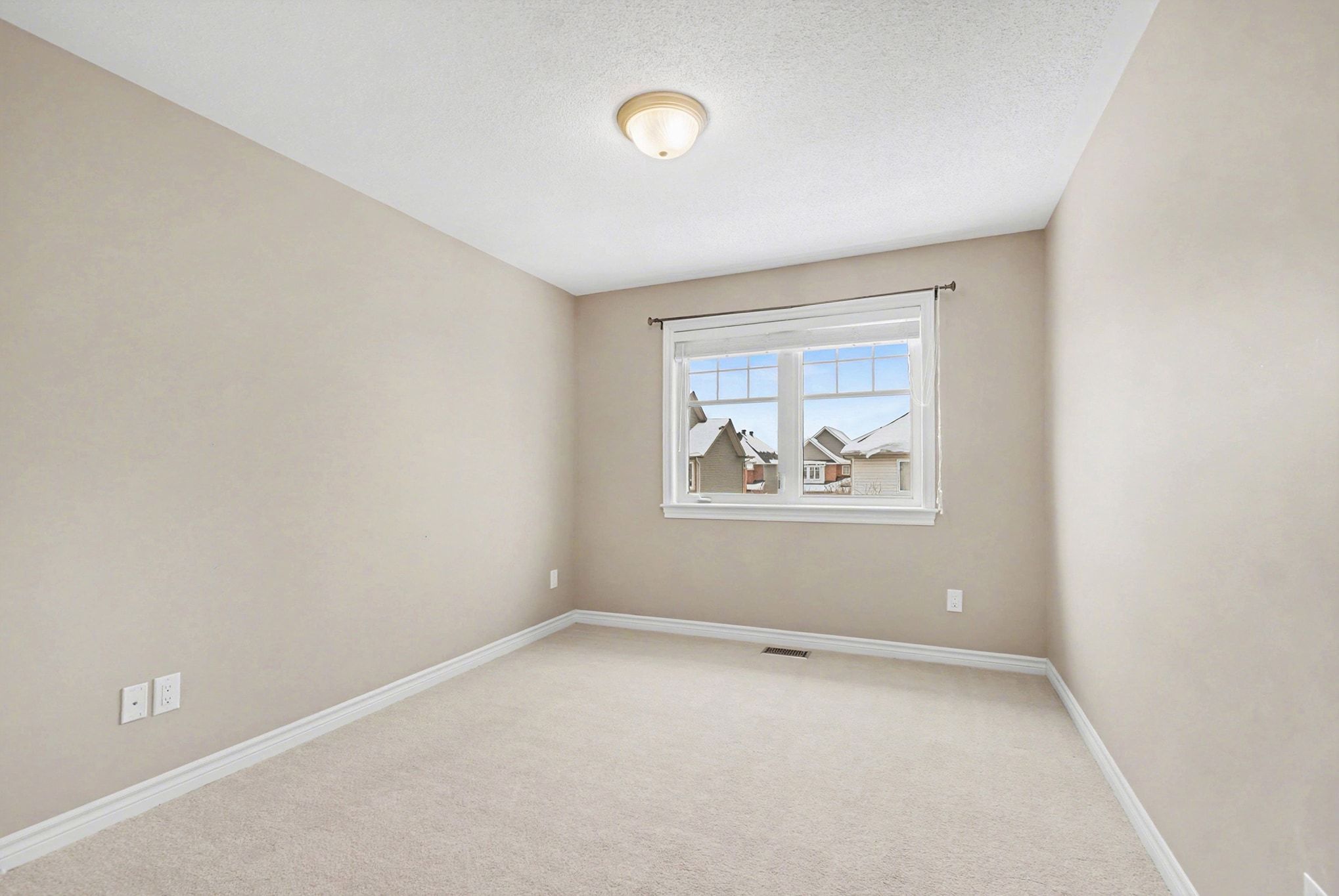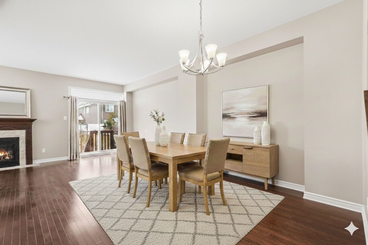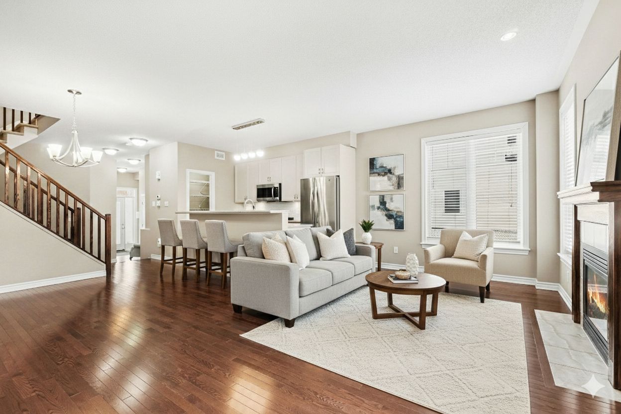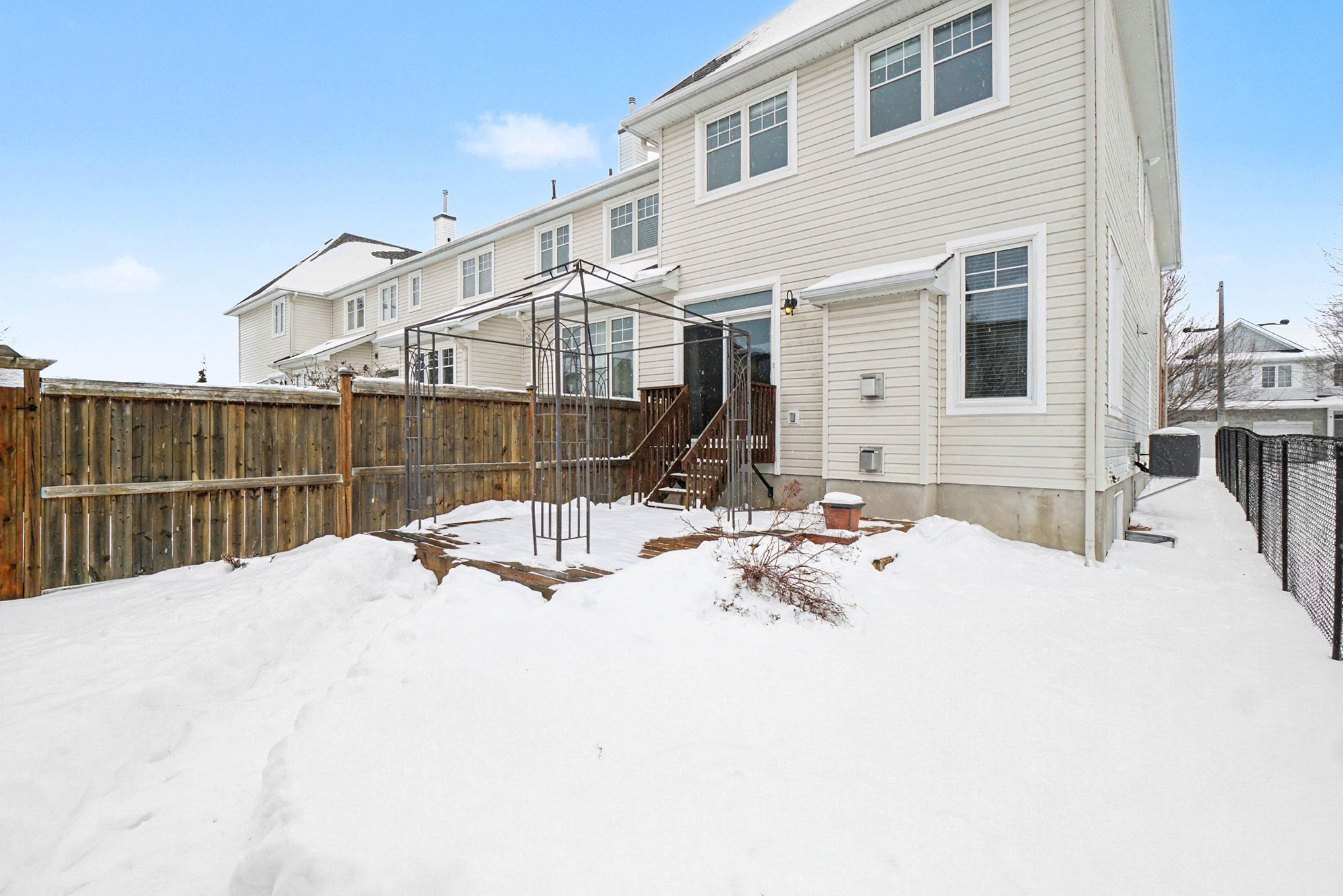 Welcome to this beautifully designed tamarack huntington model end unit townhome offering 2,121 sq ft of thoughtfully planned living space, including 411 sq ft in the finished lower level. Built as an energy star certified home, this property combines efficiency, comfort, and quality construction. The bright open concept main floor features 9 foot ceilings, oak hardwood flooring, and large windows that allow natural light to flow throughout the living and dining areas. The welcoming entrance is finished with ceramic tile, while the kitchen is both stylish and functional, showcasing muskoka custom crafted cabinetry, ceramic finishes, a walk in pantry, and seamless flow into the main living space. A cozy gas fireplace anchors the room, making it ideal for everyday living and entertaining. The second level offers an oversized primary bedroom complete with a private ensuite, along with two additional generously sized bedrooms and a versatile loft or den that works perfectly as a home office, homework area, or quiet sitting space. Convenient second floor laundry adds to the thoughtful layout. The finished lower level provides additional living space with a spacious recreation room, ideal for movie nights, a play area, or a comfortable retreat, complete with a second fireplace. Outside, the fully fenced backyard offers privacy and functionality, featuring a deck ideal for outdoor dining or relaxing, along with a backyard shed for added storage. Located in the desirable jackson trails community of stittsville north, this home is within walking distance to schools, parks, public transit, shopping, and restaurants, offering an excellent balance of convenience and community. A fantastic opportunity to own a well appointed townhome in a sought after neighbourhood. 24 hours irrevocable on all offers. Some photos are digitally enhanced.