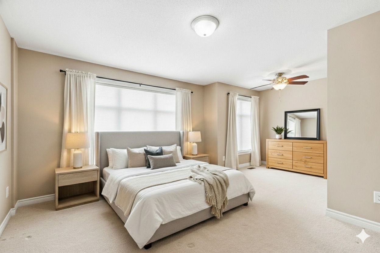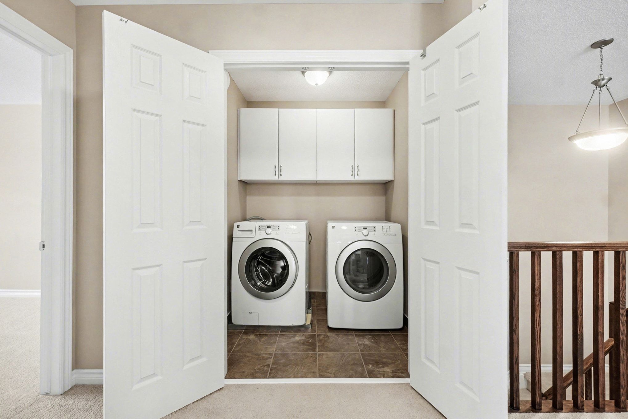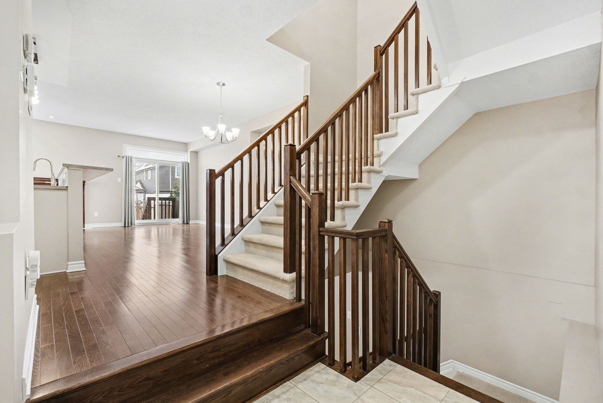 Welcome to this beautifully designed tamarack huntington model end unit townhome offering 2,121 sq ft of thoughtfully planned living space, including 411 sq ft in the finished lower level. Built as an energy star certified home, this property combines efficiency, comfort, and quality construction. The bright open concept main floor features 9 foot ceilings, oak hardwood flooring, and large windows that allow natural light to flow throughout the living and dining areas. The welcoming entrance is finished with ceramic tile, while the kitchen is both stylish and functional, showcasing muskoka custom crafted cabinetry, ceramic finishes, a walk in pantry, and seamless flow into the main living space. A cozy gas fireplace anchors the room, making it ideal for everyday living and entertaining. The second level offers an oversized primary bedroom complete with a private ensuite, along with two additional generously sized bedrooms and a versatile loft or den that works perfectly as a home office, homework area, or quiet sitting space. Convenient second floor laundry adds to the thoughtful layout. The finished lower level provides additional living space with a spacious recreation room, ideal for movie nights, a play area, or a comfortable retreat, complete with a second fireplace. Outside, the fully fenced backyard offers privacy and functionality, featuring a deck ideal for outdoor dining or relaxing, along with a backyard shed for added storage. Located in the desirable jackson trails community of stittsville north, this home is within walking distance to schools, parks, public transit, shopping, and restaurants, offering an excellent balance of convenience and community. A fantastic opportunity to own a well appointed townhome in a sought after neighbourhood. 24 hours irrevocable on all offers. Some photos are digitally enhanced.