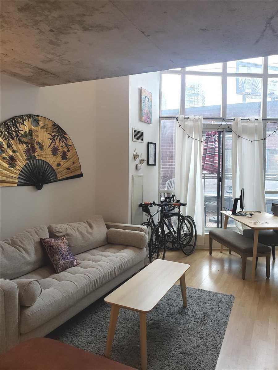 Welcome to this bright and spacious 2 story loft with floor to ceiling windows and a large terrace. Great sized bedroom on the second floor with double closets, storage space and a 4 piece bathroom. Main floor includes a functional kitchen with all of the necessities and opens up to the living room and dining room, which has sunlight all day long. Lots of storage throughout including a front hall closet. The large terrace is the perfect place to relax, enjoy a glass of wine or to read a book. Ensuite laundry and 1 underground parking is included in the monthly rent. The building has visitor parking, 24 hour concierge and a gym. All utilities included in the rent(heat, hydro & water) which is an added bonus, internet and tv extra.