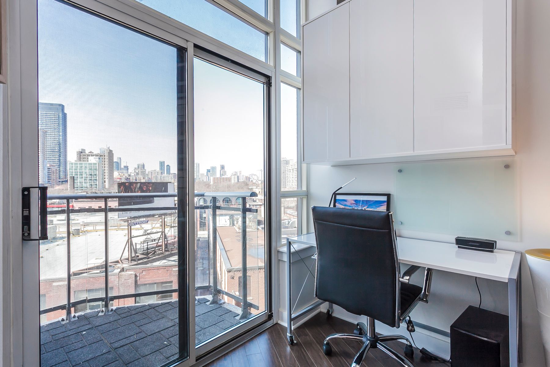 • Bright 1-bedroom suite with 16-ft floor-to-ceiling windows and city views.