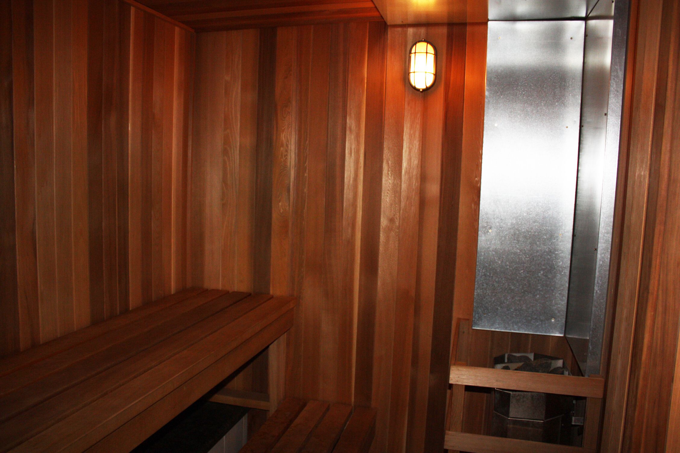• Building amenities include gym, sauna, concierge, and guest suites.