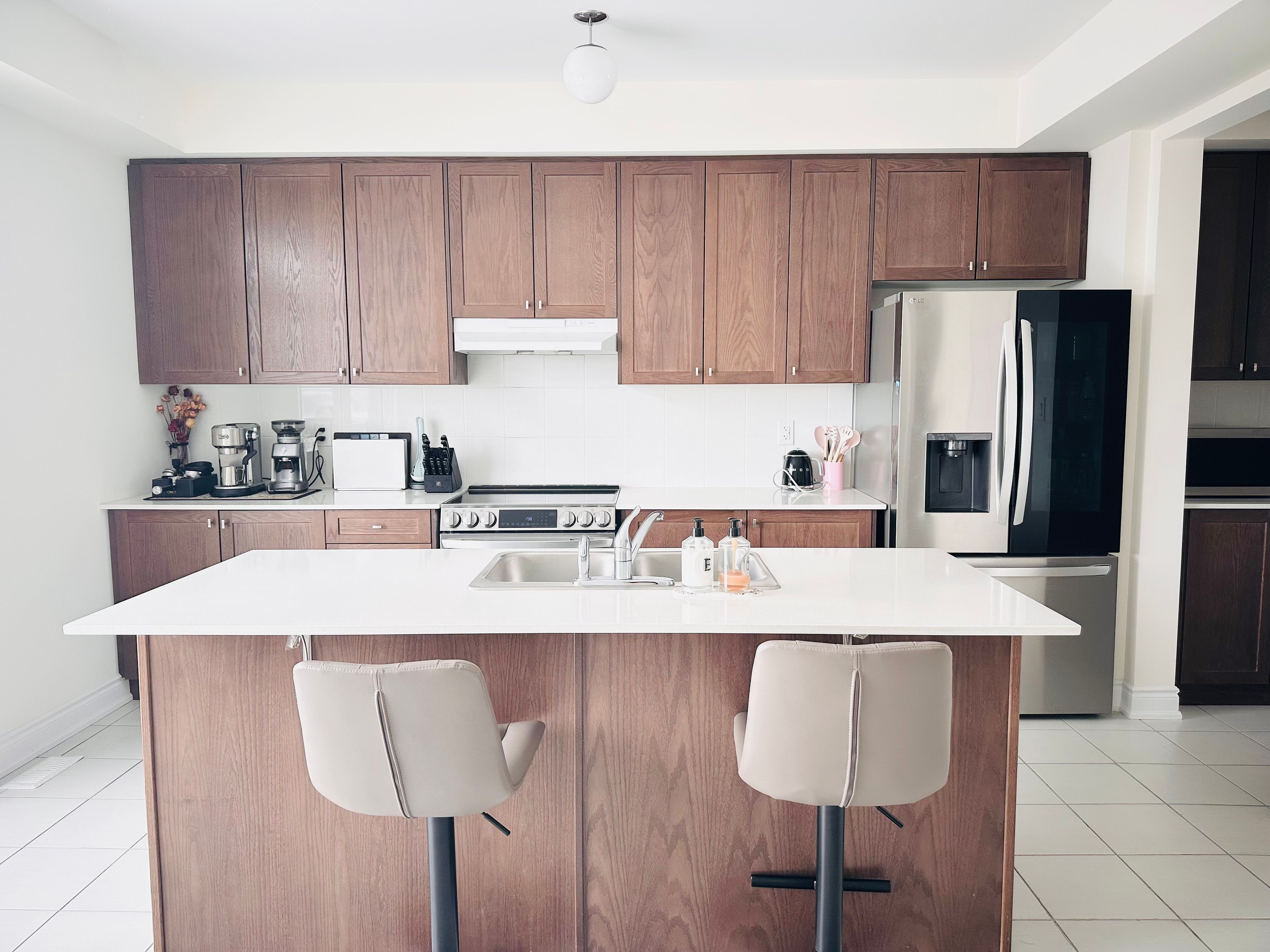 Welcome to this beautifully well maintained luxury th residence in the heart of vaughan. Located in a safe and desirable community, close to top-rated schools, parks, and community amenities, very short walk to shopping, like home depot, walmart, restaurants, and daily conveniences, easy access to major highways and transit routes. It features 4 spacious and bright bedrooms, open-concept living and dining areas with excellent natural light south view, large modern kitchen with high quality appliances, ample cabinetry, and extra cabinet space. Double sink designed bathroom in primary bedroom, along with large walk in closet. 9 foot ceiling throughout, electrical fireplace, 1. 5 car garage designed with extra parking driveway, large windows each floor, private backyard space for outdoor enjoyment. This home offers a perfect blend of elegance, comfort and convenience, ideal for upscale living environment.