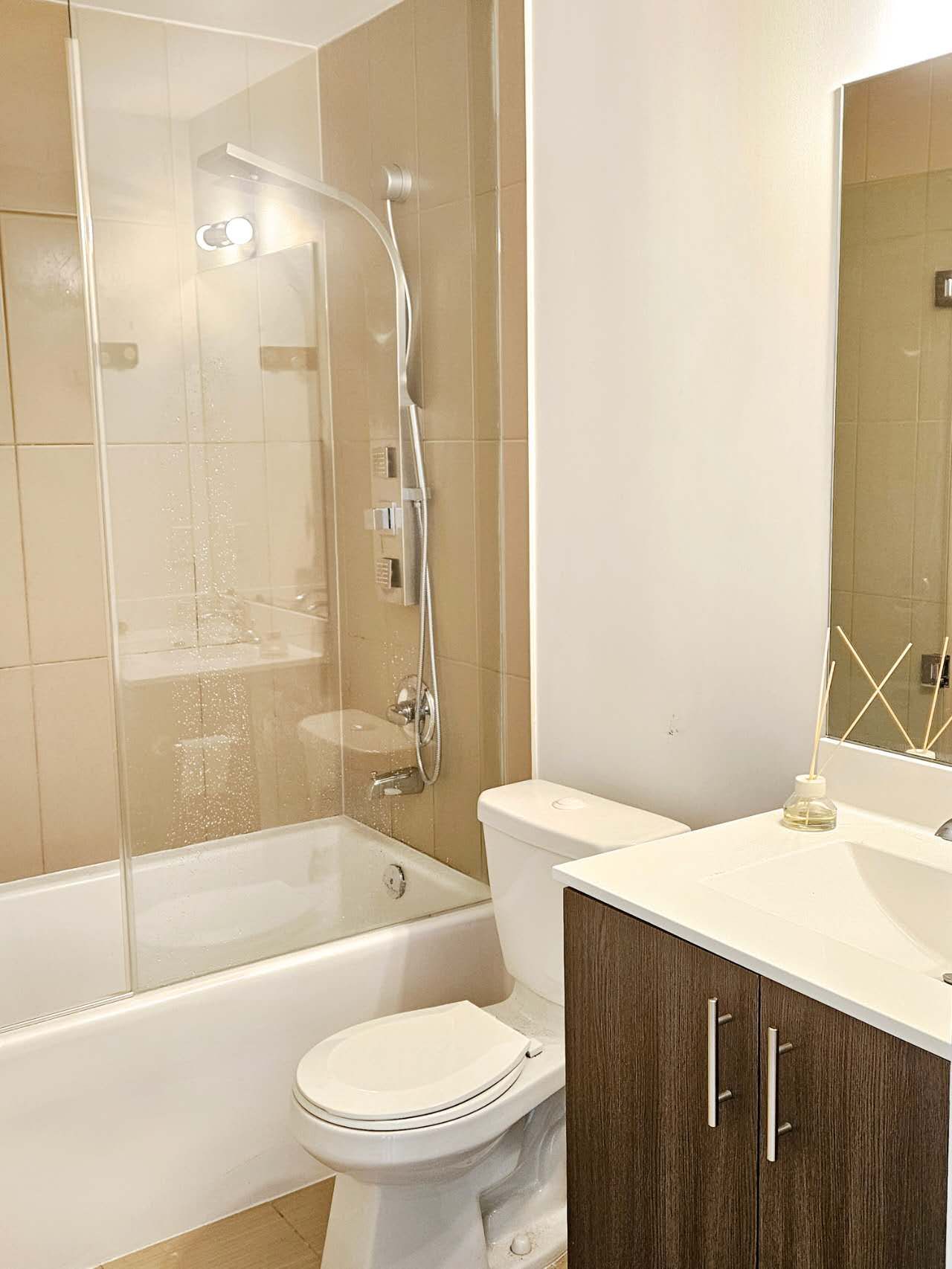 Luxury tridel condo. Largest bright,spacious & functional split 2bds with den and 2 full baths unit. Laminate floors throughout. Open concept kitchen with granite counters and s/s appliances. Unobstructed amazing west view. First class amenities, including gym, party rooms and yoga studio. Great location! Easy drive to 401/404/agincourt go. Free internet!