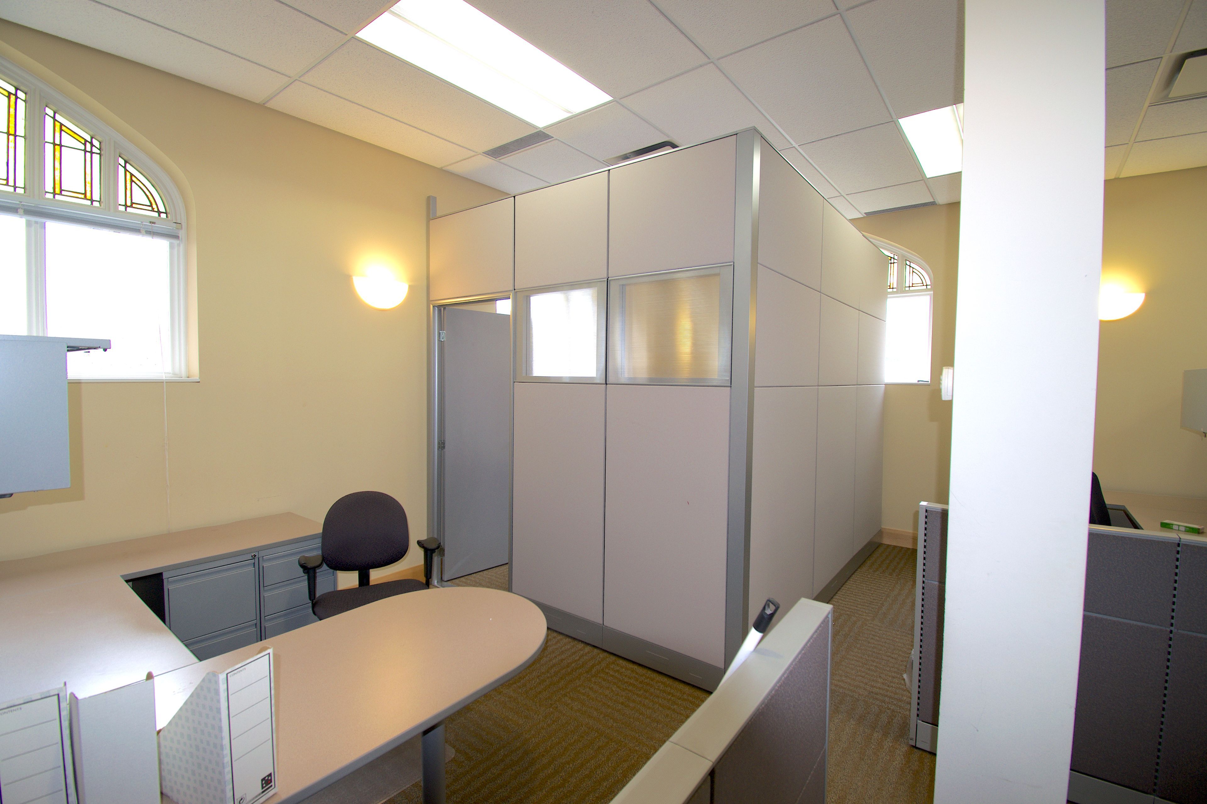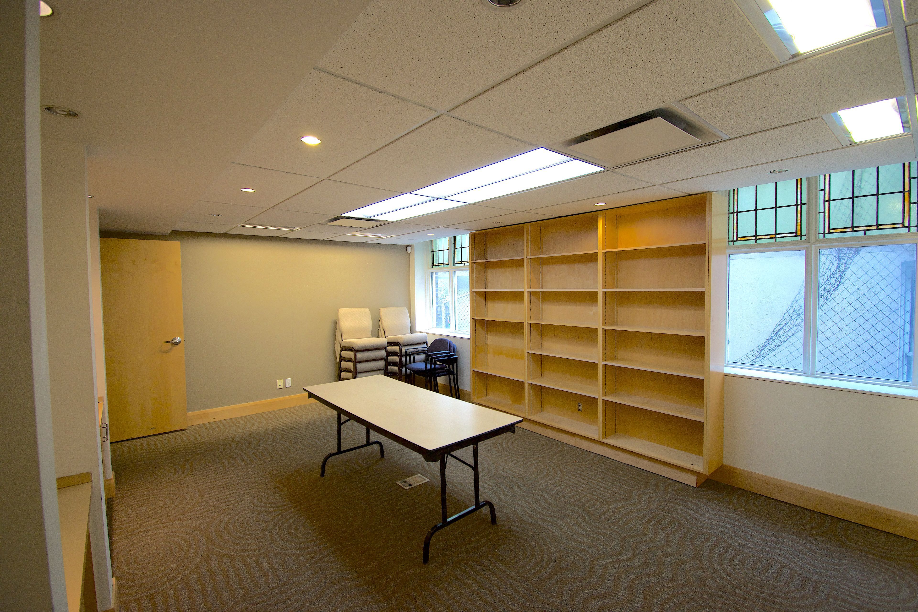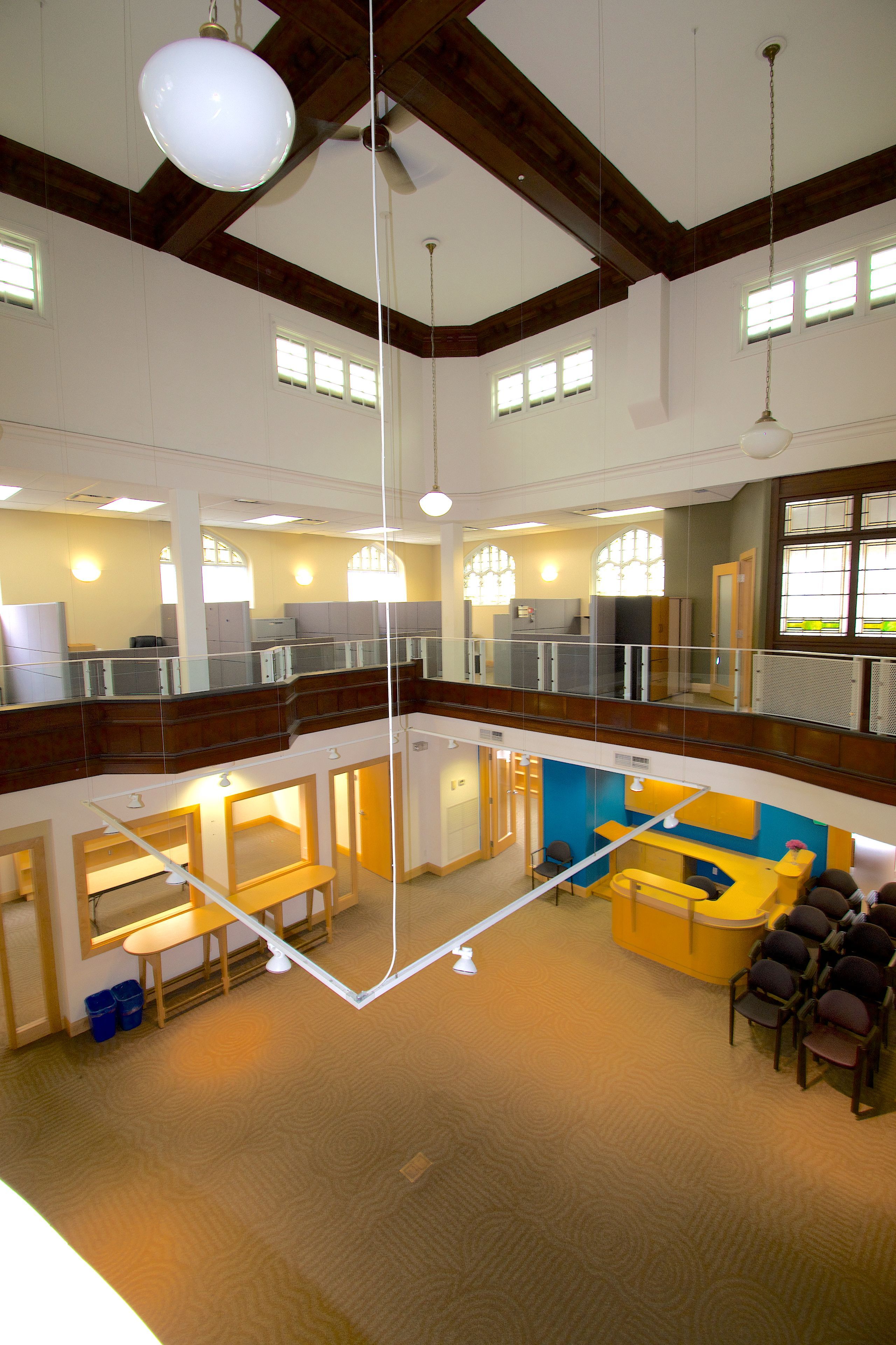 • Stunning stained glass windows adding vibrant natural light.