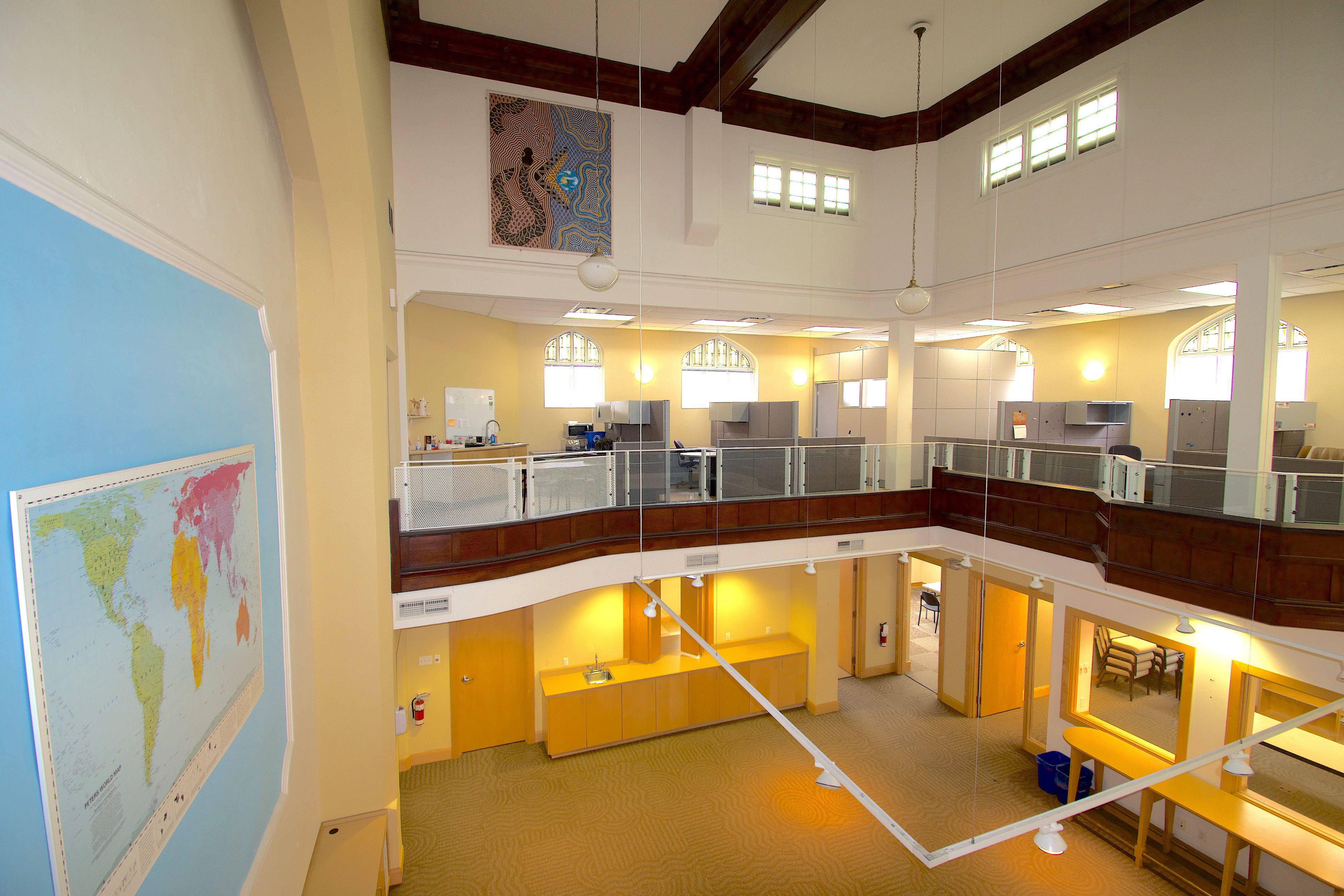 • Mezzanine level provides a unique vantage point and additional workspace.