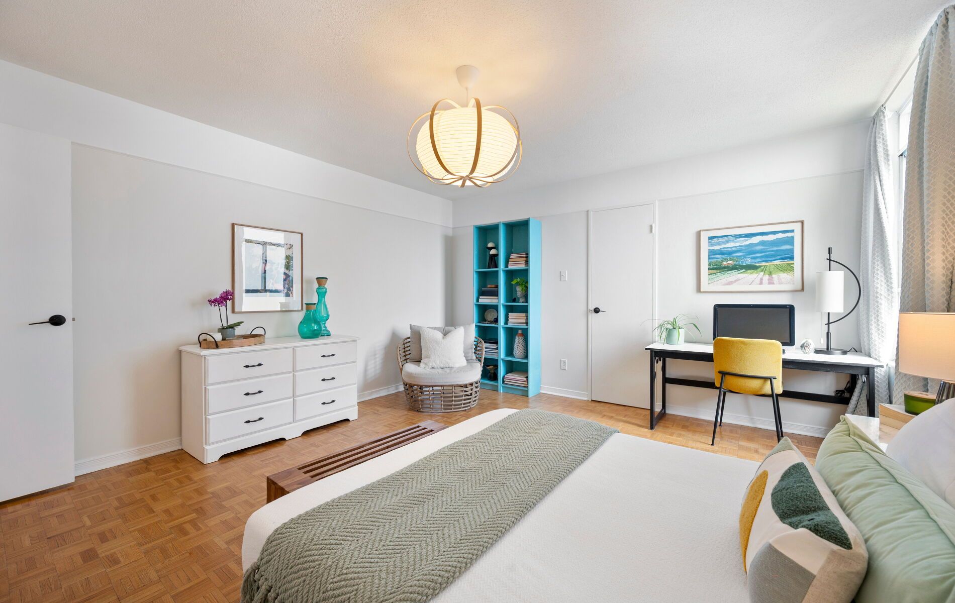 • Generously-sized bedroom easily fits a king bed and includes a walk-in closet.