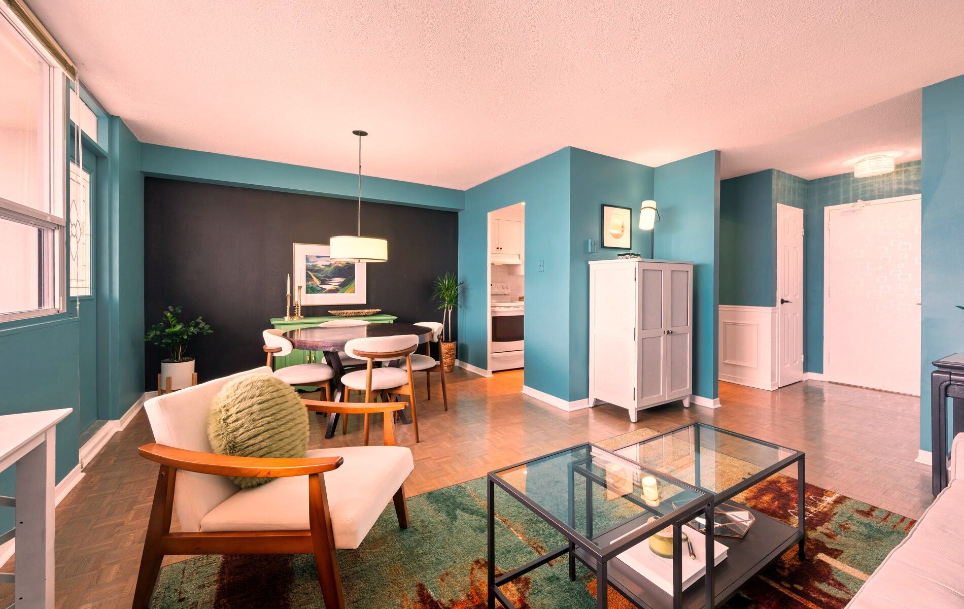 • Well-maintained hardwood floors and freshly painted walls throughout the suite.