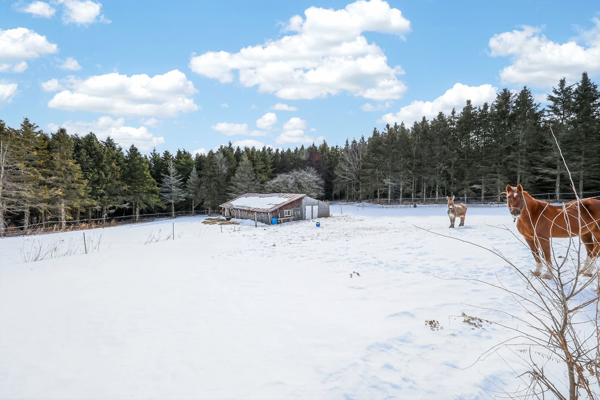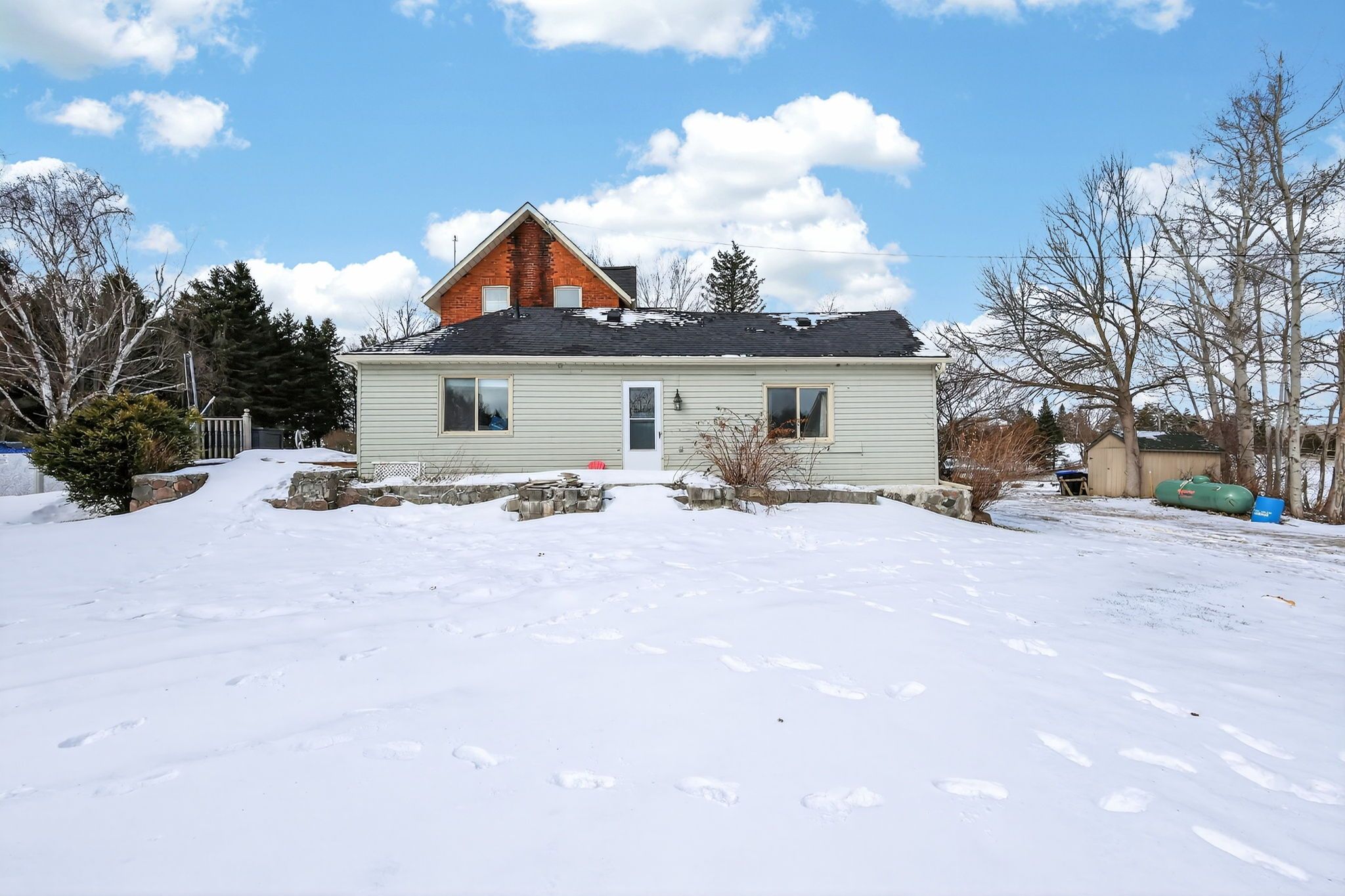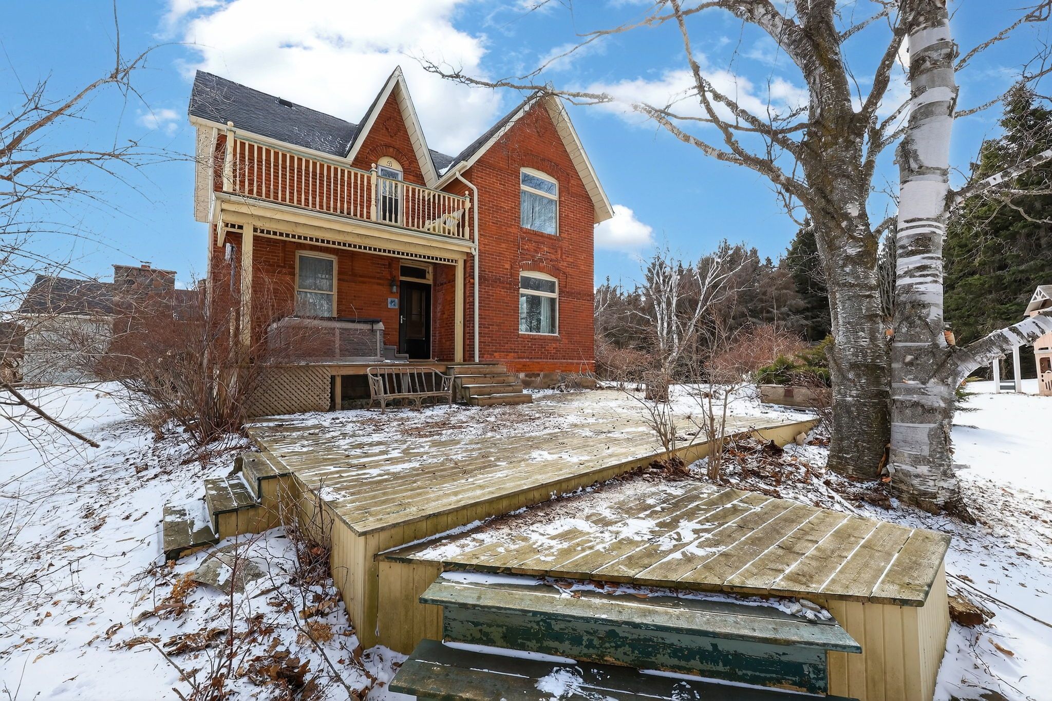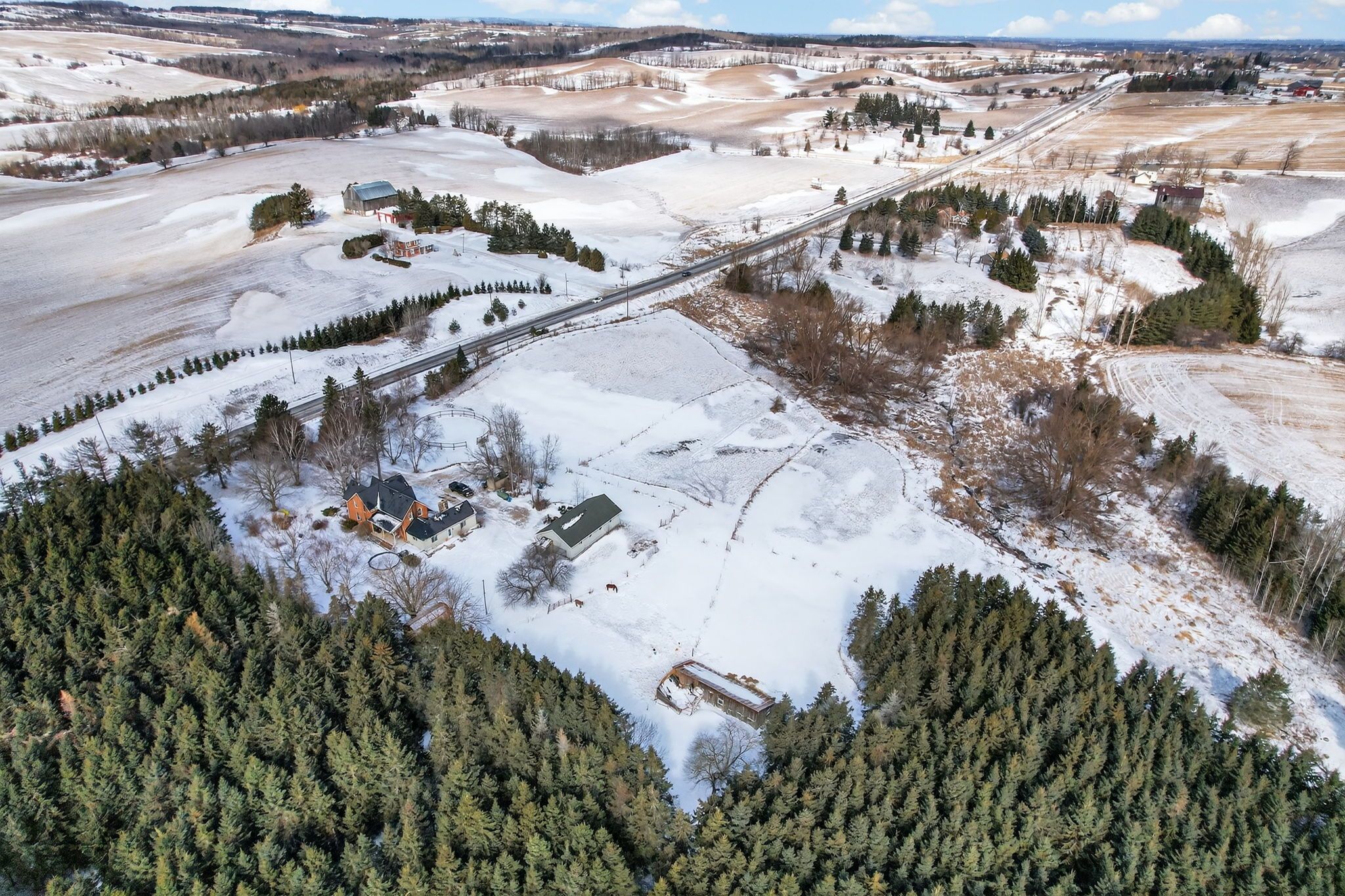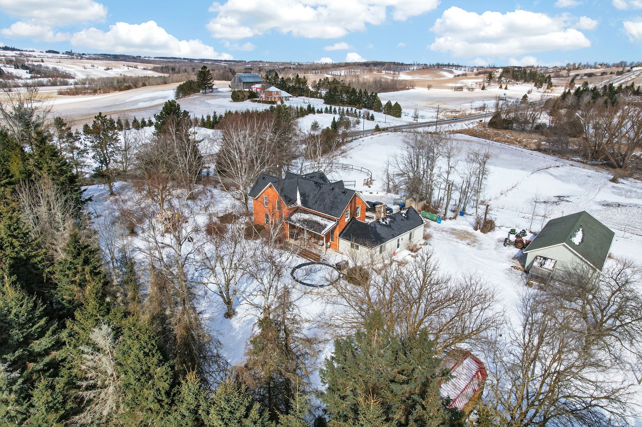 3,000 square foot, 2 storey red brick farmhouse with a 25x50 garage on 16 acres. Set back off the road for privacy, the updated 4 bedroom, 2 bath home has great original features and 9' ceilings. The main level rooms are spacious and feature a formal dining room, living room, bathroom, eat-in kitchen, den and family room. The family room boasts a fieldstone wood-burning fireplace that is the focal point of the room. On the second level you will find 4 bedrooms and the second bathroom. Three covered porches provide countryside views and a place to enjoy the hot tub. The detached garage has hydro and 2 roll up doors. There is a small hobby barn, paddocks, fencing and a chicken coop. Country living in a great location! Drilled well south east of house (pump 2 years old), septic to north of house.
