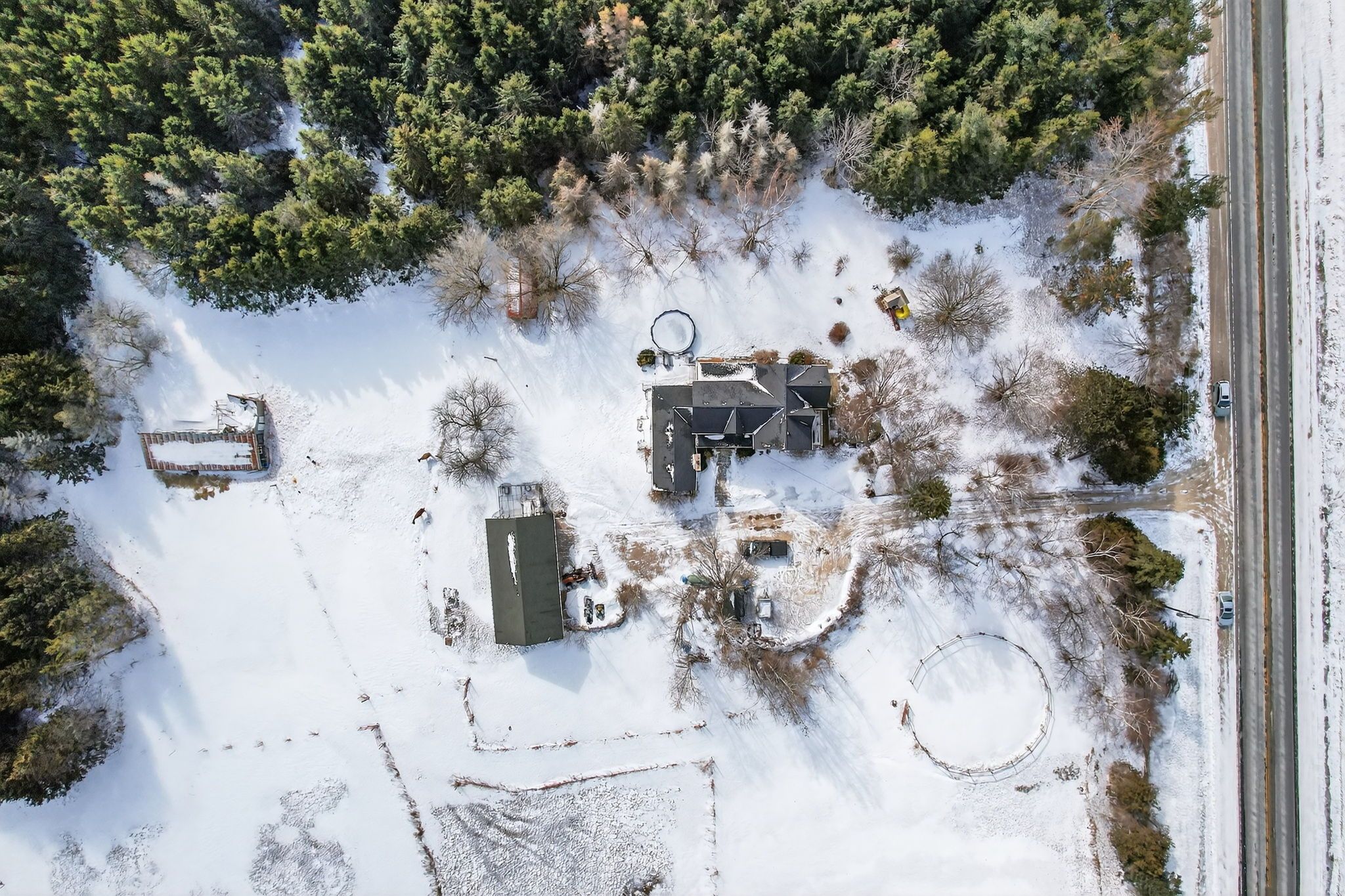• Includes a large garage, hobby barn, paddocks, and chicken coop.